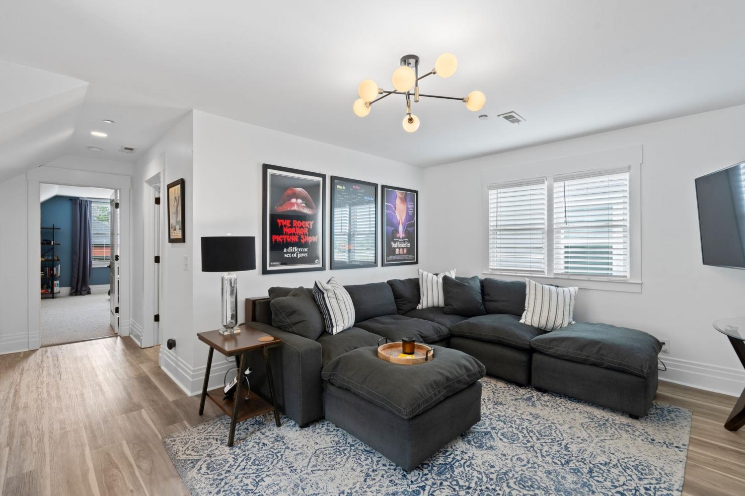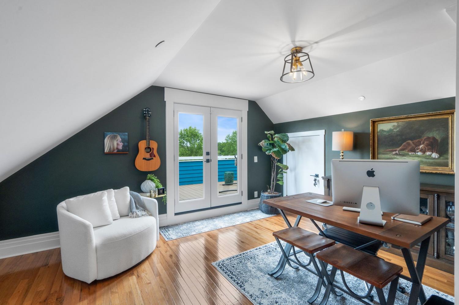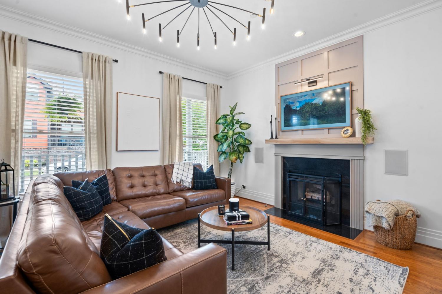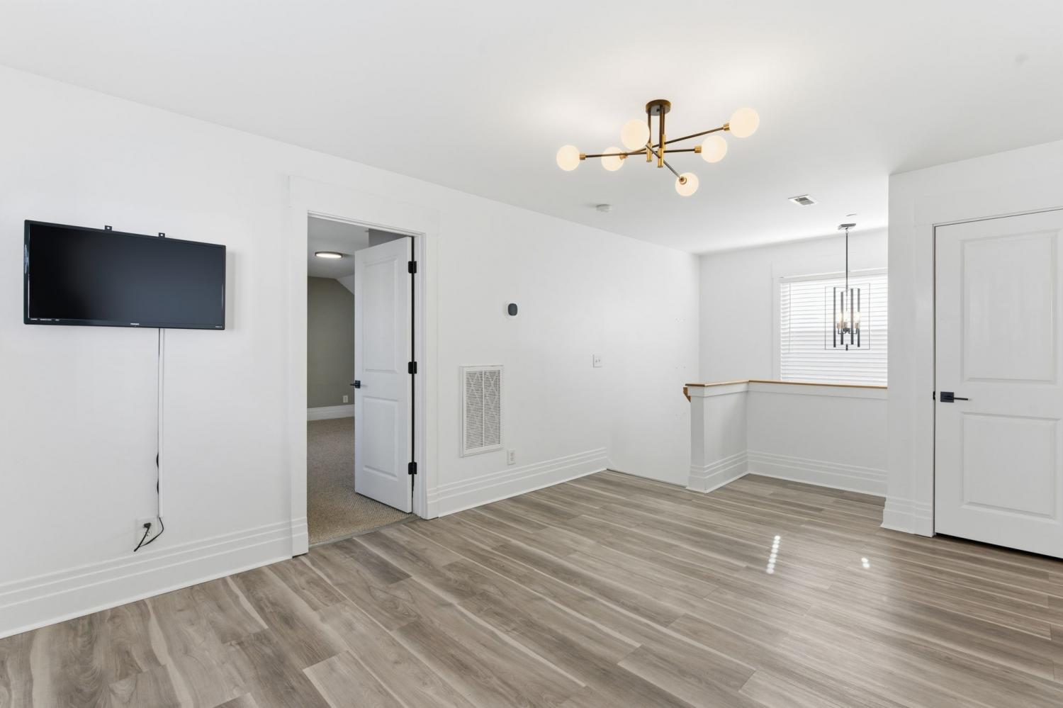 MOVE IN READY! This upgraded 3-bedroom Cape Cod–style home offers a thoughtful blend of style and functionality. Solid hardwood floors span the main level, with durable LVP upstairs. The kitchen features granite countertops, smart appliances, and abundant natural light, complemented by fresh interior paint throughout. Additional highlights include custom built-ins, a gated and covered side walkway leading to the garage/alley, and a balcony overlooking the neighborhood amphitheater. The main-level owner’s suite includes an attached flex space with balcony access—ideal for a nursery, home office, or additional living area. Recent upgrades include high-end light fixtures, in-wall speakers in the living room and balcony, and additional wiring in the flex space. The two-car garage is wired for an electric vehicle charger, and the roof was replaced in 2023. Community amenities include three dog parks, a community garden, playground, and amphitheater. Enjoy walkable access to shops, coffee, and restaurants, with convenient commutes just 20 minutes to Nashville or Clarksville.