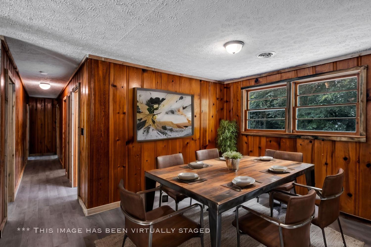Exceptional opportunity to acquire a cash flowing investment property situated on 8.87 acres. Long-term tenants in place. 6.5% ROI with lease. Nestled in a small valley on Hassell's Creek, there's something very different about the energy and magic of this serene 8+ acres. Enjoy the new bridge to the "hobbit house" (root cellar/shelter), tinker in your new 2 car garage on concrete, head 700 yards west to the local convenient store, or walk a 1/4 mile east to the waters of Hassell's Creek. Bring the kids, toys, animals, farm, and garden ideas. Bring back the pond and fountain or parcel and build. Huge entertaining areas with an eat in kitchen, open floor plan, vintage wood burning stove in kitchen, enormous family room with wood burning fireplace, and first floor laundry. Unbelievable master suite with wet bar, wood burning fireplace, loads of closet storage, skylights, and walk out private deck. Complete remodel including kitchen, 2 full baths, new appliances, refinished hard wood floors, new carpet, new septic field and updated tank, new windows and land clearing. This property checks all the boxes. New survey completed 2024. 1,500 linear feet of road frontage. Parcel may be subdivided with multiple build sites. Co-listing agent is owner / personal interest.