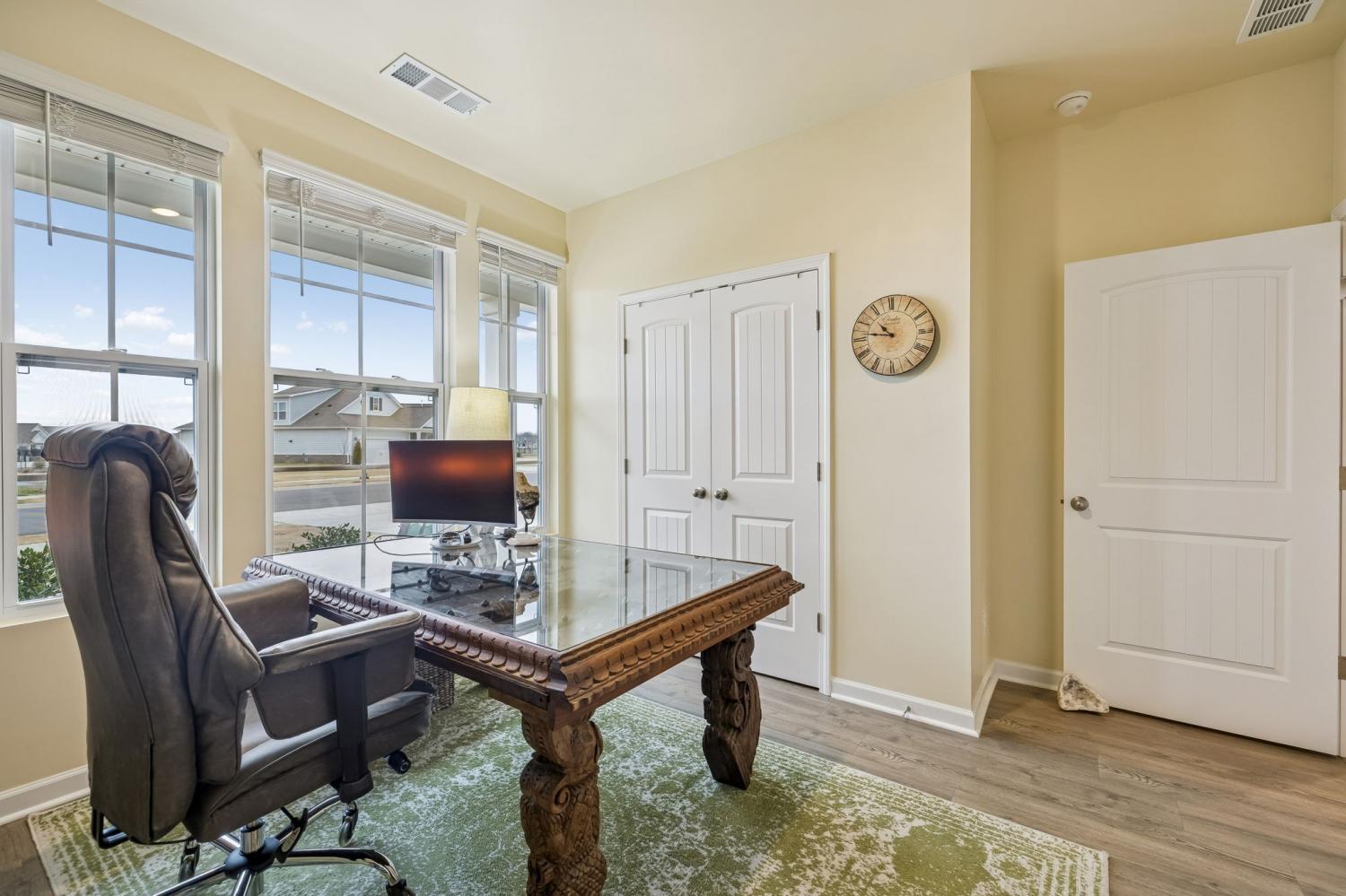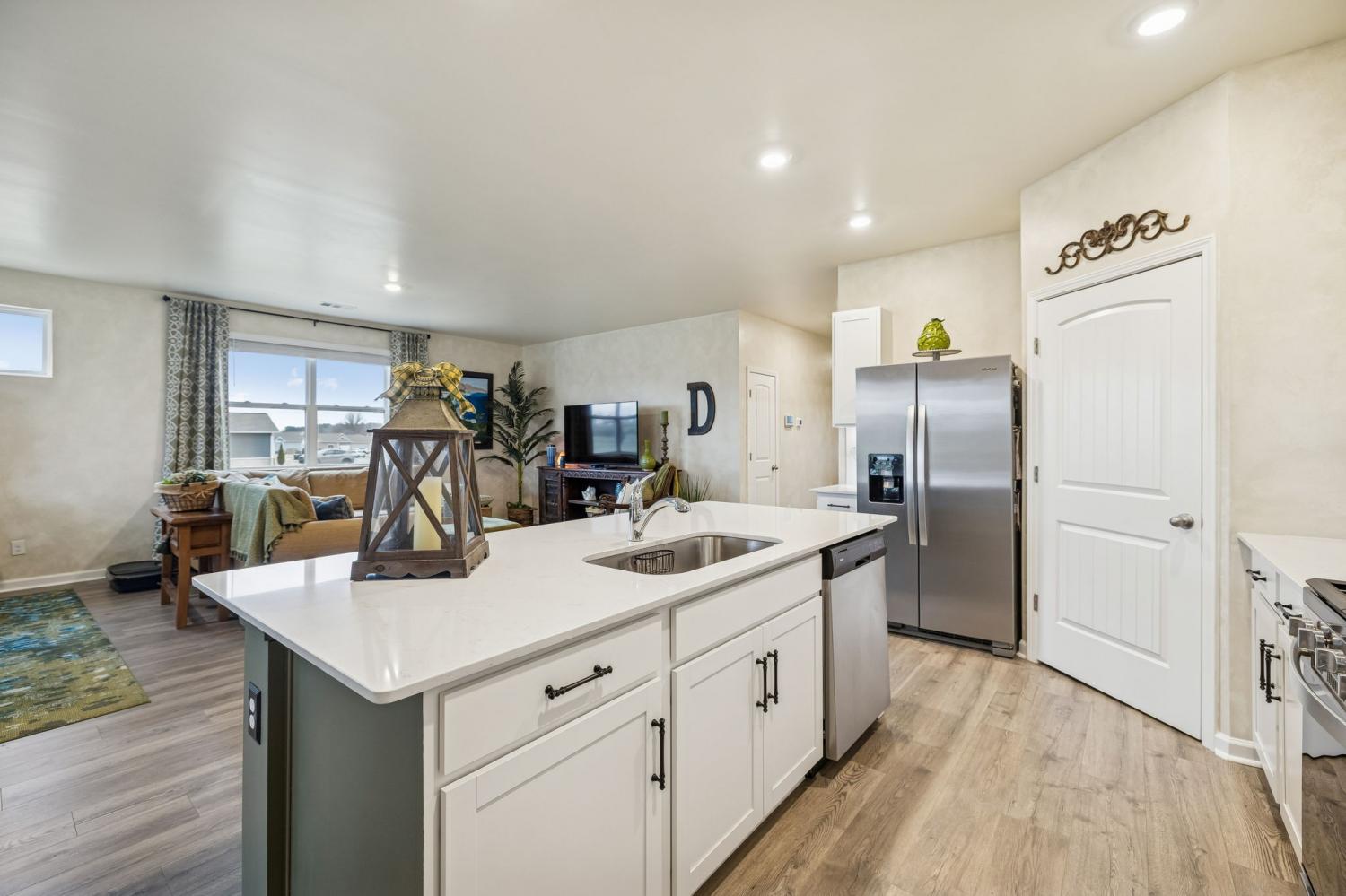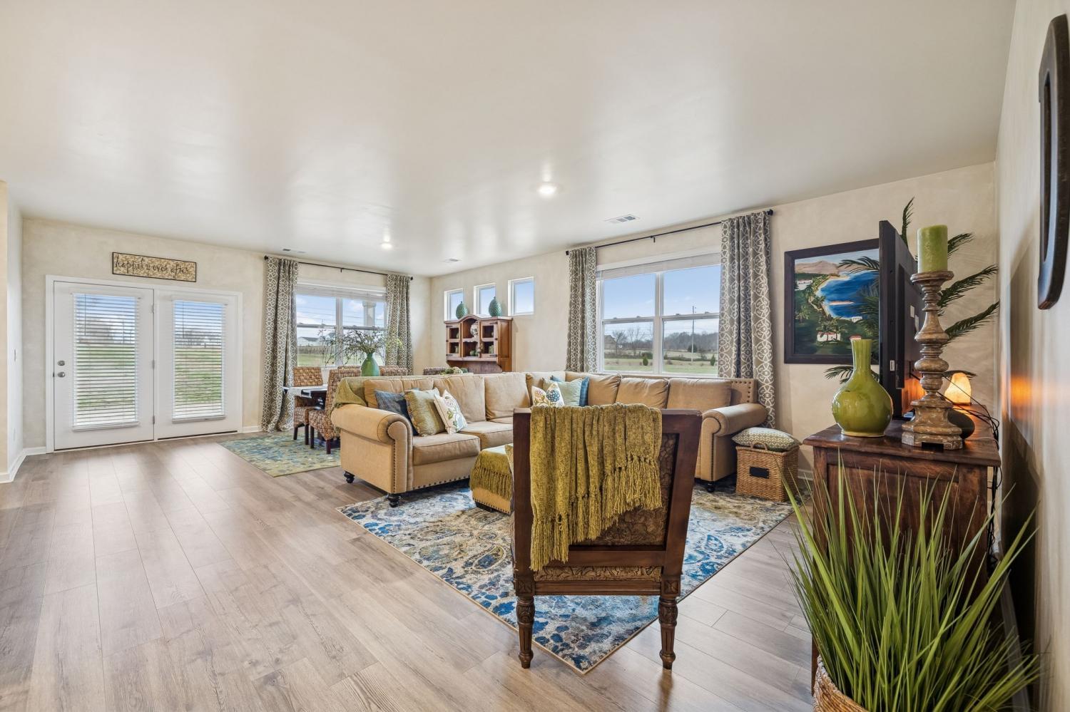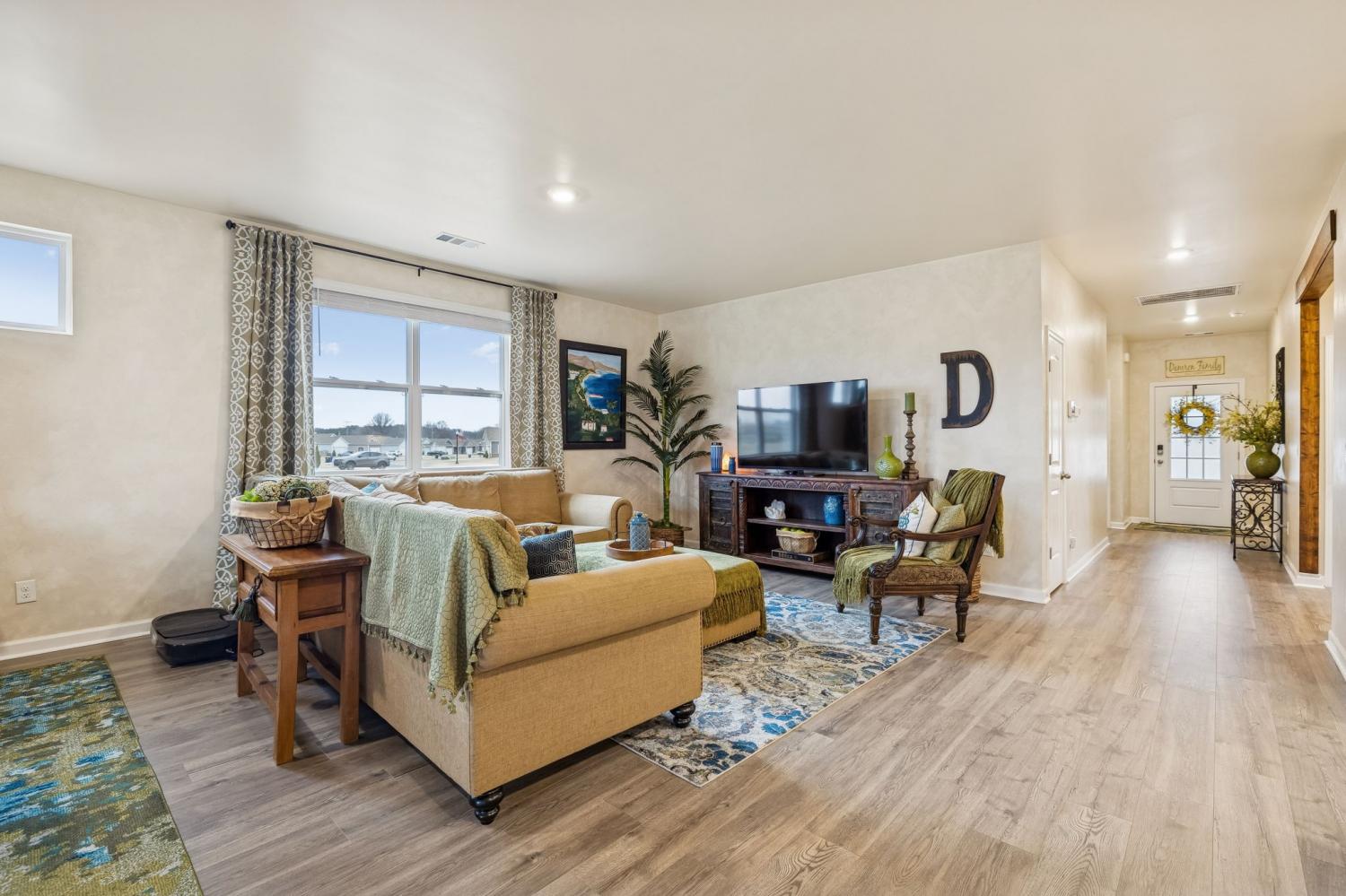 Experience better than new with the perfect blend of modern luxury & permanent tranquility in this sun-drenched home, featuring high-end finishes & an incredible park-like setting. The heart of the home is an expansive Great Room with enough space to seamlessly combine living, dining, and kitchen areas. The entryway & Great Room feature sophisticated Italian plaster-like paint, giving the home a unique, designer feel. This home is move-in ready with recently painted walls & ceilings, complemented by durable, laminate flooring. Architectural character is found throughout, including stained wood casing over hallway openings and a beautiful stairway half-wall. The kitchen is a chef’s dream, stylishly appointed with beautiful white Quartz countertops, all-white cabinets with oil-bronzed pulls, & an under-mount stainless steel sink. A roomy walk-in pantry provides excellent organization for all your culinary needs. The Primary Suite serves as a true retreat, offering enough space for a private sitting area. It features massive "his and hers" walk-in closets & a bathroom with a separate toilet for added privacy. Upstairs, a huge loft provides a versatile second living space, it could be a 4th bedroom w/closet & unique walk-through access to a large attic storage area. The backyard is a private sanctuary designed for relaxation. Elegant French doors lead you to a beautiful park-like atmosphere. Enjoy peaceful, permanent scenery with views of a berm & stunning all 4 seasons from both your front & back windows that will never be built on. Additionally, you can relax on either the front or back covered porches regardless of the weather. Storage is a standout feature of this home, including three separate hallway closets—one of which is a dedicated walk-in storage space—plus a walk-in pantry & extensive upstairs storage BONUS-For those who love community amenities, the neighborhood pool & clubhouse is right across the street!