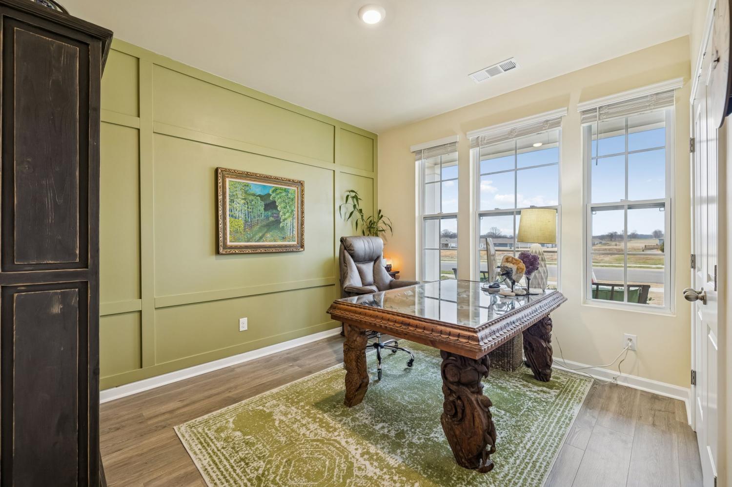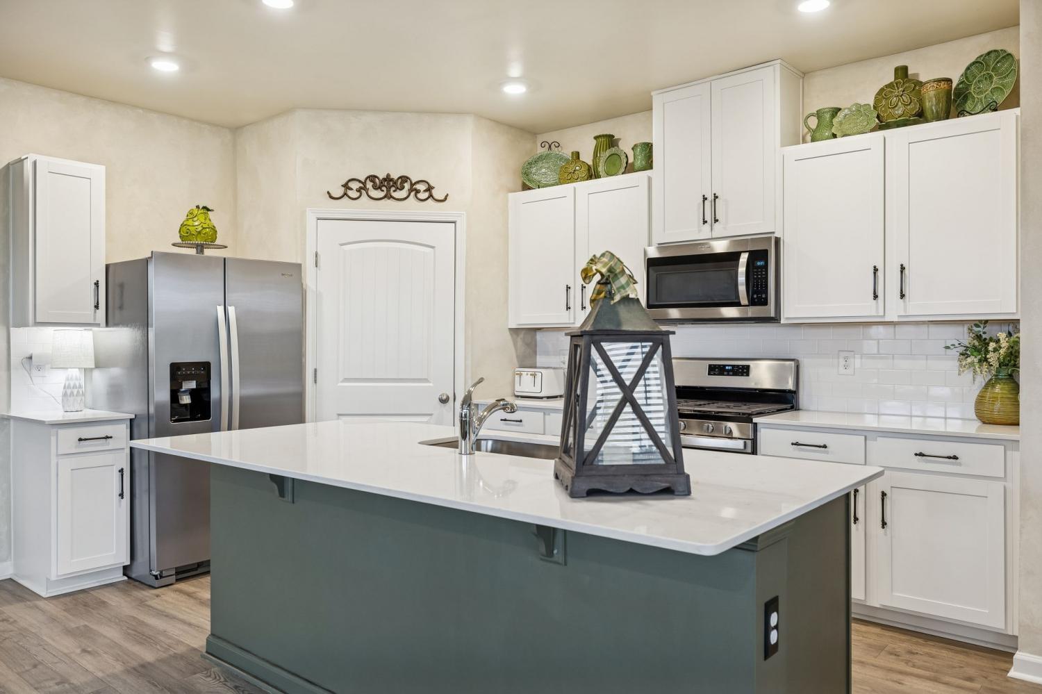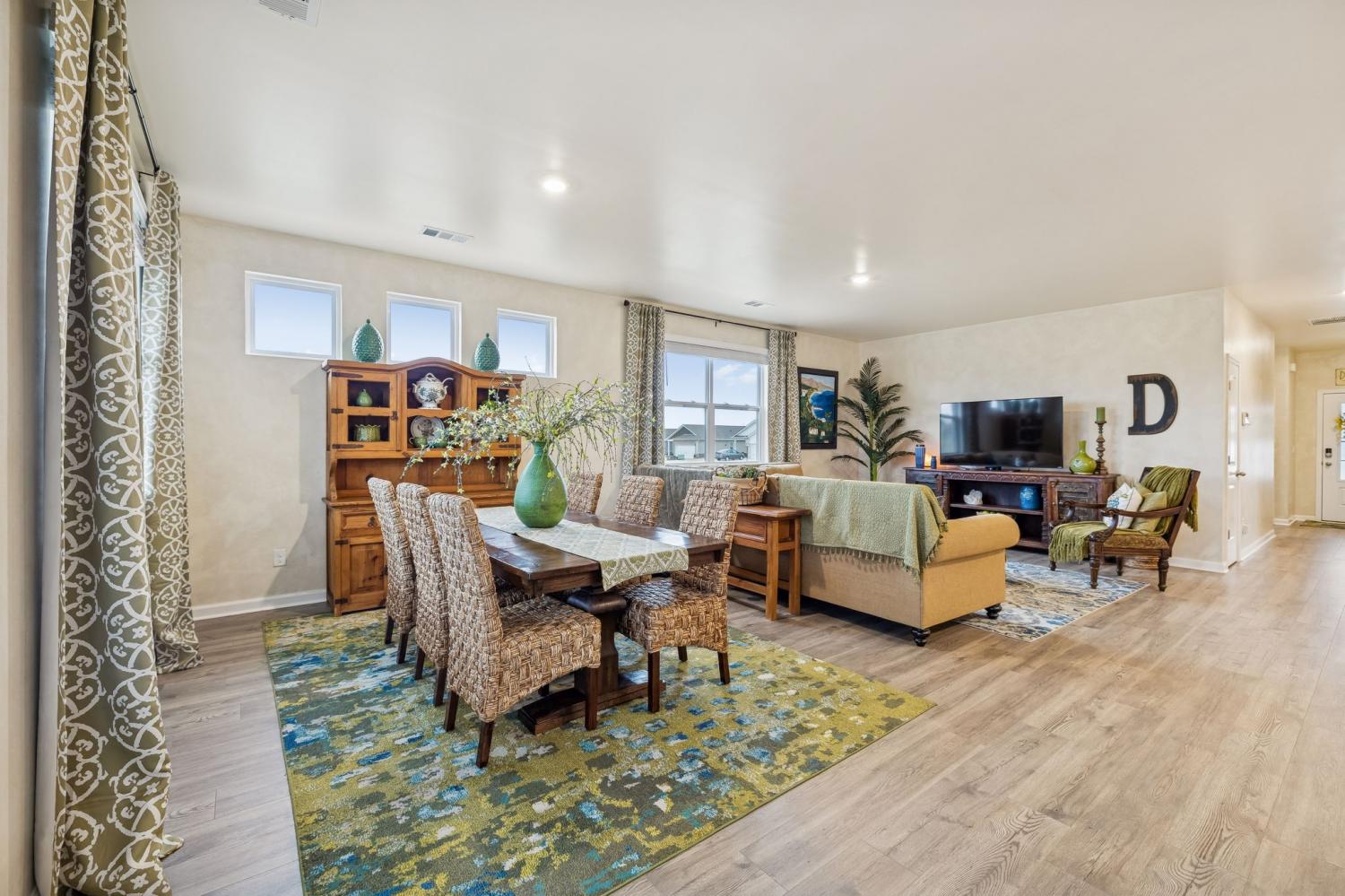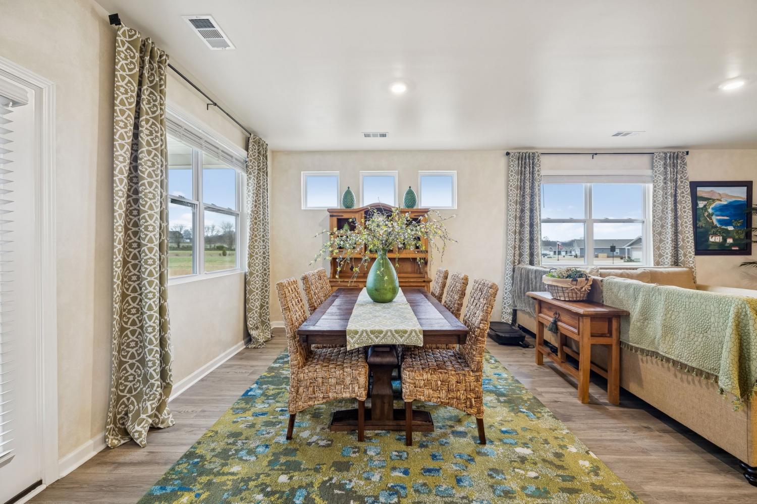 Experience better than new with the perfect blend of modern luxury & permanent tranquility in this sun-drenched home, featuring high-end finishes & an incredible park-like setting. The heart of the home is an expansive Great Room with enough space to seamlessly combine living, dining, and kitchen areas. The entryway & Great Room feature sophisticated Italian plaster-like paint, giving the home a unique, designer feel. This home is move-in ready with recently painted walls & ceilings, complemented by durable, laminate flooring. Architectural character is found throughout, including stained wood casing over hallway openings and a beautiful stairway half-wall. The kitchen is a chef’s dream, stylishly appointed with beautiful white Quartz countertops, all-white cabinets with oil-bronzed pulls, & an under-mount stainless steel sink. A roomy walk-in pantry provides excellent organization for all your culinary needs. The Primary Suite serves as a true retreat, offering enough space for a private sitting area. It features massive "his and hers" walk-in closets & a bathroom with a separate toilet for added privacy. Upstairs, a huge loft provides a versatile second living space, it could be a 4th bedroom w/closet & unique walk-through access to a large attic storage area. The backyard is a private sanctuary designed for relaxation. Elegant French doors lead you to a beautiful park-like atmosphere. Enjoy peaceful, permanent scenery with views of a berm & stunning all 4 seasons from both your front & back windows that will never be built on. Additionally, you can relax on either the front or back covered porches regardless of the weather. Storage is a standout feature of this home, including three separate hallway closets—one of which is a dedicated walk-in storage space—plus a walk-in pantry & extensive upstairs storage BONUS-For those who love community amenities, the neighborhood pool & clubhouse is right across the street!