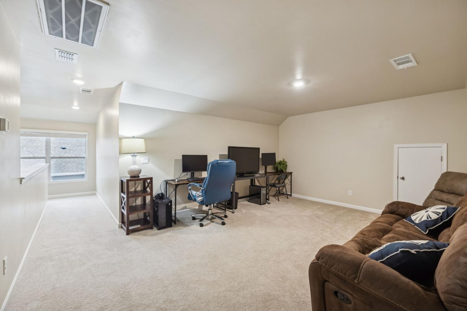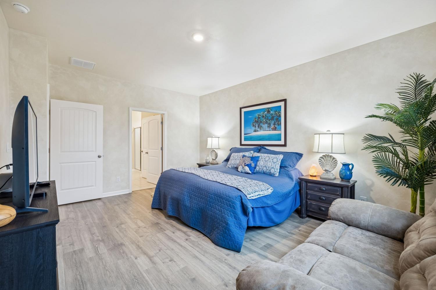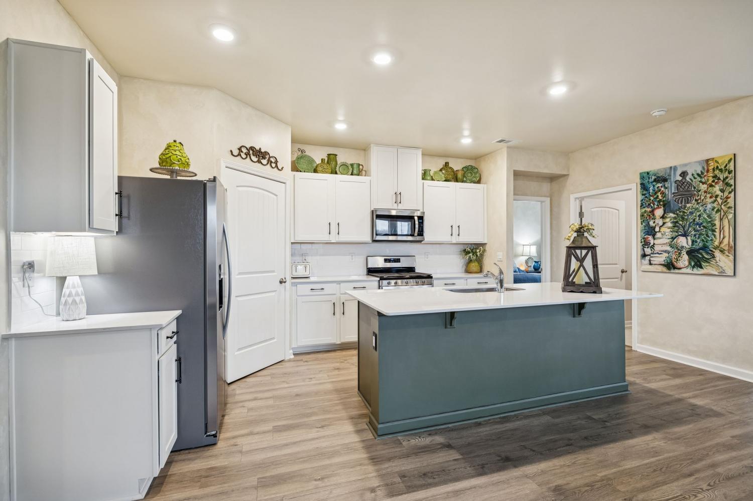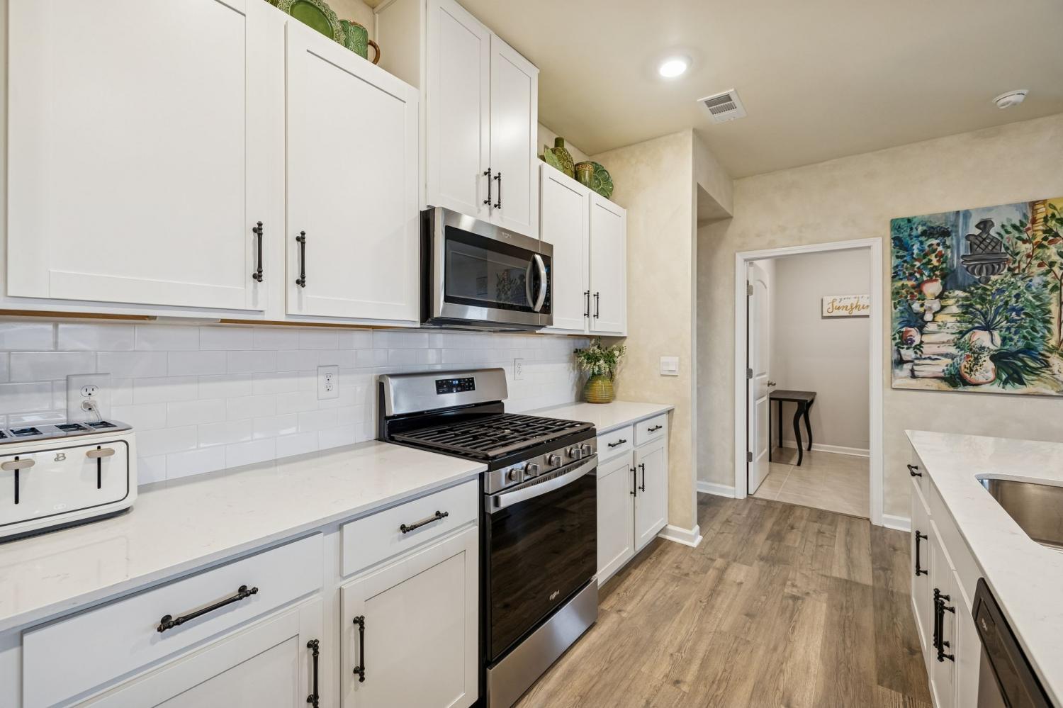 Experience better than new with the perfect blend of modern luxury & permanent tranquility in this sun-drenched home, featuring high-end finishes & an incredible park-like setting. The heart of the home is an expansive Great Room with enough space to seamlessly combine living, dining, and kitchen areas. The entryway & Great Room feature sophisticated Italian plaster-like paint, giving the home a unique, designer feel. This home is move-in ready with recently painted walls & ceilings, complemented by durable, laminate flooring. Architectural character is found throughout, including stained wood casing over hallway openings and a beautiful stairway half-wall. The kitchen is a chef’s dream, stylishly appointed with beautiful white Quartz countertops, all-white cabinets with oil-bronzed pulls, & an under-mount stainless steel sink. A roomy walk-in pantry provides excellent organization for all your culinary needs. The Primary Suite serves as a true retreat, offering enough space for a private sitting area. It features massive "his and hers" walk-in closets & a bathroom with a separate toilet for added privacy. Upstairs, a huge loft provides a versatile second living space, it could be a 4th bedroom w/closet & unique walk-through access to a large attic storage area. The backyard is a private sanctuary designed for relaxation. Elegant French doors lead you to a beautiful park-like atmosphere. Enjoy peaceful, permanent scenery with views of a berm & stunning all 4 seasons from both your front & back windows that will never be built on. Additionally, you can relax on either the front or back covered porches regardless of the weather. Storage is a standout feature of this home, including three separate hallway closets—one of which is a dedicated walk-in storage space—plus a walk-in pantry & extensive upstairs storage BONUS-For those who love community amenities, the neighborhood pool & clubhouse is right across the street!
