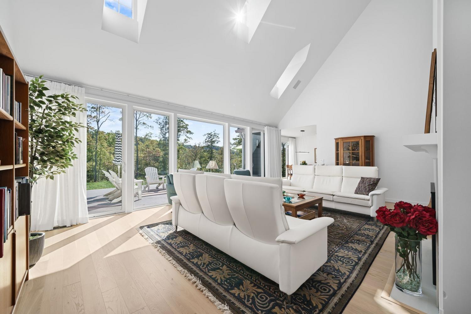 Designed by world-renowned architect Hugh Newell Jacobsen, this modern masterpiece brings his Life Magazine Dream House concept to life in the heart of the Cumberland Plateau. Nestled on 28 private acres with bluffs, caves, and wet weather cascading waterfalls, this 2023 custom build showcases Anderson windows and doors, Superior Walls foundation, Hardie Board siding, spray-foam insulation, and zip-board roof decking & siding. Inside, enjoy 9-10' ceilings, 8' windows, a Dedicated Theater Room wired for surround sound. There are quartz counters throughout, KitchenAid appliances, and a gas fireplace beneath vaulted ceilings. Features include a sound system with speakers throughout on the main level, heated tile floor in the master bath, tankless water heater, dual-fuel HVAC, and wiring for a whole house generator. Outdoor living is enhanced with a hot tub, raised planters, and a fabulous 54' trex deck to relax on. A 24×36 insulated pole barn with attic storage, and a 12×24 rustic cabin insulated with spray-foam and dual lofts. A rare blend of architectural pedigree and Tennessee tranquility.