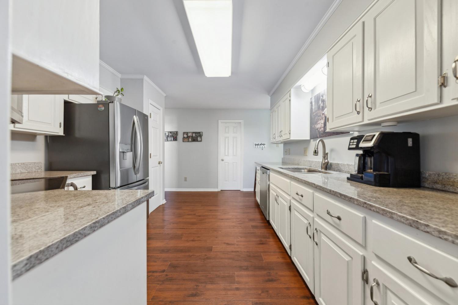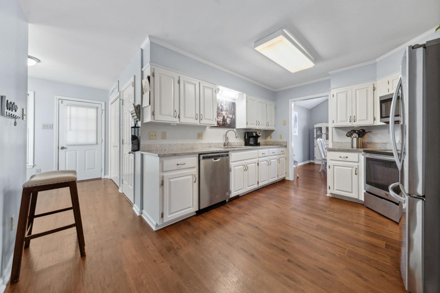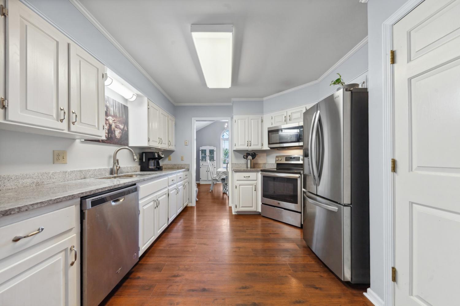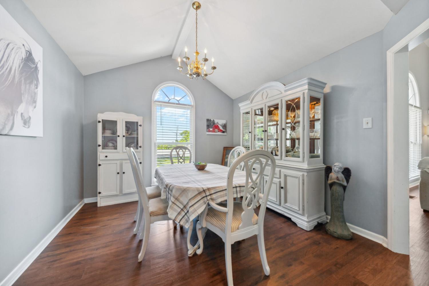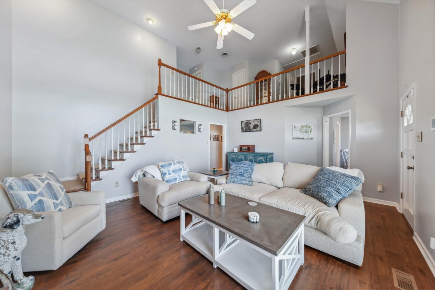 Charming 4-bdrm home in established neighborhood! Welcome to your dream home? This stunning 4-bdrm, 2.5 bathroom residence features a spacious design making it perfect for growing families or those in need of extra space. As you enter, you'll be greeted by beautiful engineered hardwood flooring that flows throughout the main living areas. The great rm boasts a soaring cathedral ceiling and a cozy wood-burning fireplace, offering a warm and inviting atmosphere for gatherings. Enjoy meals in the elegant formal dining rm, and whip up your favorite dishes in the well-equipped kitchen featuring white cabinets, stainless steel appliances, and gorgeous granite counter tops. The primary suite is conveniently located on the main floor, complete with a luxurious primary bath that includes double sinks, an oversized tub/shower combo with stylish tile surround for your comfort. Upstairs, you'll find a cozy sitting rm on the landing, perfect for a quiet retreat. Step outside to your screened porch overlooking a fenced backyard-a perfect spot for morning coffee or evening relaxation. The concrete driveway leads to an oversized 2-car garage with a side entrance for added convenience. Located on a peaceful cul-de-sac in an established neighborhood, this home offers easy access to I-65, making commuting a breeze. Don't miss the chance to make this wonderful property your own! Schedule a showing today and discover all the features this exceptional home has to offer!