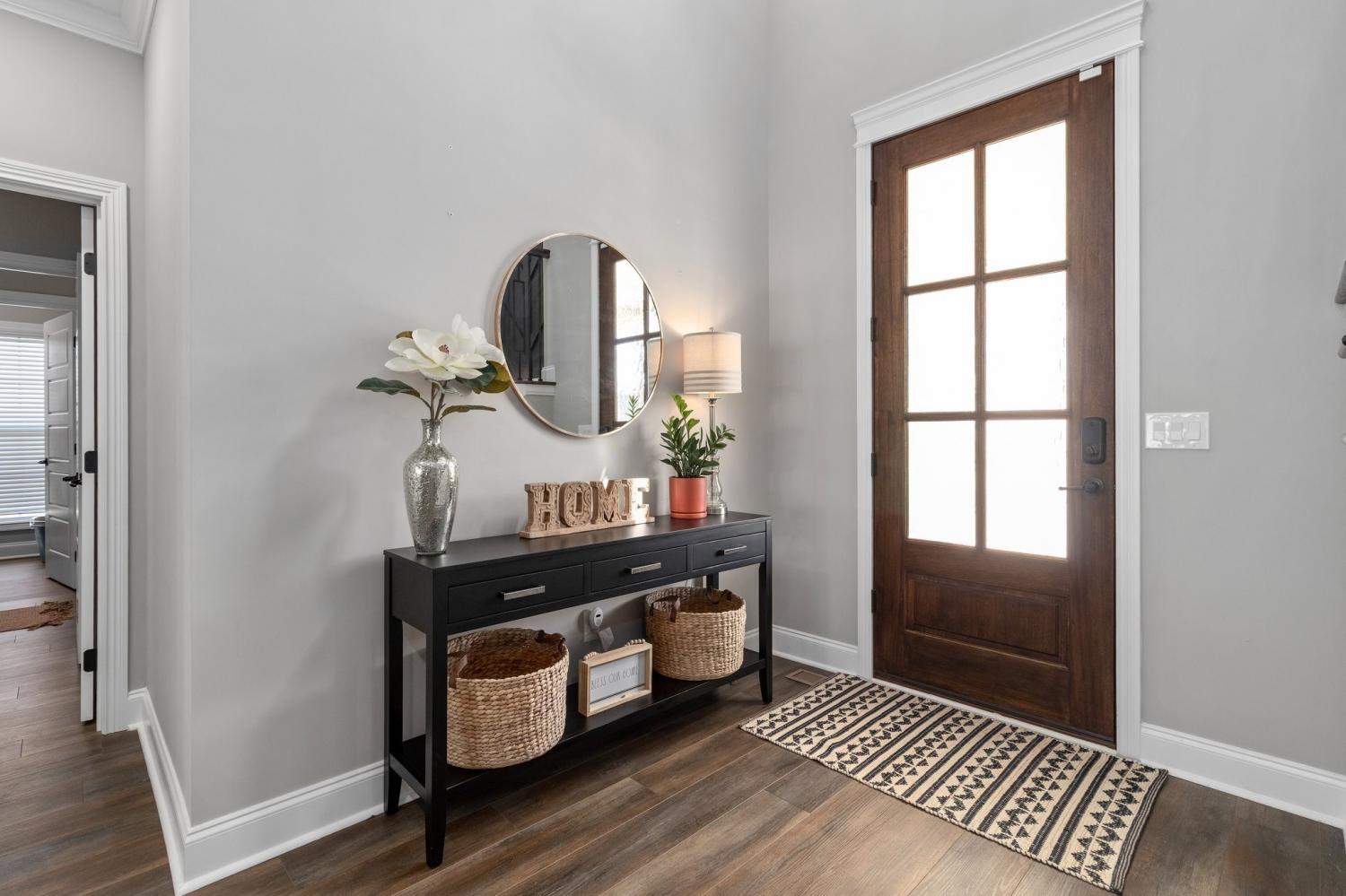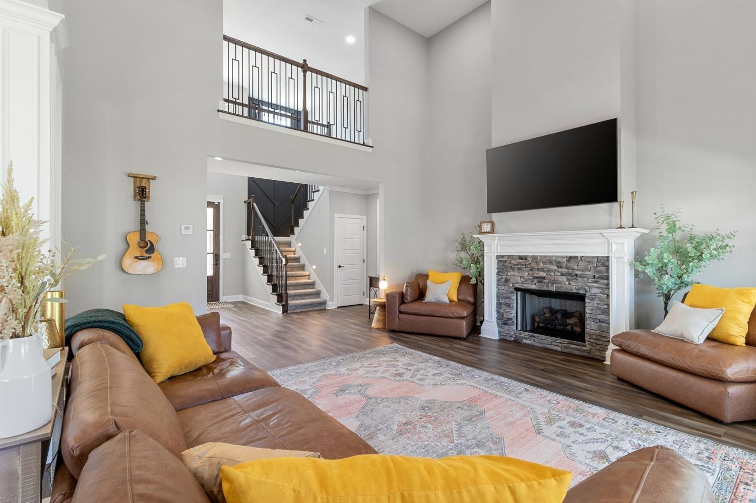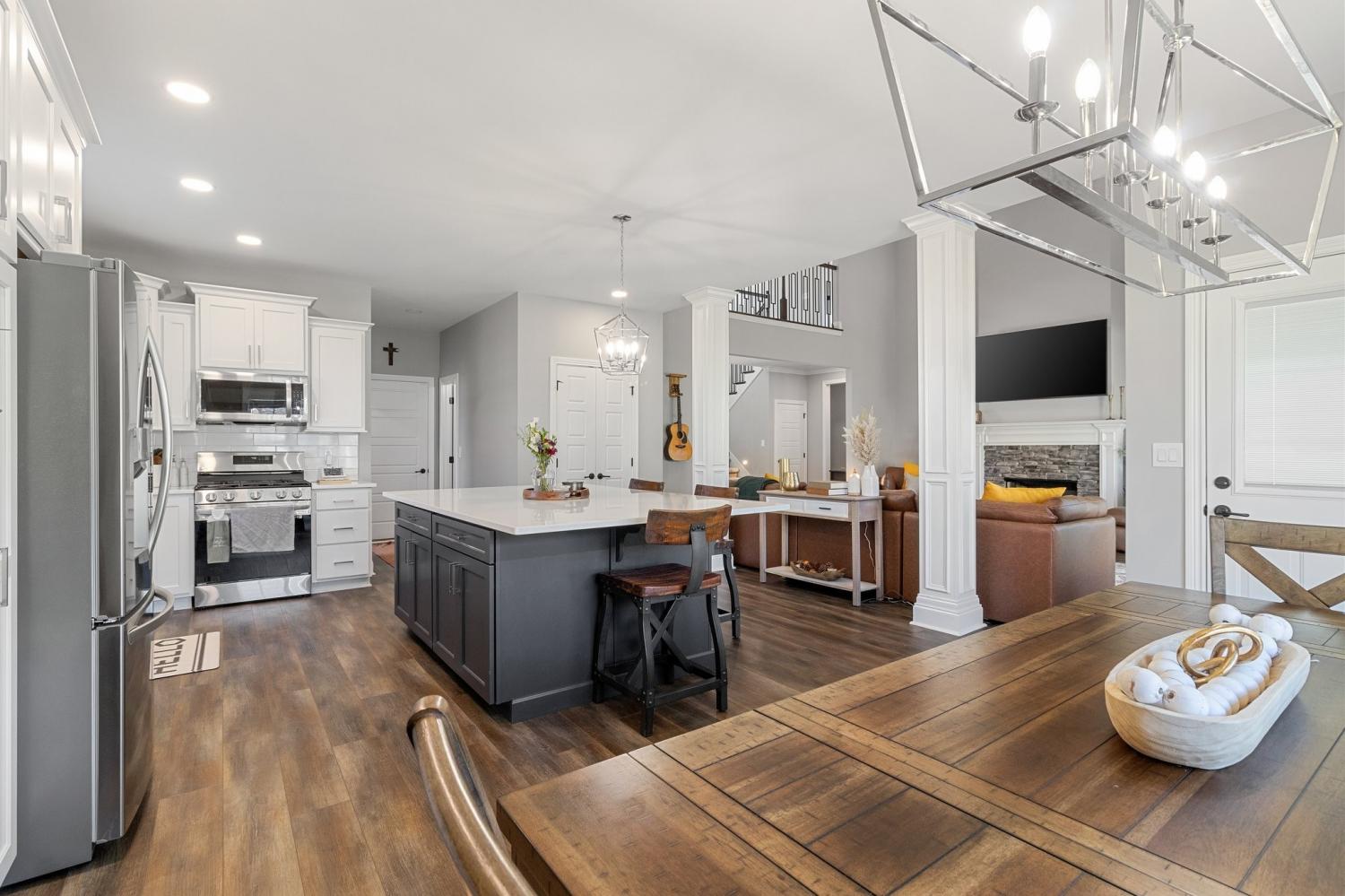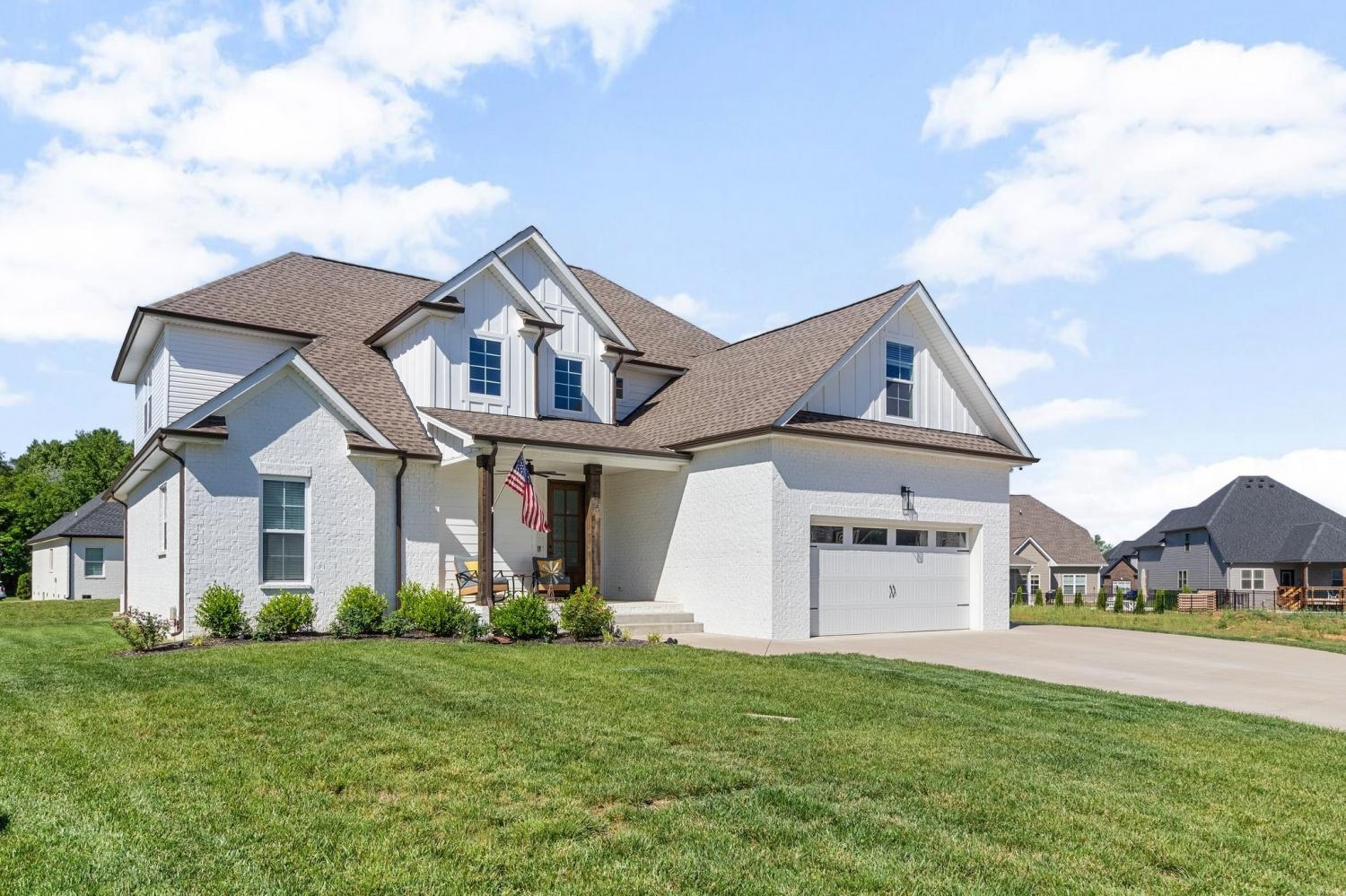 Here it is... Your stunning 4-bedroom, 3.5-bath home located in the desirable Easthaven subdivision. Built in 2022, this 2,903 sq ft residence showcases a thoughtfully designed floor plan with high-end finishes throughout. The home features dual master suites—one on the main level and another upstairs—offering privacy and flexibility for multigenerational living or guest accommodations. The open-concept main living area is anchored by a spacious great room with vaulted ceilings and a theater-style balcony, flowing seamlessly into a chef’s kitchen featuring a huge island, granite countertops, ample cabinetry, and a breakfast nook that opens to the formal dining area. Modern amenities include a Kohler whole-house generator system, gas tankless water heater, hardwired security camera system, built-in garage vacuum system, and an oversized 2-car garage that you can park a boat in, offering plenty of storage or workspace. The luxurious primary suite boasts a tiled shower and a free-standing soaking tub for ultimate relaxation. Outdoor living is equally impressive with a covered front porch and a large covered back patio, perfect for entertaining or quiet evenings. The extended side driveway provides ample parking for all of your family and friends. Located just minutes from Nashville and downtown Clarksville, and within close proximity to top-rated schools, this home also offers access to community amenities including a pool and clubhouse. Immaculately maintained and move-in ready, this home combines elegance, comfort, and convenience in one of Clarksville’s premier neighborhoods. Schedule your private showing today. Backyard fence just approved by HOA. Seller credit towards a fence and closing cost is negotiable.