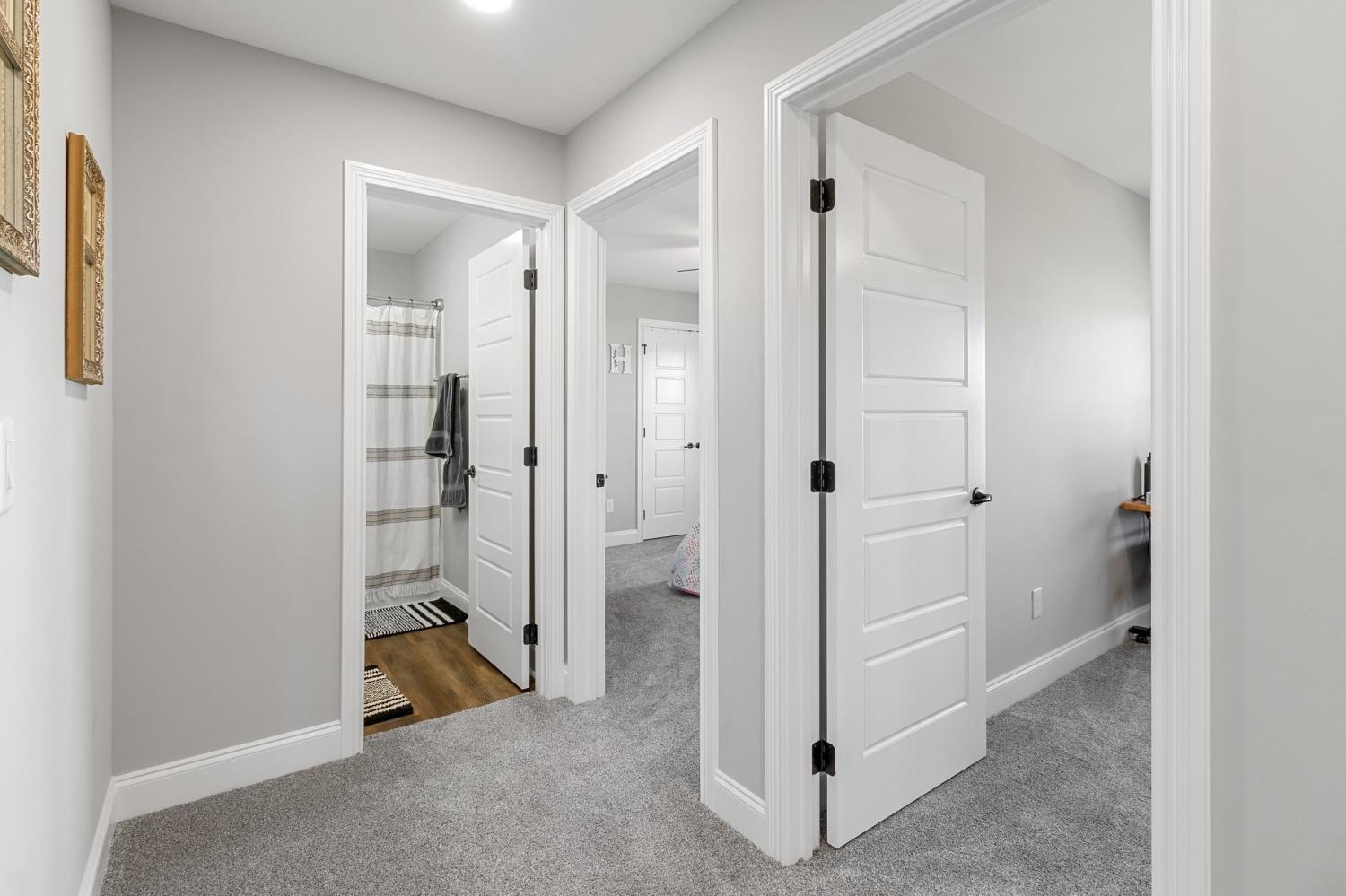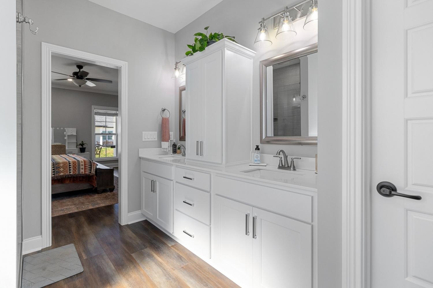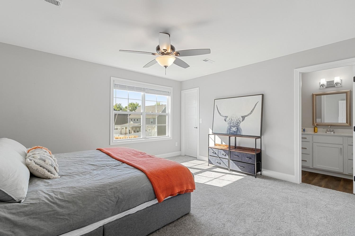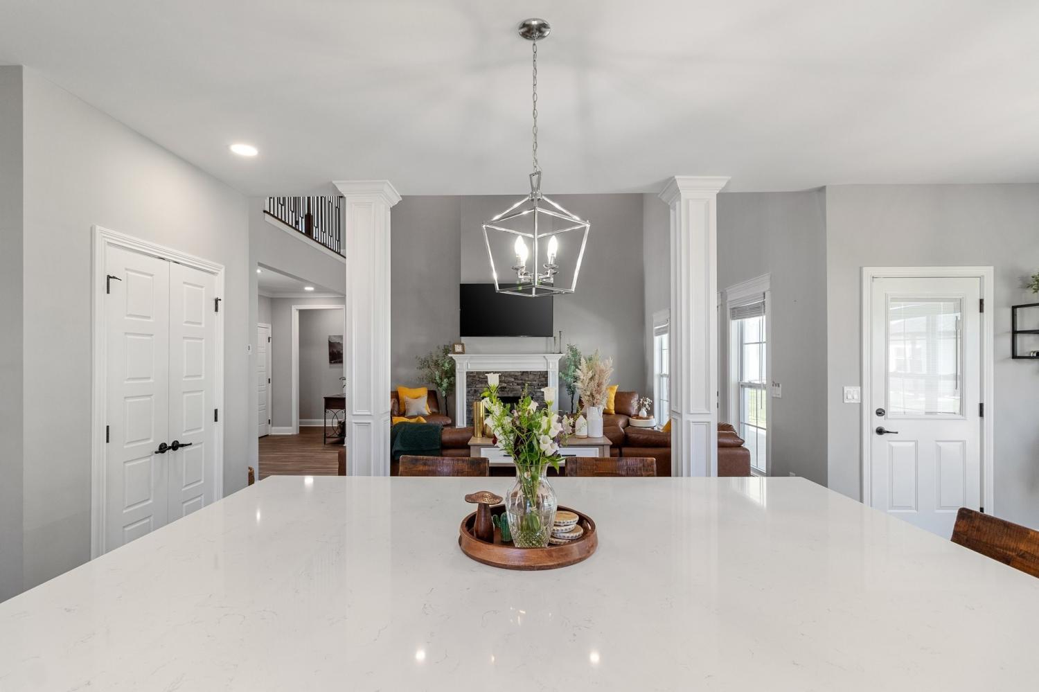 Here it is... Your stunning 4-bedroom, 3.5-bath home located in the desirable Easthaven subdivision. Built in 2022, this 2,903 sq ft residence showcases a thoughtfully designed floor plan with high-end finishes throughout. The home features dual master suites—one on the main level and another upstairs—offering privacy and flexibility for multigenerational living or guest accommodations. The open-concept main living area is anchored by a spacious great room with vaulted ceilings and a theater-style balcony, flowing seamlessly into a chef’s kitchen featuring a huge island, granite countertops, ample cabinetry, and a breakfast nook that opens to the formal dining area. Modern amenities include a Kohler whole-house generator system, gas tankless water heater, hardwired security camera system, built-in garage vacuum system, and an oversized 2-car garage that you can park a boat in, offering plenty of storage or workspace. The luxurious primary suite boasts a tiled shower and a free-standing soaking tub for ultimate relaxation. Outdoor living is equally impressive with a covered front porch and a large covered back patio, perfect for entertaining or quiet evenings. The extended side driveway provides ample parking for all of your family and friends. Located just minutes from Nashville and downtown Clarksville, and within close proximity to top-rated schools, this home also offers access to community amenities including a pool and clubhouse. Immaculately maintained and move-in ready, this home combines elegance, comfort, and convenience in one of Clarksville’s premier neighborhoods. Schedule your private showing today. Backyard fence just approved by HOA. Seller credit towards a fence and closing cost is negotiable.