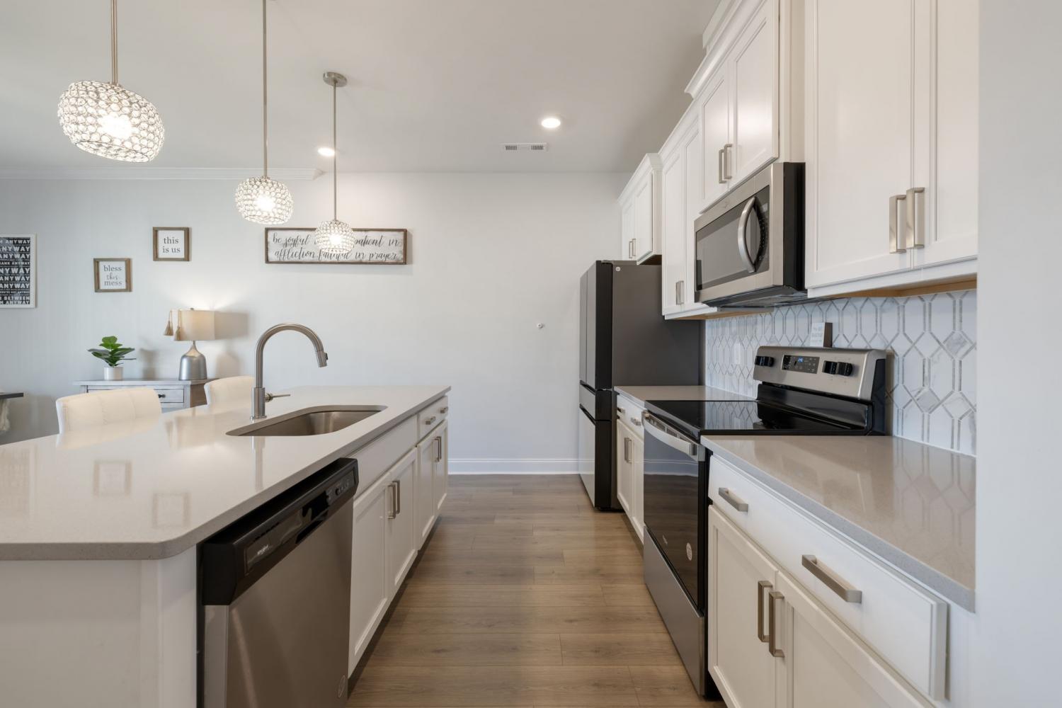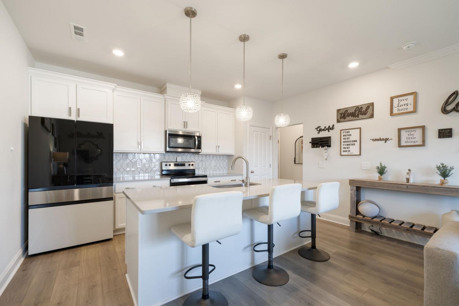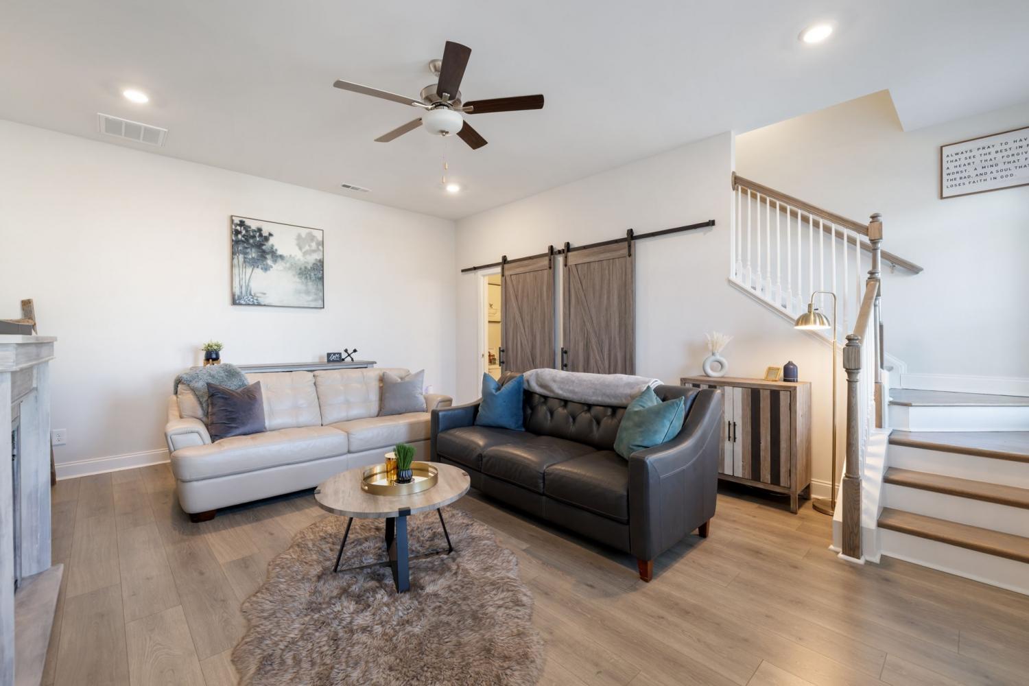 Welcome to Ridgeview 20 at Burkitt Ridge. This nearly new, thoughtfully designed townhome offering modern comfort, flexible living, and an exceptional location is just minutes from Nolensville-Brentwood line, the new outlet malls, and an easy commute to Nashville, I24 and Nashville Airport. This stylish 2-bedroom, 2.5-bath townhome offers 1,820 square feet across three well-planned levels, plus a 2-car garage and beautiful views of the Tennessee Hills. The entry level features a flexible living area perfect for a home office, sitting room, or media lounge, along with a convenient half bath and additional storage. The main living level features a bright open-concept kitchen and living space designed for entertaining, anchored by a large island with bar seating. The adjoining area offers flexibility for dining or lounging and is currently styled as a comfortable sitting and dining space overlooking beautifully maintained community green space. Upstairs, the top level is dedicated to privacy and comfort with two ensuite bedrooms and a centrally located laundry area. The spacious owner’s suite includes room for a king-size bed, a dedicated office nook, walk-in closet, and a sleek bath with a walk-in shower. Open the Juliet balcony to enjoy peaceful sunrise views and scenic overlooks of landscaped green space and rolling Tennessee hills. A second bedroom with its own full bath & walk in closet completes the home. Additional highlights include charming Juliet balconies on both the main and upper levels and a front porch that faces the community green space—creating a welcoming entry and a quiet outdoor retreat. Located on the Brentwood–Nolensville line, Burkitt Ridge offers walking trails, green space, a dog park, nearby retail and restaurants—all with quick access to interstates, shopping, and downtown Nashville. This beautiful home can be sold fully furnished for a quick turn-key investment option. Don't miss this exceptional opportunity.