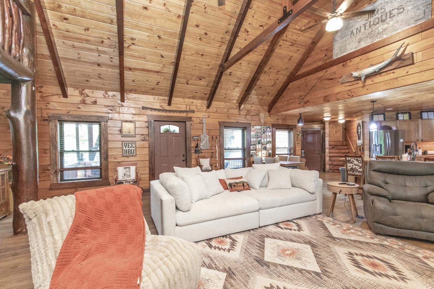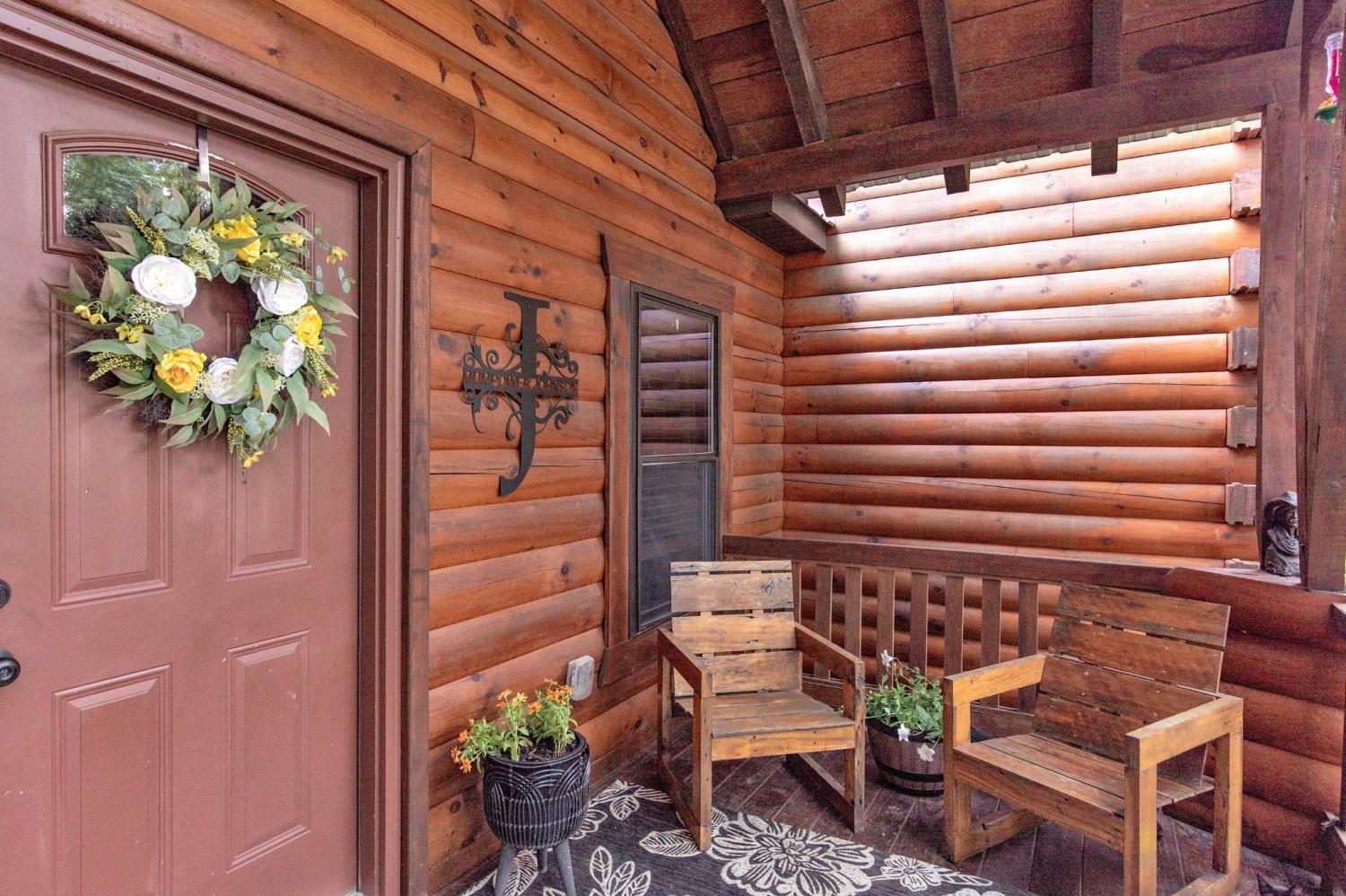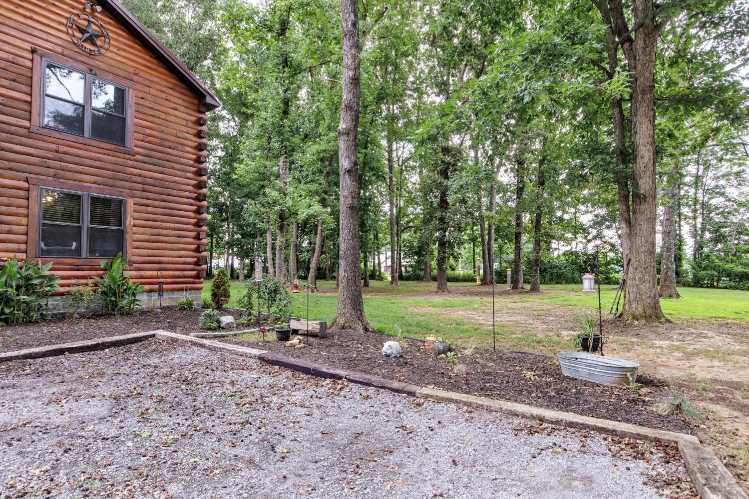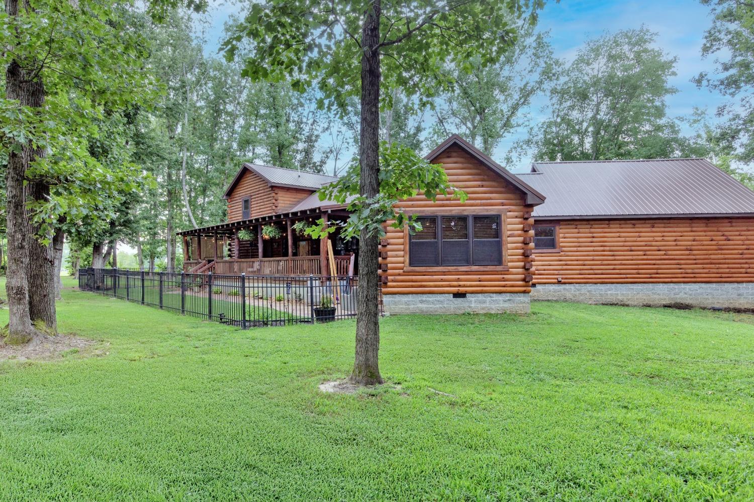 New Price! Beautiful custom log home on 3 plus acres. Lot has numerous trees and privacy. Located right out side city limits of White House. Master suite on main level, 2 bdrms, and full bath on second level w/loft area. Loft overlooks open living area. Rock fireplace in living room. Dining room with sliding door (currently used as a den). Spacious kitchen with island and eat-in area . Utility room/pantry off from kitchen. Too many custom features to mention, will have to view in person. 3 deer antler chandeliers, Circle drive. Unbelievable covered back porch overlooking private back yard, perfect fire pit area, 2 car garage. Covered front porch to greet your many guest. The staircase was made from trees from the property. A rare gem of a property! Tons of storage off the bonus room.