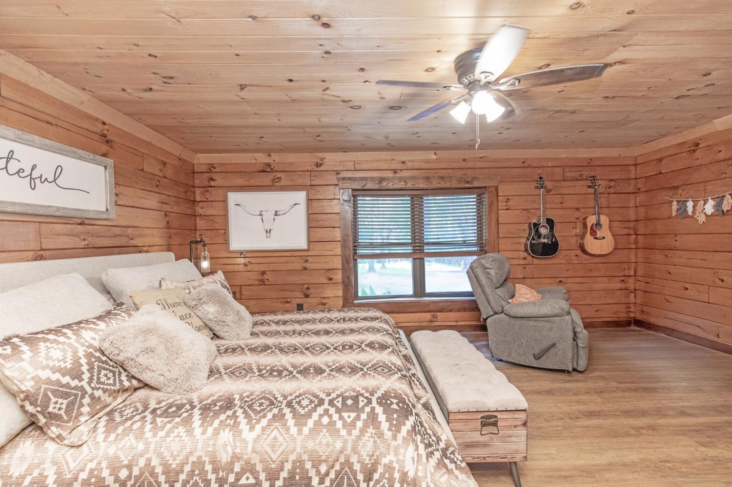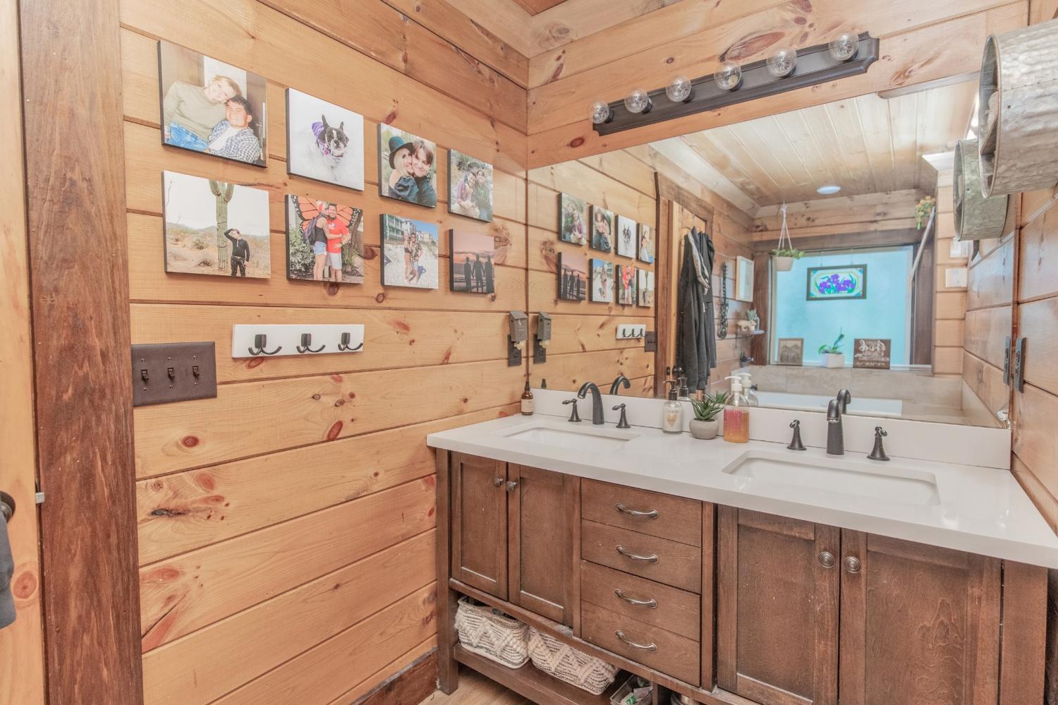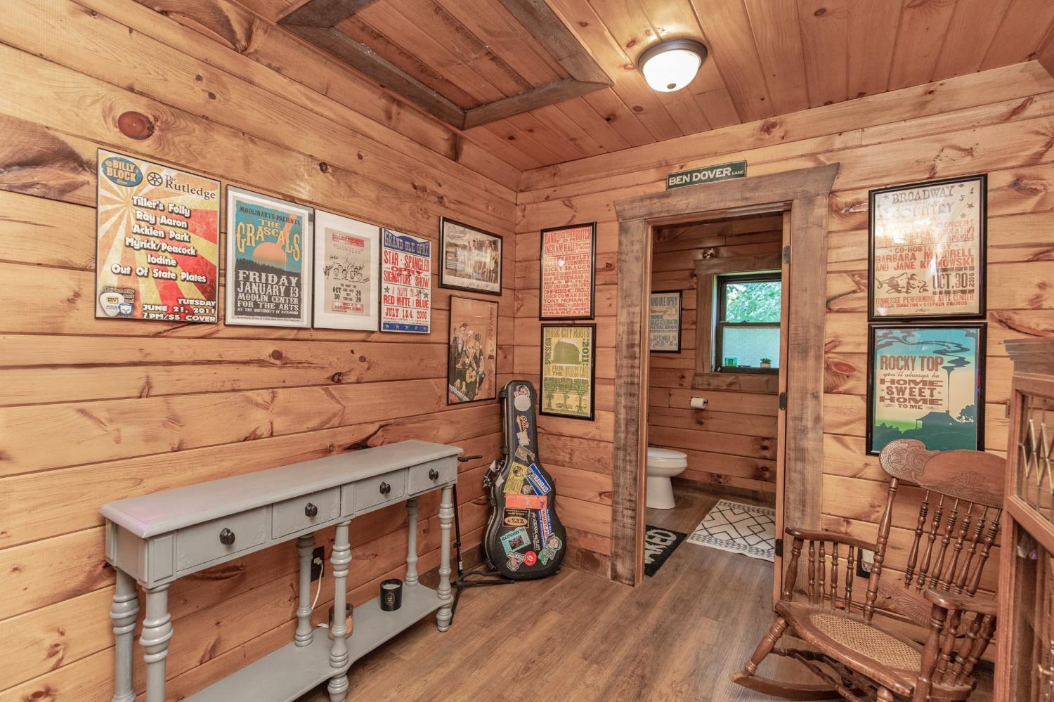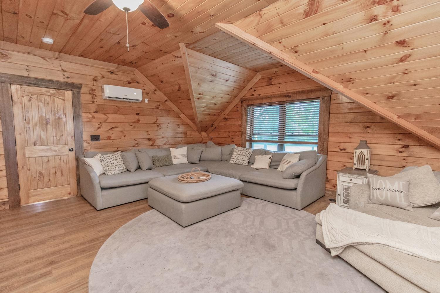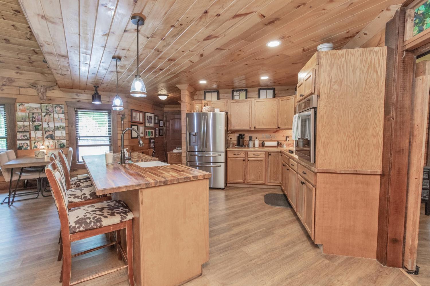 New Price! Beautiful custom log home on 3 plus acres. Lot has numerous trees and privacy. Located right out side city limits of White House. Master suite on main level, 2 bdrms, and full bath on second level w/loft area. Loft overlooks open living area. Rock fireplace in living room. Dining room with sliding door (currently used as a den). Spacious kitchen with island and eat-in area . Utility room/pantry off from kitchen. Too many custom features to mention, will have to view in person. 3 deer antler chandeliers, Circle drive. Unbelievable covered back porch overlooking private back yard, perfect fire pit area, 2 car garage. Covered front porch to greet your many guest. The staircase was made from trees from the property. A rare gem of a property! Tons of storage off the bonus room.