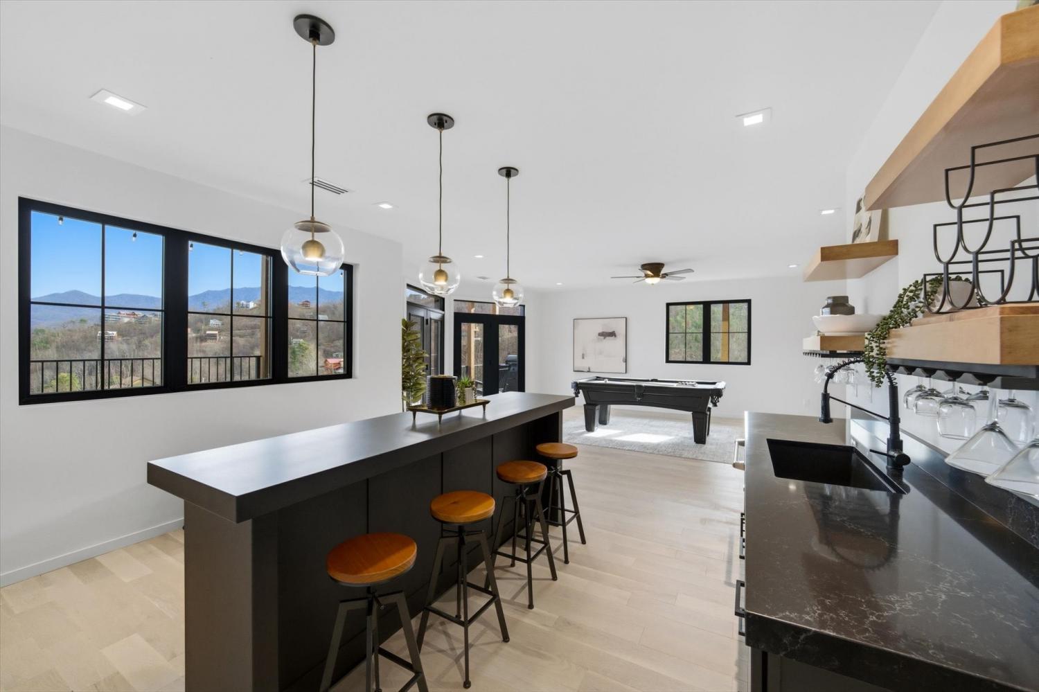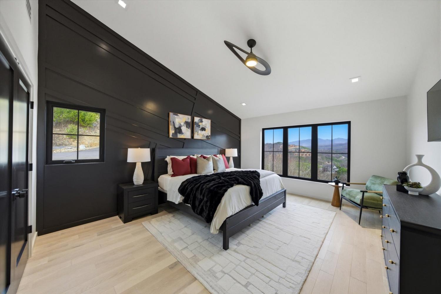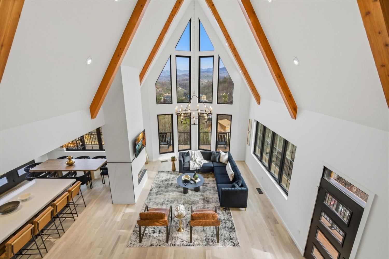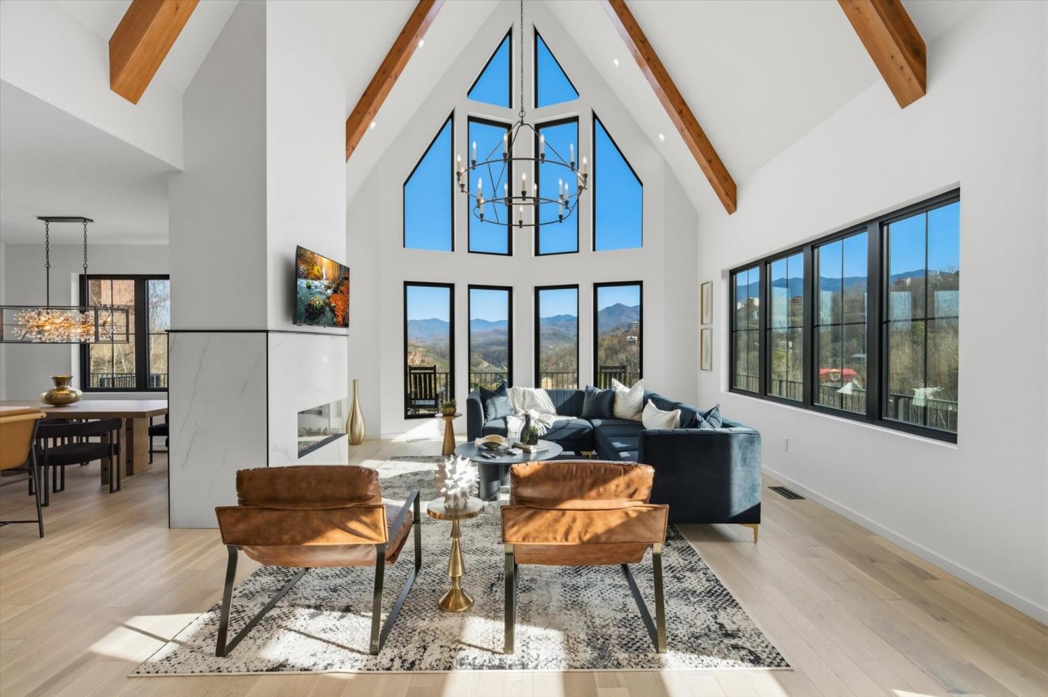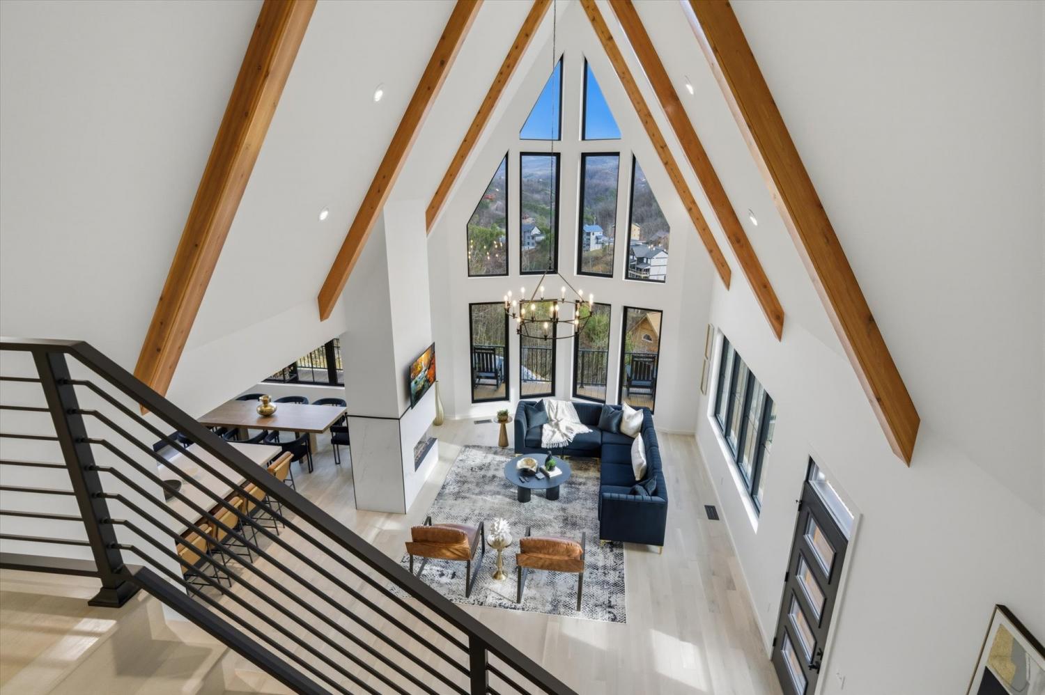 NEW 2026 Construction! Welcome to 550 Greenbriar Lane, a custom-built luxury modern mountain home in the highly sought-after Chalet Village of Gatlinburg, TN. This stunning 3-level, 3,757 sq ft residence offers year-round, unobstructed mountain views and exceptional versatility as a primary residence, second home, or short-term rental investment. The thoughtfully designed layout includes 4 bedrooms and 3.5 baths, an impressive 30-ft main-level cathedral ceiling with rustic beams, and 9-ft ceilings on all levels. High-end finishes include solid hardwood floors, marble and tile accents, quartz countertops, and custom cabinetry throughout. Designed for entertaining and relaxation, the home features an 8-seat private theater, a spacious entertainment room with arcade station, pool table, and mini kitchen/bar area. Outdoor living shines with expansive composite decking, a large hot tub, a rustic fire pit with weatherproof seating, and panoramic mountain views. A no-step entry from the parking area enhances accessibility. Sold *fully furnished, this home is truly *move-in ready or *STR-ready. Ideally located just minutes from downtown Gatlinburg, Pigeon Forge, Ober Mountain, and the entrance to Great Smoky Mountains National Park, offering the perfect blend of luxury, location, and mountain living. Chalet Village HOA Amenities include access to *three clubhouses with outdoor pools and two tennis courts (info sourced from www.ChaletVillage.com). *One-year builder’s warranty included. *The Certificate of Occupancy states a 12-person load capacity.