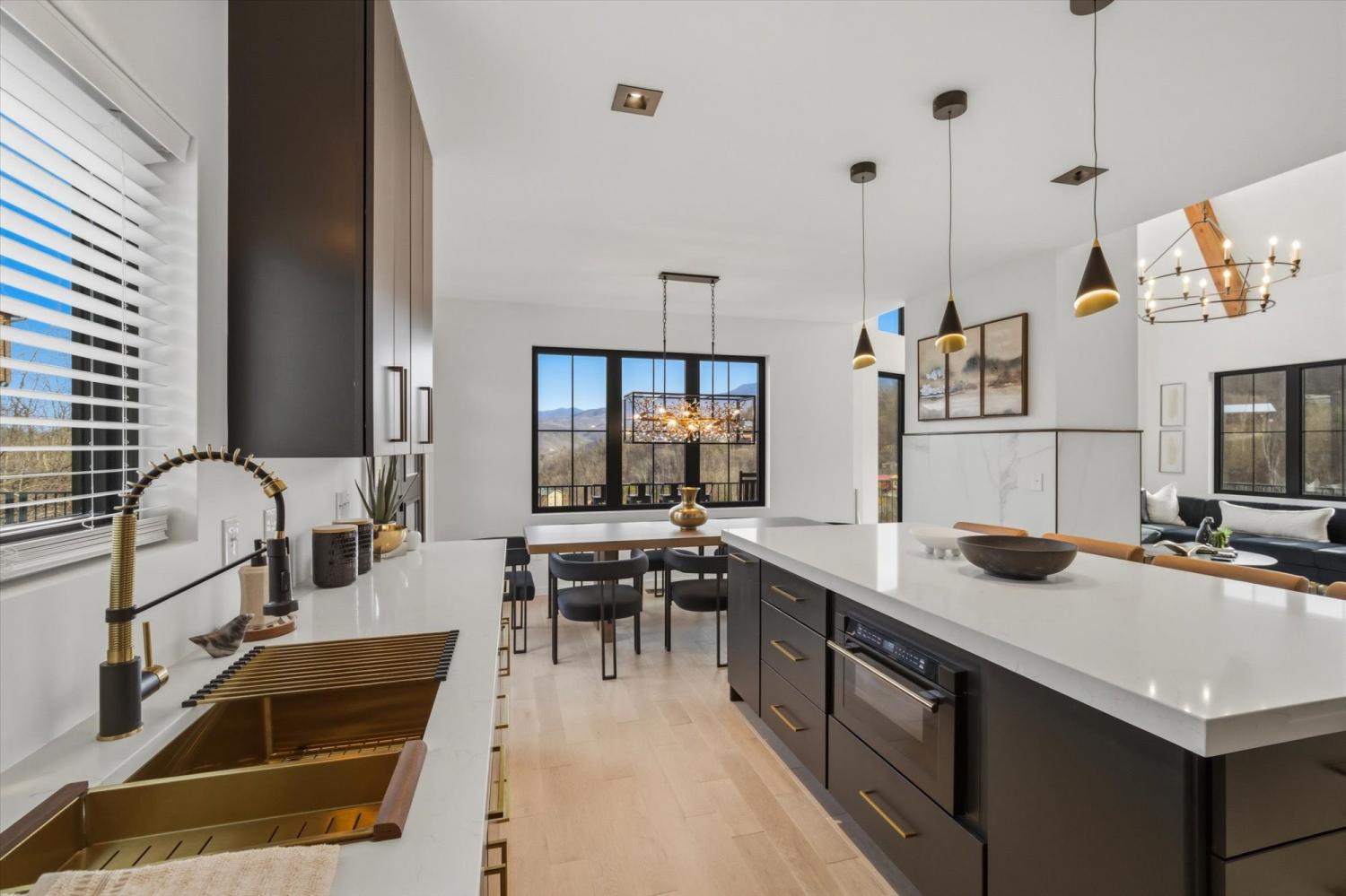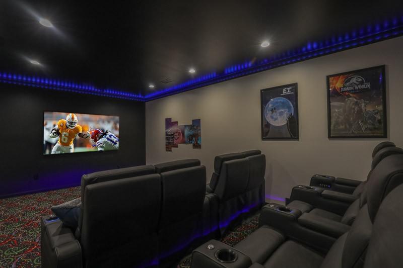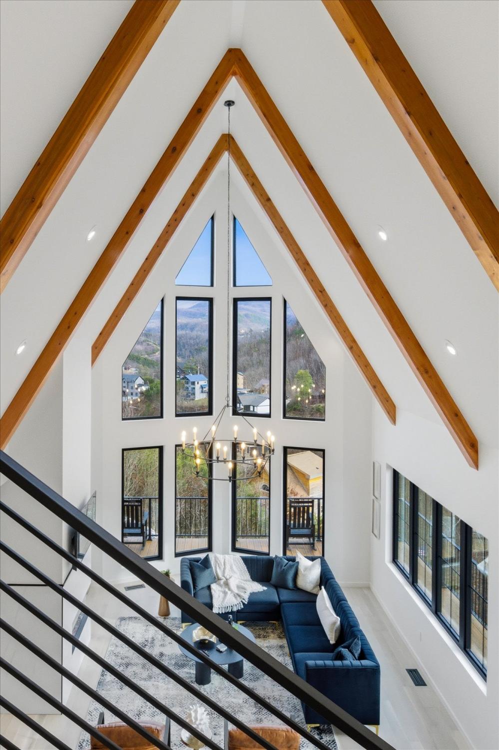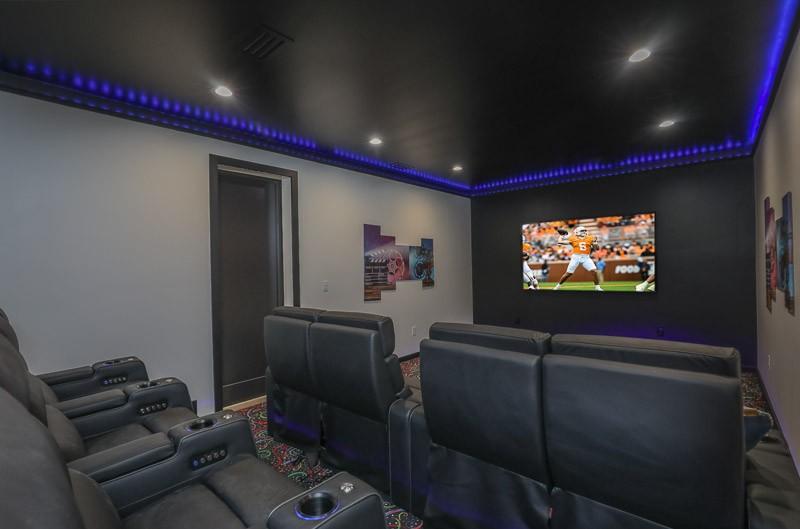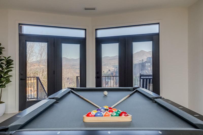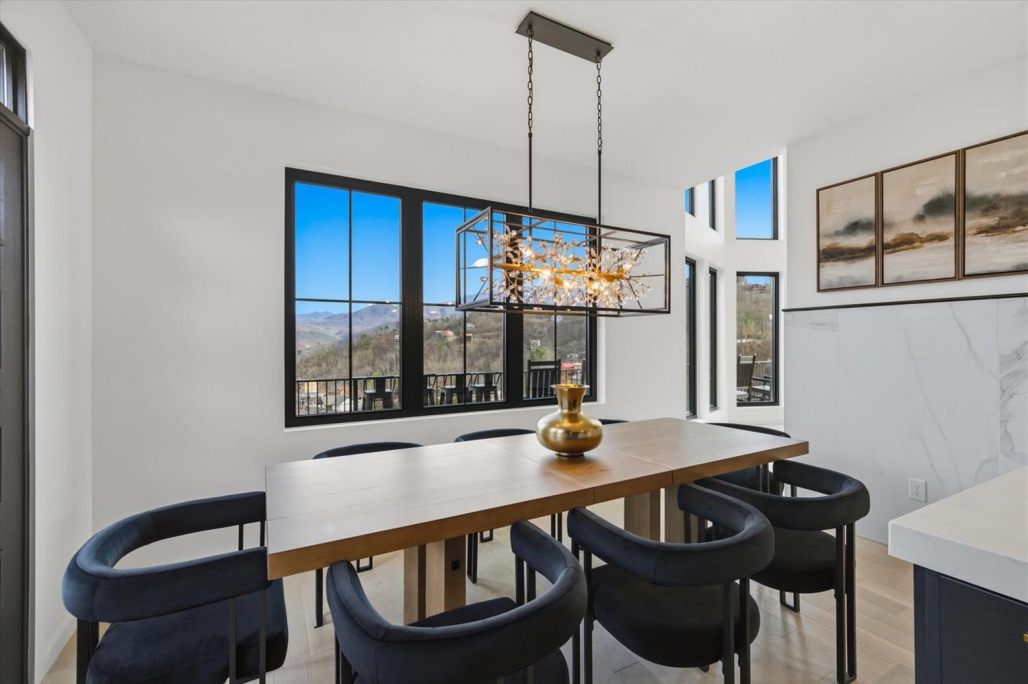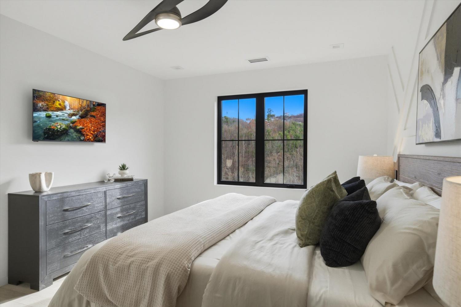 NEW 2026 Construction! Welcome to 550 Greenbriar Lane, a custom-built luxury modern mountain home in the highly sought-after Chalet Village of Gatlinburg, TN. This stunning 3-level, 3,757 sq ft residence offers year-round, unobstructed mountain views and exceptional versatility as a primary residence, second home, or short-term rental investment. The thoughtfully designed layout includes 4 bedrooms and 3.5 baths, an impressive 30-ft main-level cathedral ceiling with rustic beams, and 9-ft ceilings on all levels. High-end finishes include solid hardwood floors, marble and tile accents, quartz countertops, and custom cabinetry throughout. Designed for entertaining and relaxation, the home features an 8-seat private theater, a spacious entertainment room with arcade station, pool table, and mini kitchen/bar area. Outdoor living shines with expansive composite decking, a large hot tub, a rustic fire pit with weatherproof seating, and panoramic mountain views. A no-step entry from the parking area enhances accessibility. Sold *fully furnished, this home is truly *move-in ready or *STR-ready. Ideally located just minutes from downtown Gatlinburg, Pigeon Forge, Ober Mountain, and the entrance to Great Smoky Mountains National Park, offering the perfect blend of luxury, location, and mountain living. Chalet Village HOA Amenities include access to *three clubhouses with outdoor pools and two tennis courts (info sourced from www.ChaletVillage.com). *One-year builder’s warranty included. *The Certificate of Occupancy states a 12-person load capacity.