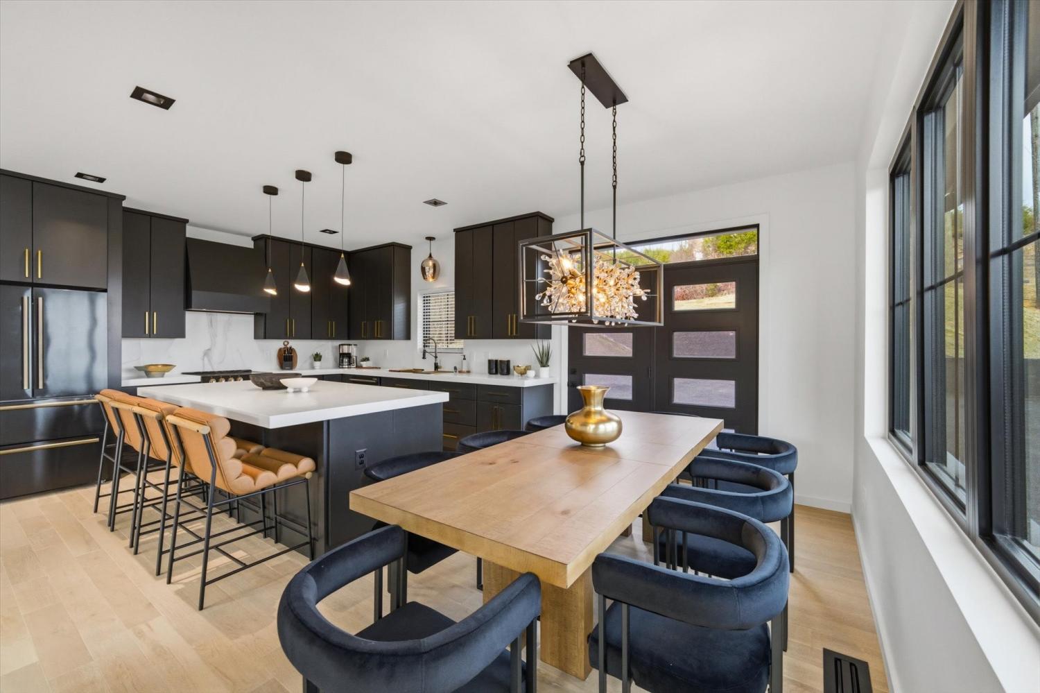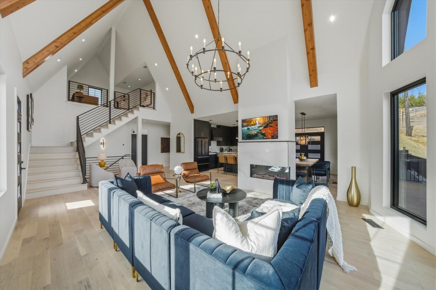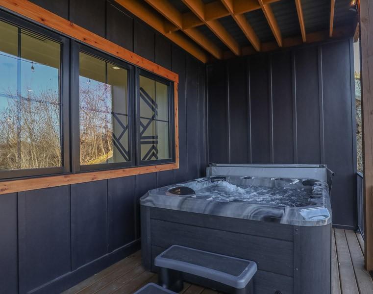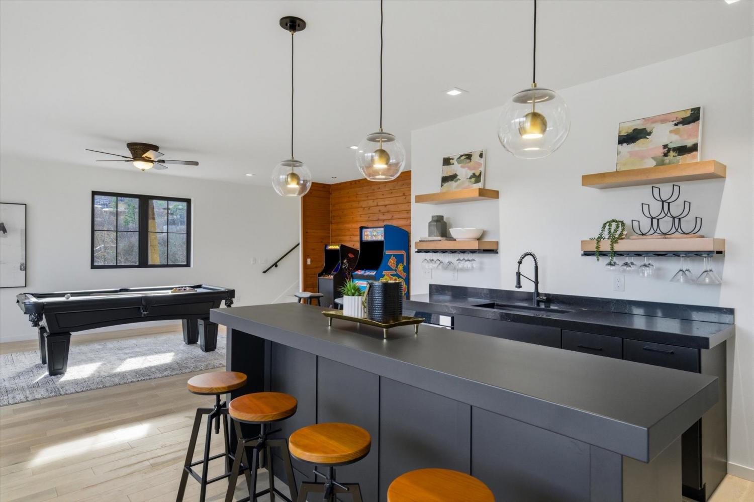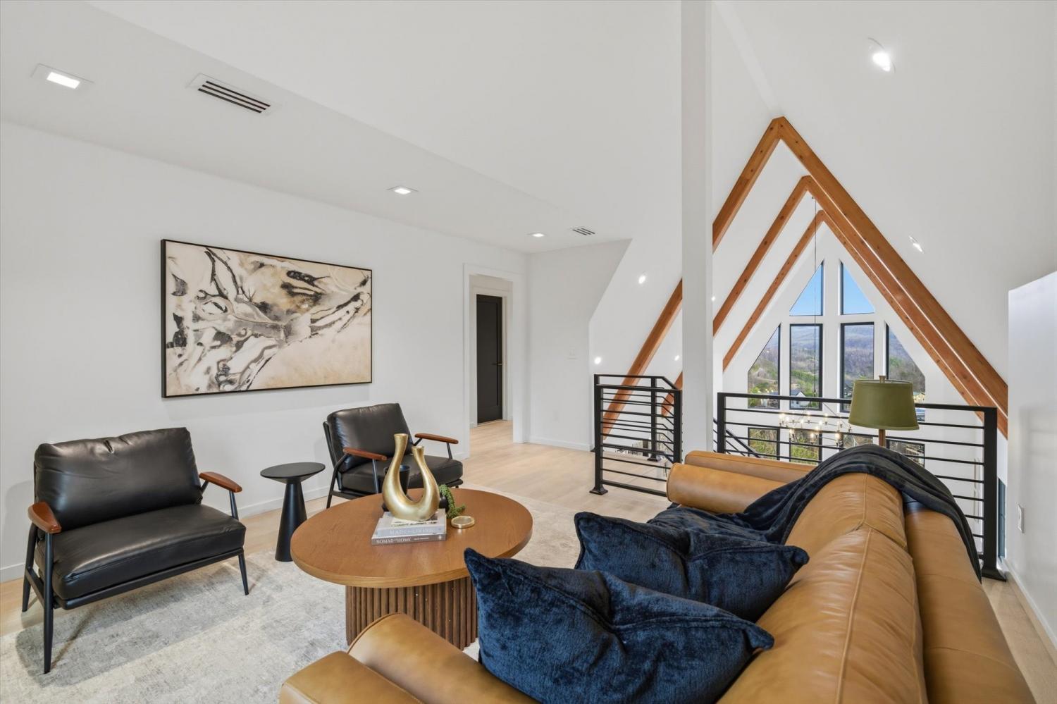 NEW 2026 Construction! Welcome to 550 Greenbriar Lane, a custom-built luxury modern mountain home in the highly sought-after Chalet Village of Gatlinburg, TN. This stunning 3-level, 3,757 sq ft residence offers year-round, unobstructed mountain views and exceptional versatility as a primary residence, second home, or short-term rental investment. The thoughtfully designed layout includes 4 bedrooms and 3.5 baths, an impressive 30-ft main-level cathedral ceiling with rustic beams, and 9-ft ceilings on all levels. High-end finishes include solid hardwood floors, marble and tile accents, quartz countertops, and custom cabinetry throughout. Designed for entertaining and relaxation, the home features an 8-seat private theater, a spacious entertainment room with arcade station, pool table, and mini kitchen/bar area. Outdoor living shines with expansive composite decking, a large hot tub, a rustic fire pit with weatherproof seating, and panoramic mountain views. A no-step entry from the parking area enhances accessibility. Sold *fully furnished, this home is truly *move-in ready or *STR-ready. Ideally located just minutes from downtown Gatlinburg, Pigeon Forge, Ober Mountain, and the entrance to Great Smoky Mountains National Park, offering the perfect blend of luxury, location, and mountain living. Chalet Village HOA Amenities include access to *three clubhouses with outdoor pools and two tennis courts (info sourced from www.ChaletVillage.com). *One-year builder’s warranty included. *The Certificate of Occupancy states a 12-person load capacity.