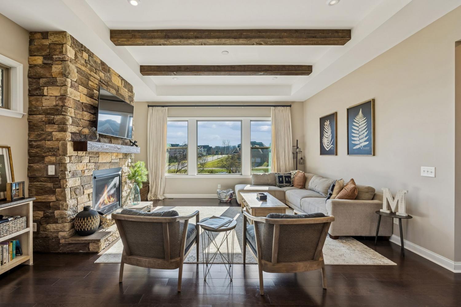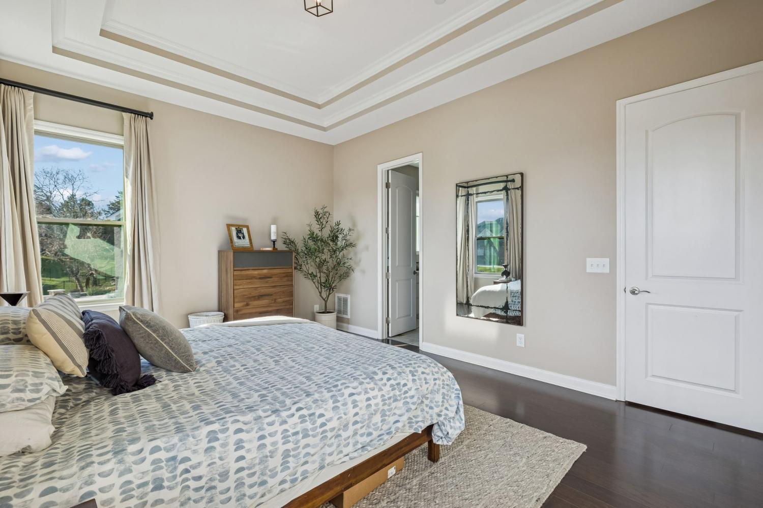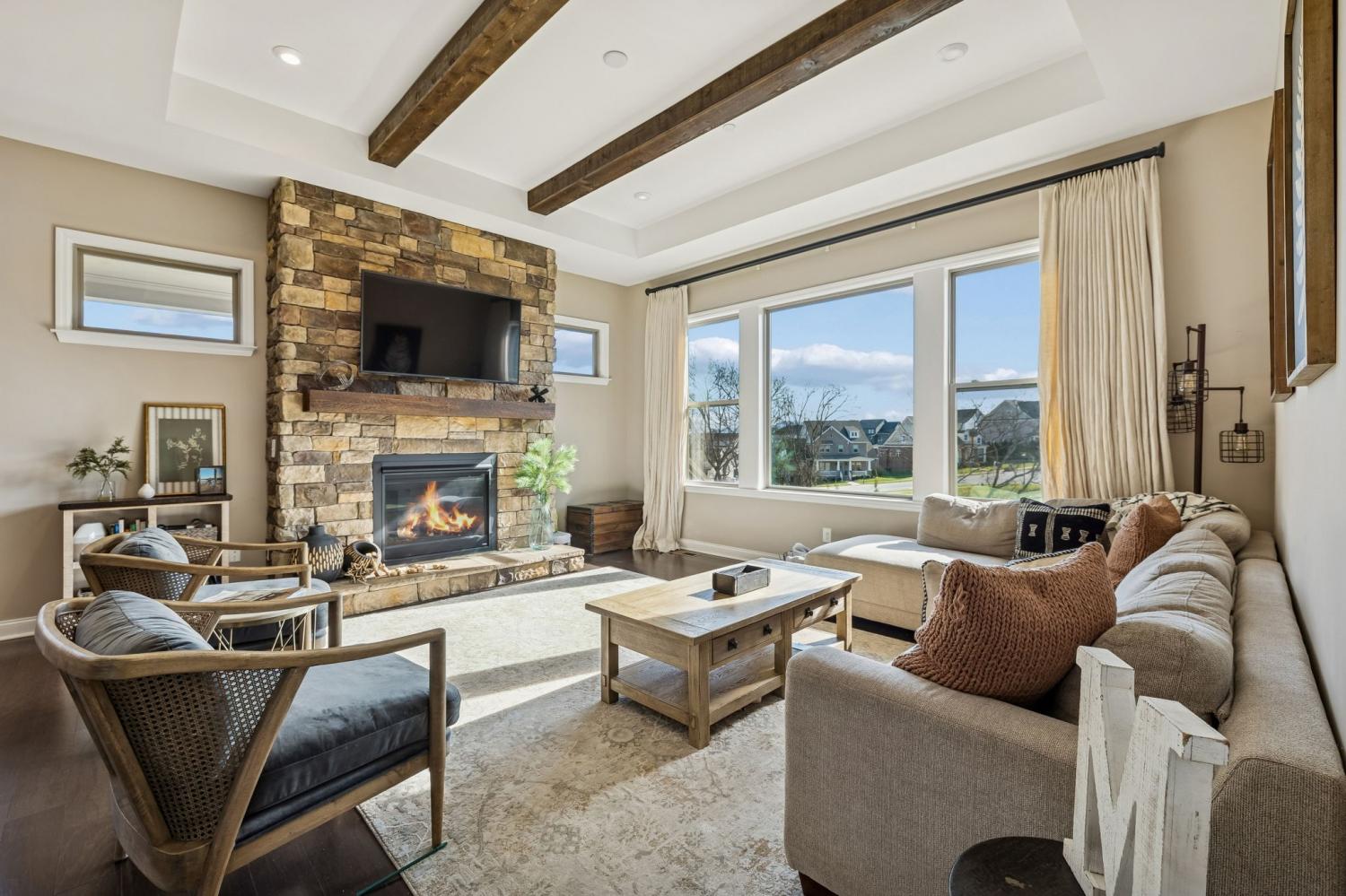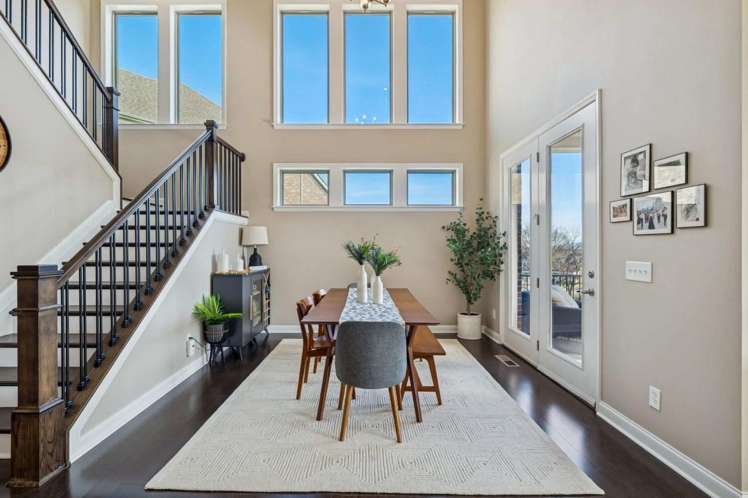 Located at the back of a quiet cul-de-sac in the desirable Scales Farmstead community, this beautifully maintained Drees Home offers an exceptional blend of comfort, style, and setting. Situated in Williamson County and zoned for highly regarded schools, the home features a bright, open floor plan with soaring ceilings that create an airy, inviting atmosphere throughout. The main living area is anchored by a stunning stone fireplace and highlighted by a dramatic oversized window showcasing peaceful views. The dining room opens to the second level, creating an impressive sense of scale ideal for both everyday living and entertaining. Enjoy tranquil sunrise views from the dining room and patio, while the main-level primary suite offers exceptional privacy as the home backs to trees and a neighborhood park—easily accessible with a walk right from your backyard. Beyond the home, Scales Farmstead offers a true sense of community with a resort-style pool and clubhouse, perfect for relaxing summer days and hosting or attending neighborhood events, social gatherings, and celebrations via golf cart. Walking trails, green spaces, and amenities are thoughtfully designed to encourage an active, connected lifestyle. Ideally located, the home provides easy access to Franklin and is just minutes from Publix Village Green in Nolensville, with the upcoming Nolensville Town Square soon to add even more dining, shopping, and vibrant community gathering spaces nearby. Golf cart negotiable.