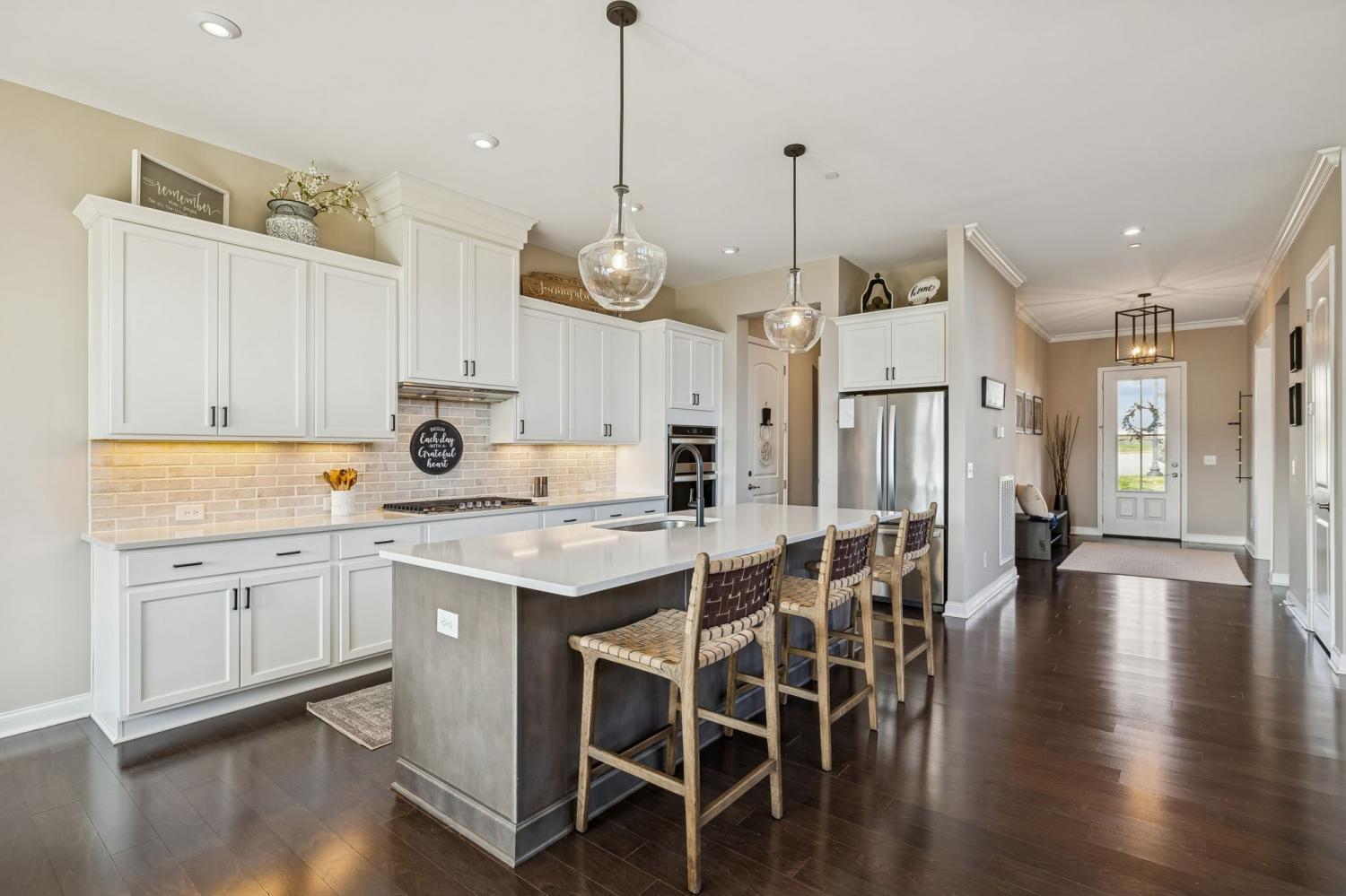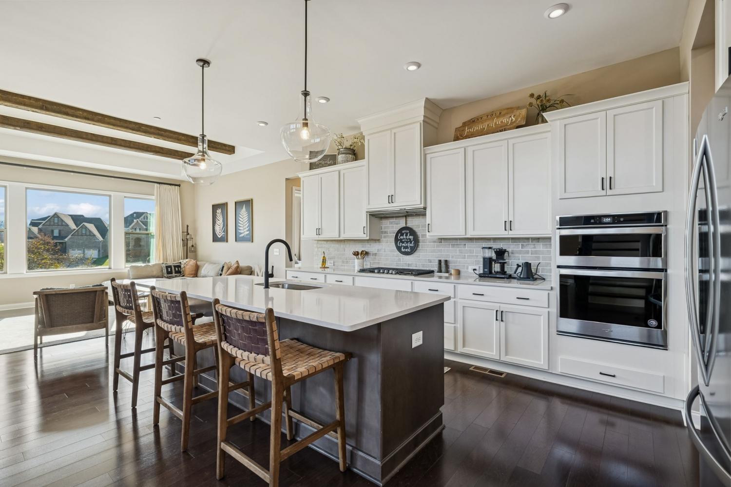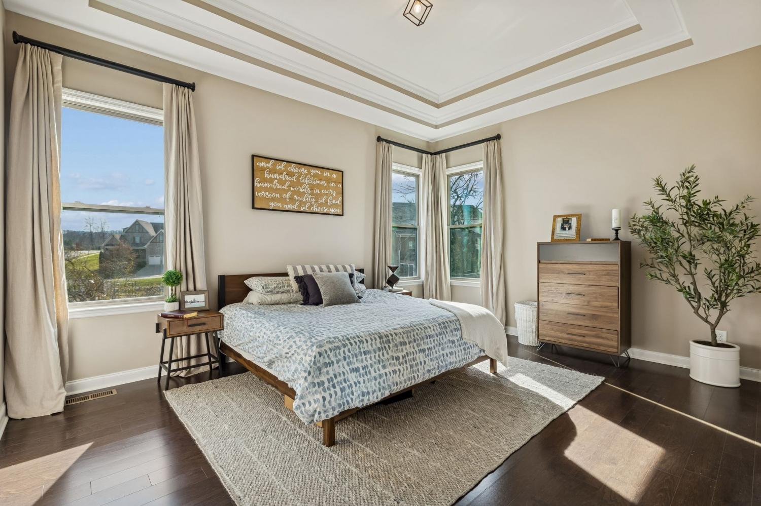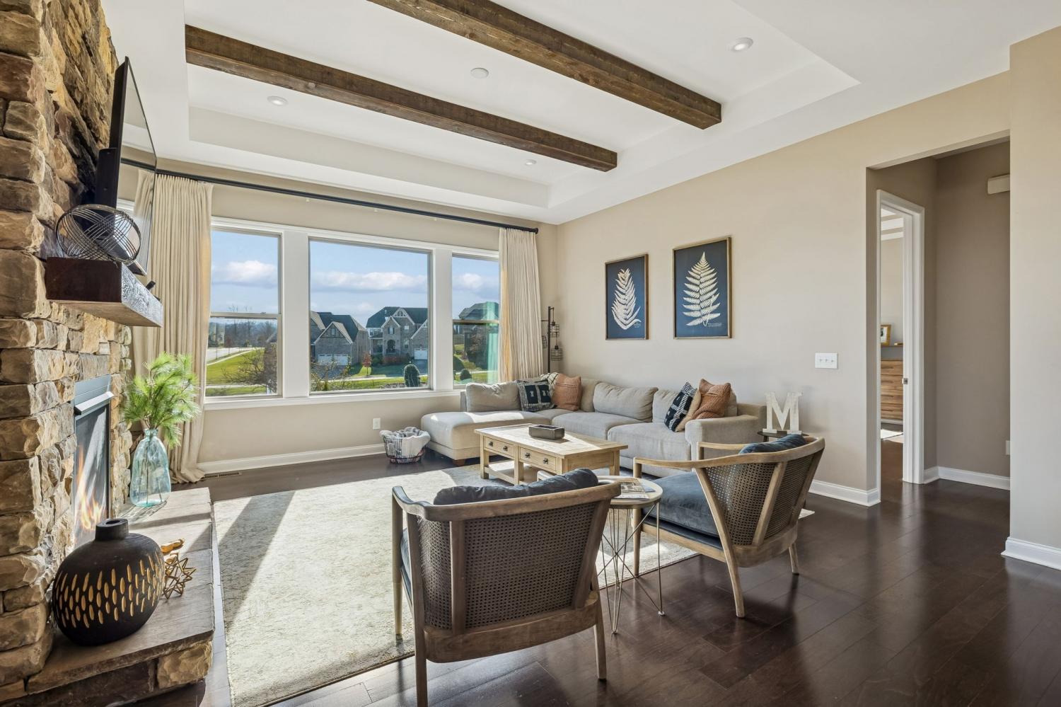 Located at the back of a quiet cul-de-sac in the desirable Scales Farmstead community, this beautifully maintained Drees Home offers an exceptional blend of comfort, style, and setting. Situated in Williamson County and zoned for highly regarded schools, the home features a bright, open floor plan with soaring ceilings that create an airy, inviting atmosphere throughout. The main living area is anchored by a stunning stone fireplace and highlighted by a dramatic oversized window showcasing peaceful views. The dining room opens to the second level, creating an impressive sense of scale ideal for both everyday living and entertaining. Enjoy tranquil sunrise views from the dining room and patio, while the main-level primary suite offers exceptional privacy as the home backs to trees and a neighborhood park—easily accessible with a walk right from your backyard. Beyond the home, Scales Farmstead offers a true sense of community with a resort-style pool and clubhouse, perfect for relaxing summer days and hosting or attending neighborhood events, social gatherings, and celebrations via golf cart. Walking trails, green spaces, and amenities are thoughtfully designed to encourage an active, connected lifestyle. Ideally located, the home provides easy access to Franklin and is just minutes from Publix Village Green in Nolensville, with the upcoming Nolensville Town Square soon to add even more dining, shopping, and vibrant community gathering spaces nearby. Golf cart negotiable.