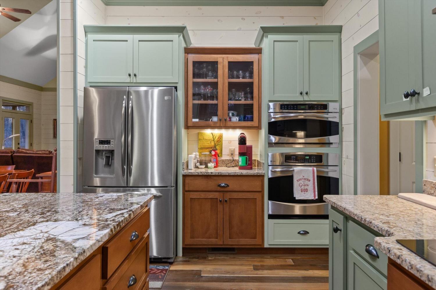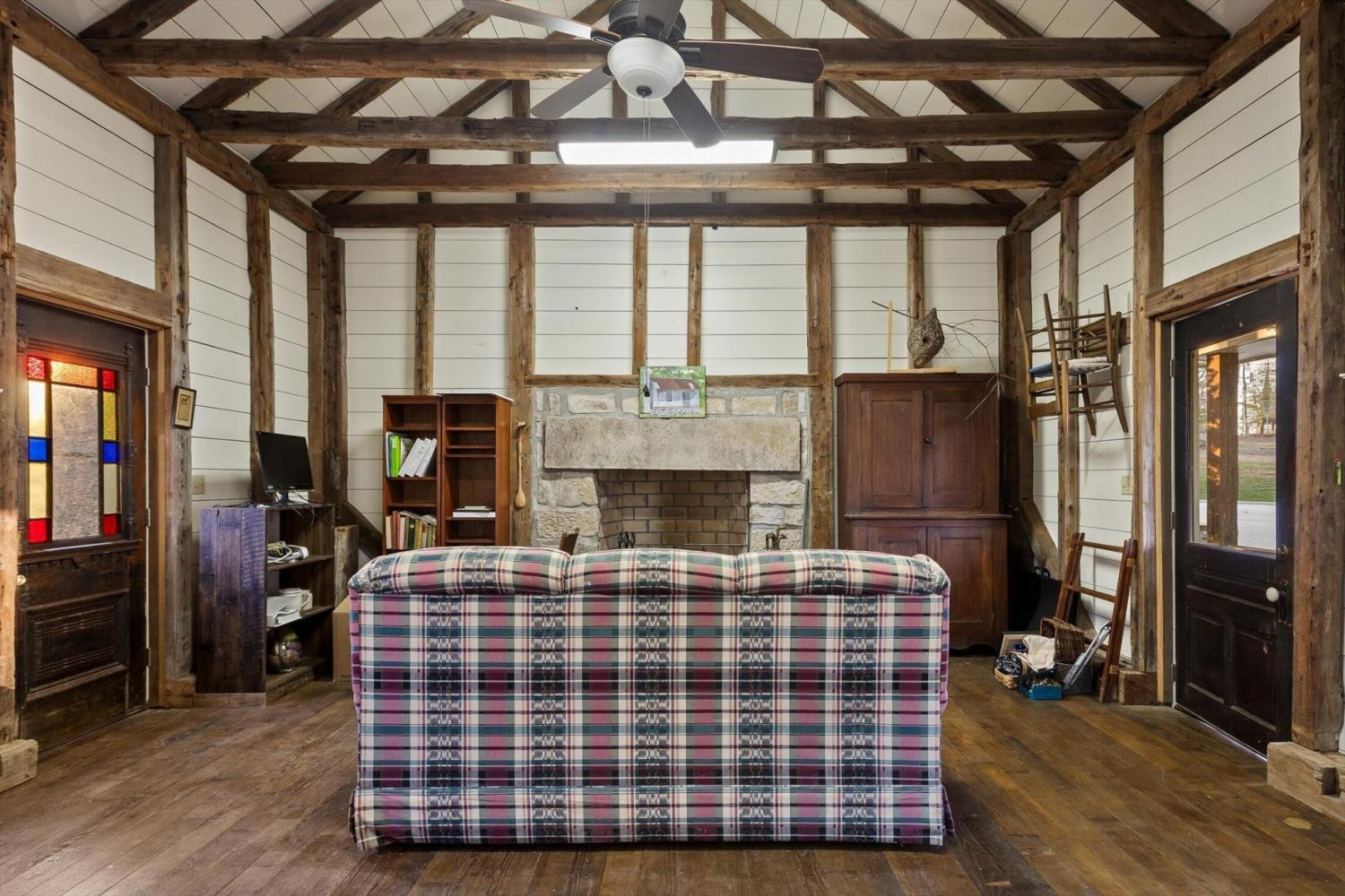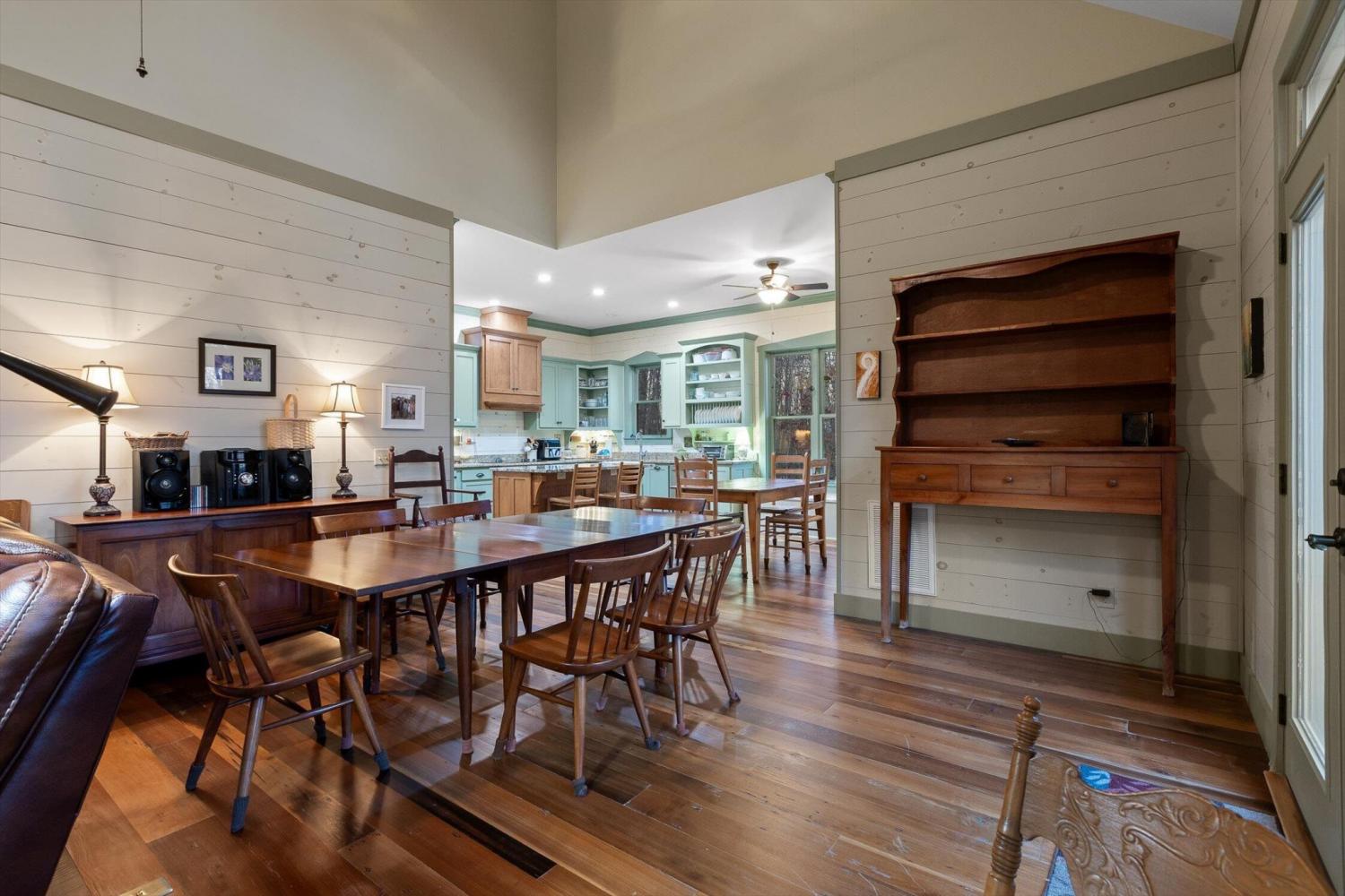 Nestled in nature's serenity, this breathtaking estate blends elegance and tranquility on four secluded acres. The stunning main home features soaring vaulted ceilings, expansive double windows, and doors that open to a sprawling back deck—blurring the lines between indoor comfort and outdoor splendor. Step through grand double doors into a refined sitting room on one side and a bedroom suite on the other, leading seamlessly into a sunlit living area. A majestic stone fireplace stretches from floor to ceiling, creating a warm focal point, while the screened-in porch offers a peaceful retreat overlooking the mountainous backyard and adjacent deck. The kitchen and dining area boast custom cabinetry, a large island, and high-end appliances, including a wall-mounted oven and warming drawer. Off the dining area, a charming sunroom invites you to bask in natural light year-round, offering a tranquil space for coffee, reading, or quiet reflection. The primary suite is a private sanctuary with high ceilings, screened-in porch access, and an ensuite bath featuring a soaking tub framed by stained glass, a spacious double shower, dual vanities, and a walk-in closet. Two additional bedrooms each offer ensuite baths, ensuring comfort and privacy, while the upstairs bonus room provides flexible space for a media room, playroom, or game room. A main-level laundry room adds to the home's functionality. Enhancing the estate's charm, the separate guest cabin features vaulted beamed ceilings, a stone fireplace, and a covered front porch—an inviting retreat for guests. This mountain sanctuary offers luxury, privacy, and breathtaking surroundings—ready to be called home!