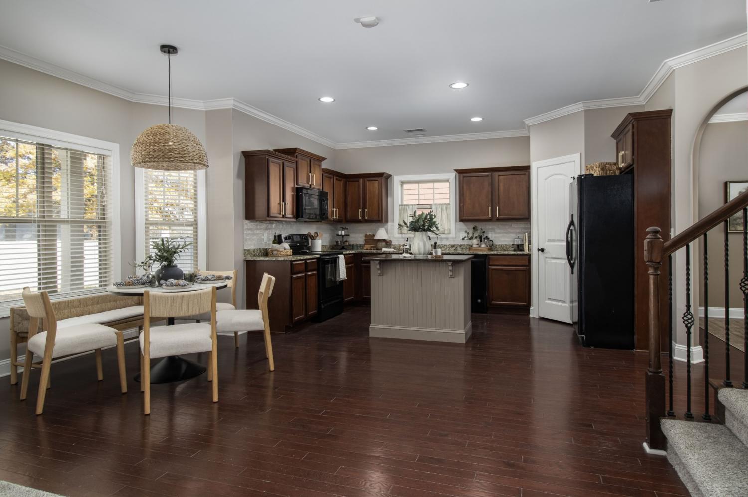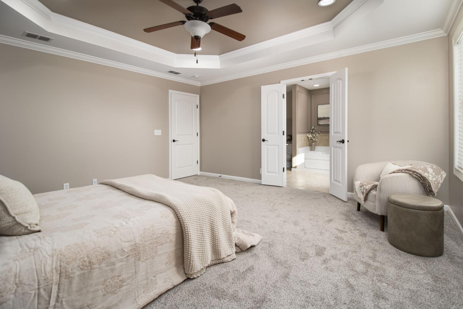 Step inside to an inviting open-concept kitchen, living, and dining area on the main floor—perfect for everyday living and entertaining. Full of character with archways, updated lighting, and lots of custom and crown moulding. Upstairs, you’ll find 4 spacious bedrooms, one of which is large and makes an amazing bonus room! Do not miss the large primary bedroom with fabulous jetted garden tub and separate shower with a true walk-in closet. This layout offers plenty of flexibility for guests, a home office, or a playroom. Enjoy the outdoors with a fully fenced yard and a massive covered patio, ideal for relaxing, grilling, or hosting gatherings. The fully fenced back yard with large patio is ready for all your celebrations and relaxing nights. Something that makes this home unique compared to others is that right behind your back fence gate, you can walk 5 steps directly into the community pool area, giving you the feel of having a pool, playground, and extra parking right in your “extended” backyard. The home is truly move-in ready with brand-new carpet, fresh paint, updated lighting, and a stylish new backsplash—all just installed. Ask about our available lender credit to help reduce your closing costs!
