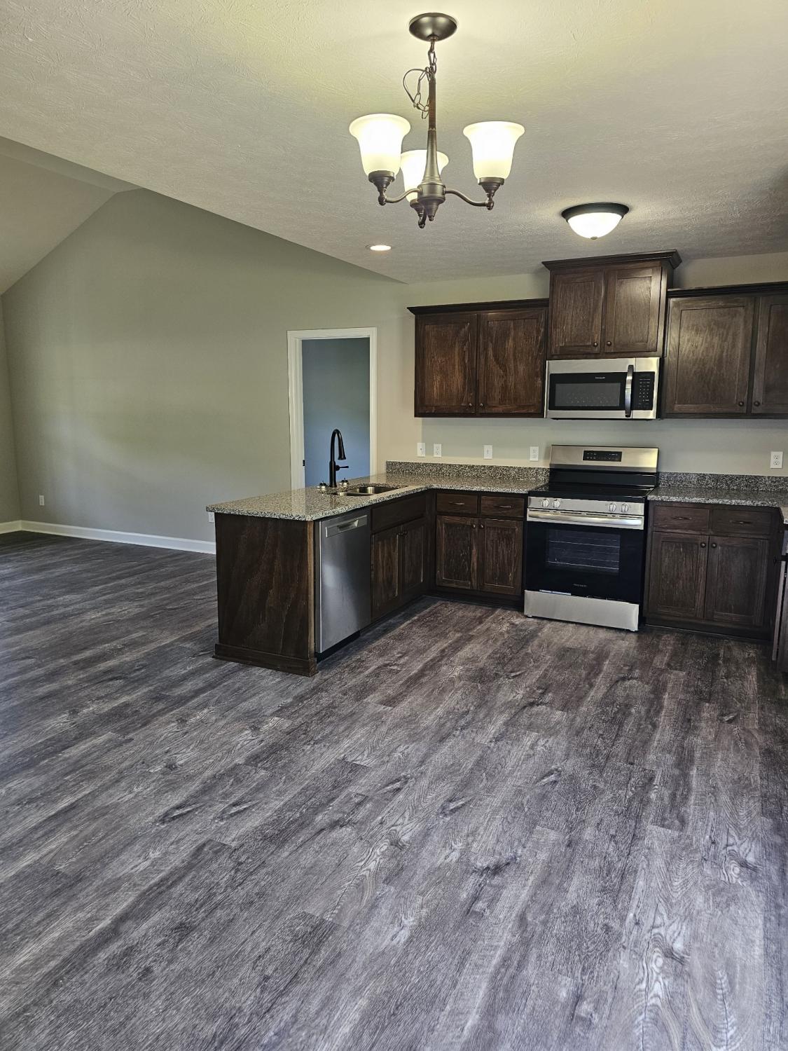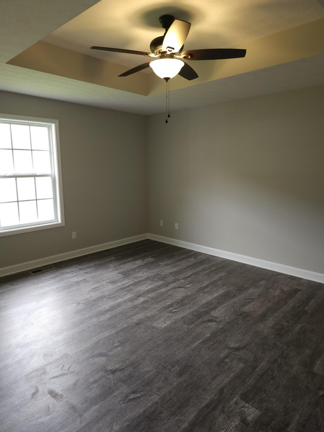 Welcome home. Enjoy the evenings on the covered porch of your all brick home. Relax and enjoy family time in the open floor plan where everyone is included in activities. Kitchen is well appointed with custom cabinetry, granite and breakfast bar. Sit around and help with meals, homework, crafts. Have a spill? No problem. Water resilient laminate makes clean up a breeze. Want to relax. Enjoy your spacious owner's suite with tray ceiling, private bath and large walk-in closet. Split bedroom floor plan for privacy. Nice large lot for your enjoyment. With creek in the back. Perfect for cooling off in the hot summer months and exploring.