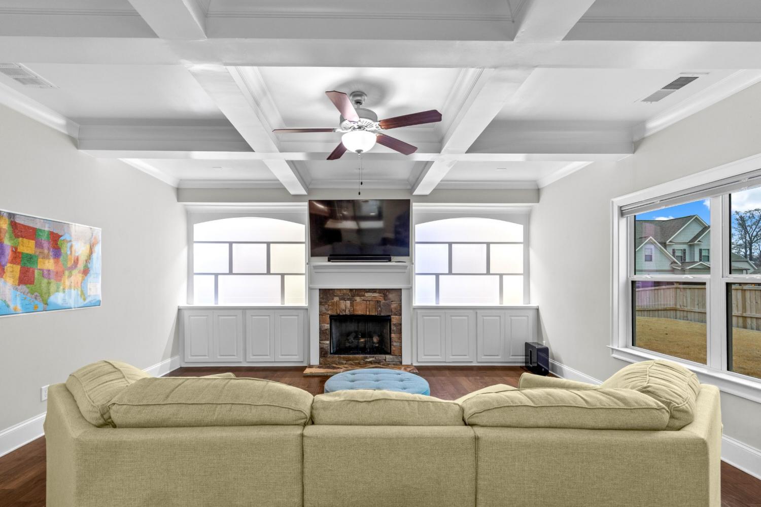 Situated on a desirable corner lot, 1125 Little Sorrel Rd. offers not only a beautifully designed home but also an exceptional setting within a walkable neighborhood. Sidewalks throughout the community make it easy to enjoy morning strolls, evening walks, or time outdoors with neighbors, adding to the welcoming, connected feel of the area. Tucked just off Hixson Pike, the location provides the perfect balance of neighborhood charm and everyday convenience. Inside, this thoughtfully designed 3-bedroom, 2-bath home features an open floorplan centered around a striking stone fireplace, with beamed ceilings adding warmth and character throughout the main living spaces. The kitchen is both functional and inviting with a walk-in pantry and seamless flow to the living and dining areas, ideal for entertaining and daily living. A versatile bonus room on the main level serves perfectly as a playroom or office, with an additional bonus space offering even more flexibility. The primary suite is a true retreat with coffered ceilings and a spacious en-suite bathroom featuring a double vanity, a large walk-in closet, and a walk-in shower with a built-in seat. A mudroom with built-in shelving adds practical organization, while two garages—one two-car and one one-car—provide ample space for vehicles, storage, or hobbies. With close proximity to restaurants, shopping, and everyday essentials, this home combines comfort, style, and an unbeatable location in one complete package.