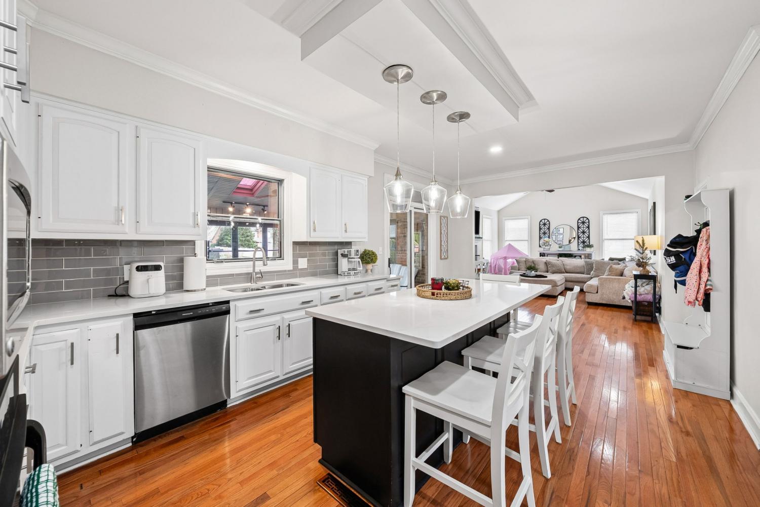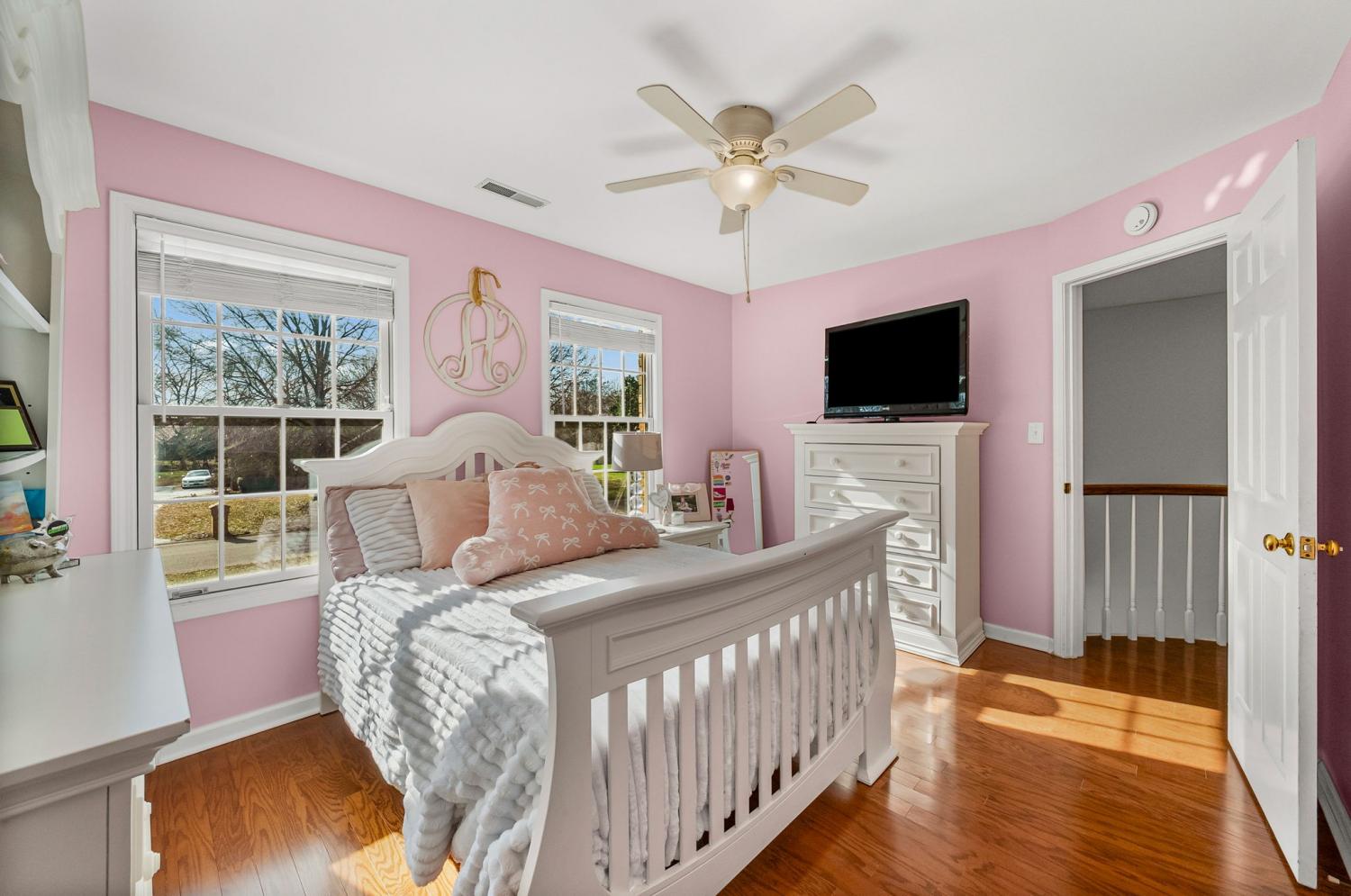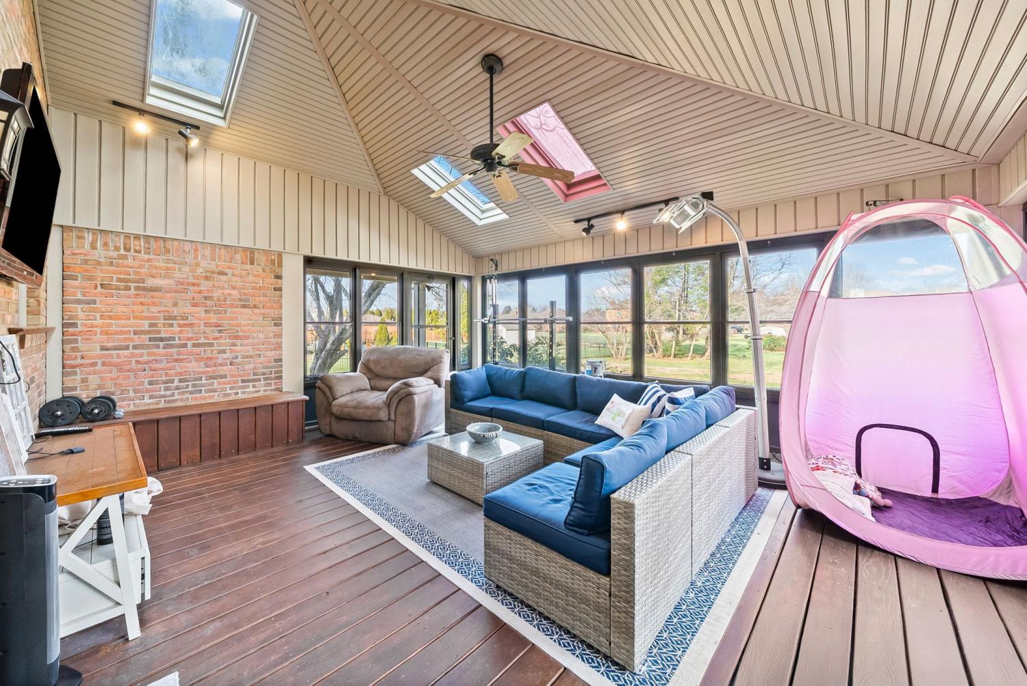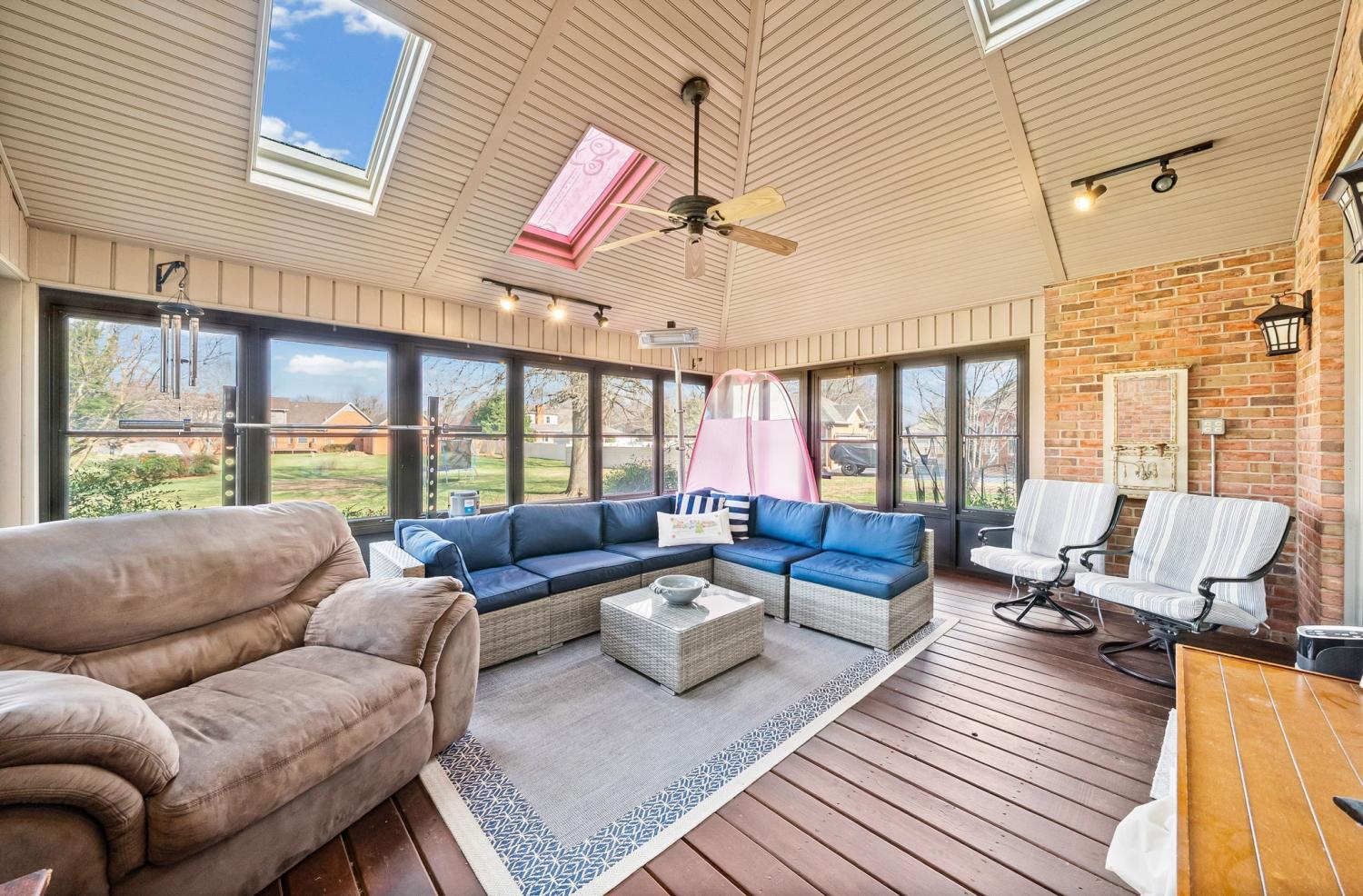Beautiful two-story brick home in Cox Mill Estates with hardwood floors throughout, four bedrooms, and two bathrooms. Highlights include a generously sized kitchen, cozy fireplace, soaking tub, laundry room with sink, two skylights that fill the home with natural light, and a screened-in patio perfect for relaxing.