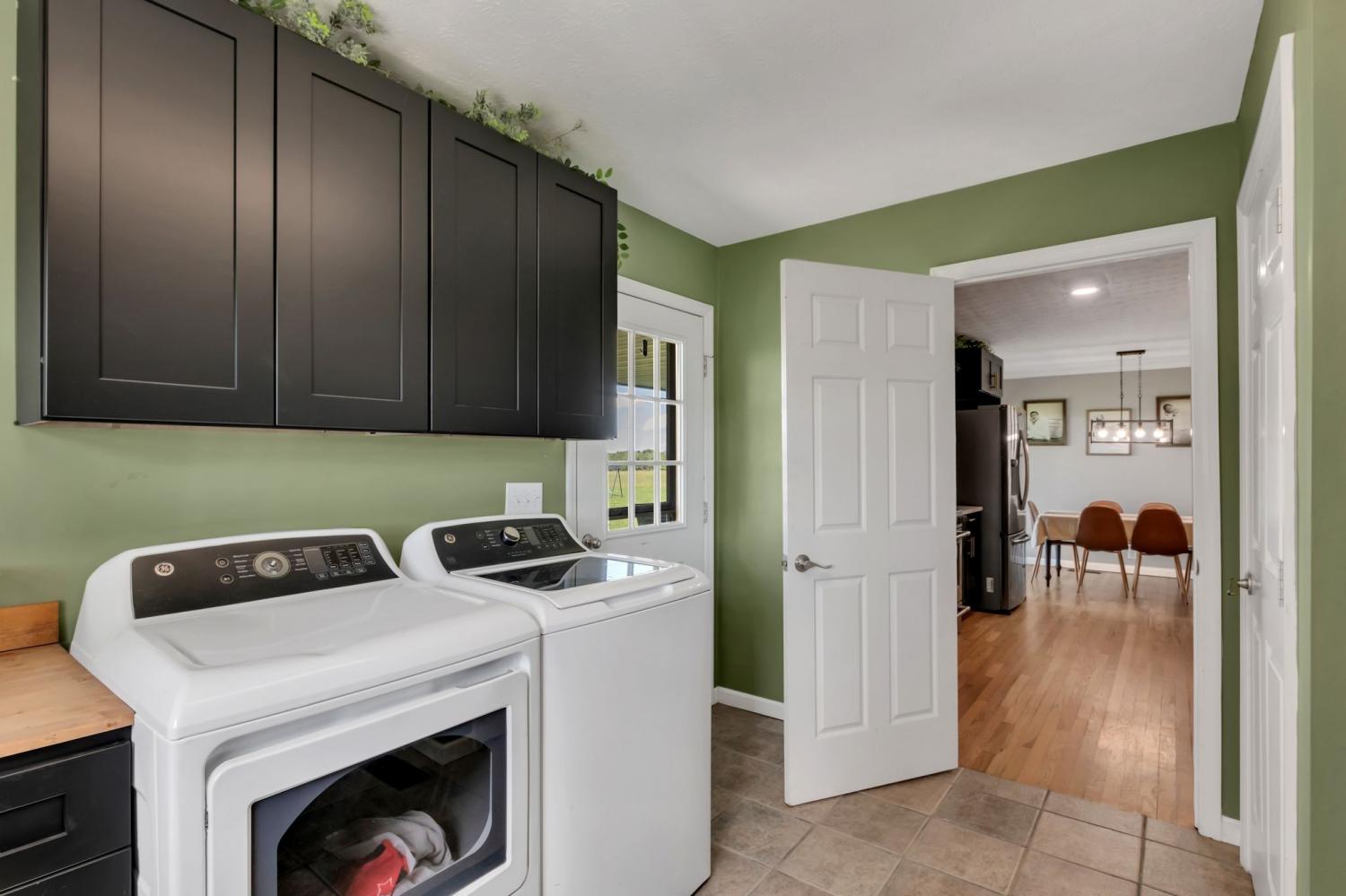 Welcome to 1800 Old Highway 52, a slice of peaceful country life! This remodeled home sits on 2.25 acres with beautiful views and includes a 24x60 shop and 40x50 barn! Inside, the living room features custom shiplap accents, a built-in electric fireplace and flows into the kitchen with gorgeous wooden beams! The kitchen features all-new cabinetry, granite countertops, a tile backsplash, and a large island with extra seating—perfect for entertaining! The large laundry room is elevated with custom cabinetry, a sink, and has exterior door access if you want to use it as a mudroom too! The main-floor primary suite offers a spacious walk-in closet, a second built-in electric fireplace with shiplap detail, and a stunning en-suite bath complete with rich paint tones and a spa-like shower featuring a waterfall showerhead. On the second level are two spacious bedrooms, a full bathroom and a large storage closet with access to attic space for even more storage. The newer roof (May 2025) adds peace of mind and all appliances remain with the property! Step out back and you’ll quickly see why this property is something special. The covered back porch offers the kind of views you’ll never get tired of—rolling pastures and peaceful countryside! Plus, with a 40x50 barn and a 24x60 shop on the property, you’ll have all the space you need for hobbies and/or equipment! Located just 10 minutes to the Lafayette town square! Schedule your showing today!