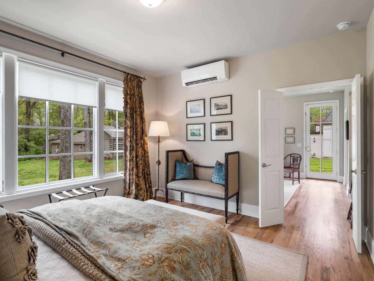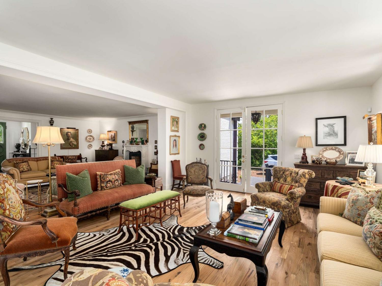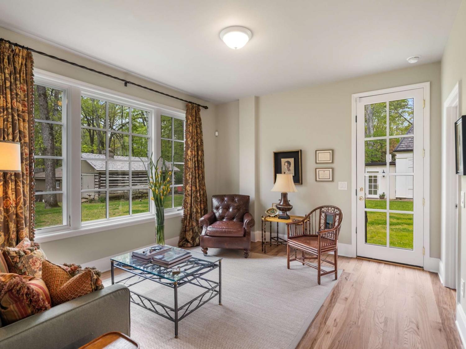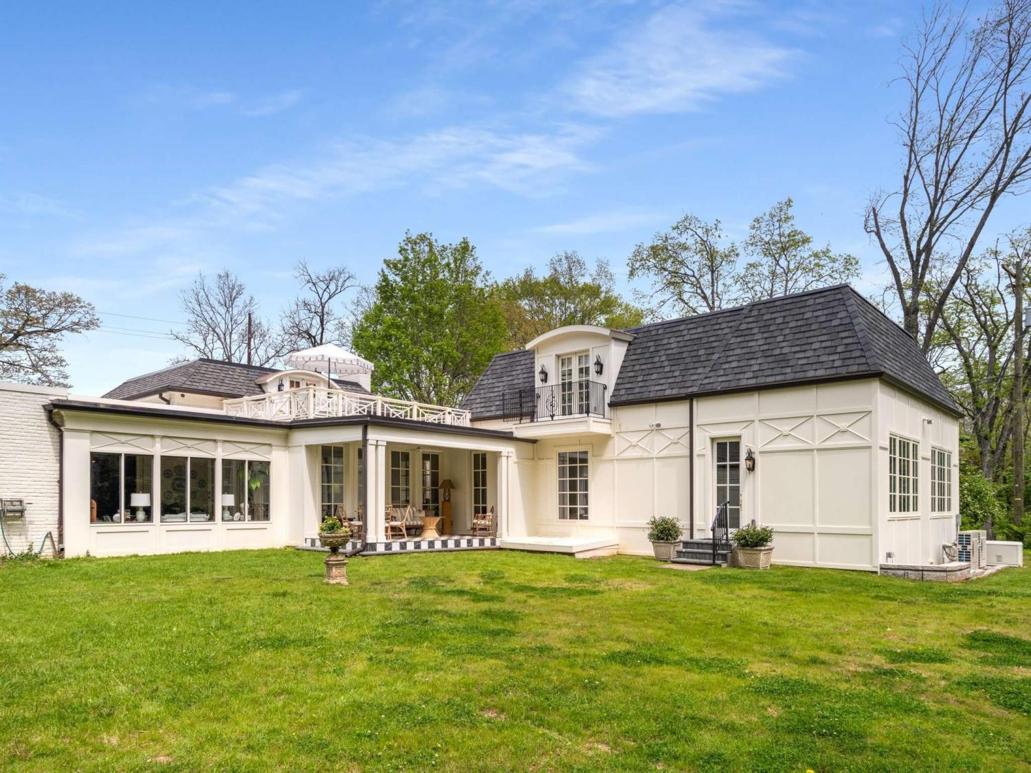 Welcome to this exquisite French Regency residence—truly one of a kind. Offering a rare blend of serene privacy and convenient city living, this home captures the essence of the Nashville dream. Step inside to an open-concept layout filled with natural light pouring through expansive windows, creating a bright and inviting atmosphere throughout. The sunken primary suite is a private retreat, featuring double French doors, direct access to a charming New Orleans-style courtyard, and a spa-like ensuite complete with double vanities, a double shower, and a luxurious jacuzzi tub. Work from home in comfort and style in the richly appointed office, showcasing paneled walls, built-in bookshelves, and a gas-burning fireplace with a custom mantel. The kitchen is a chef’s delight, equipped with stainless steel appliances, custom cabinetry, granite countertops, and a spacious island with built-in storage. Sip your morning coffee in the sunroom, where painted brick walls, classic checkered marble flooring, and sweeping views of the expansive backyard create a perfect setting. Hosting guests? The private mother-in-law suite with a separate entrance provides ideal accommodations. Creative minds will fall in love with the large, lofted custom studio workshop designed to inspire, whether for fine art, music, or other passions. The completely underground lower level, constructed with concrete and steel beams, offers the ultimate space for recreation, a home gym, or a cozy movie room. Across the courtyard, Juliet balconies connect to a three-car garage with an upstairs hobby room. And for a truly unique touch, the property includes one of the three original log cabins from the historic Belle Meade Plantation—restored with a working fireplace. Outdoors, unwind by the private koi pond and stream, surrounded by lush landscaping and timeless charm.