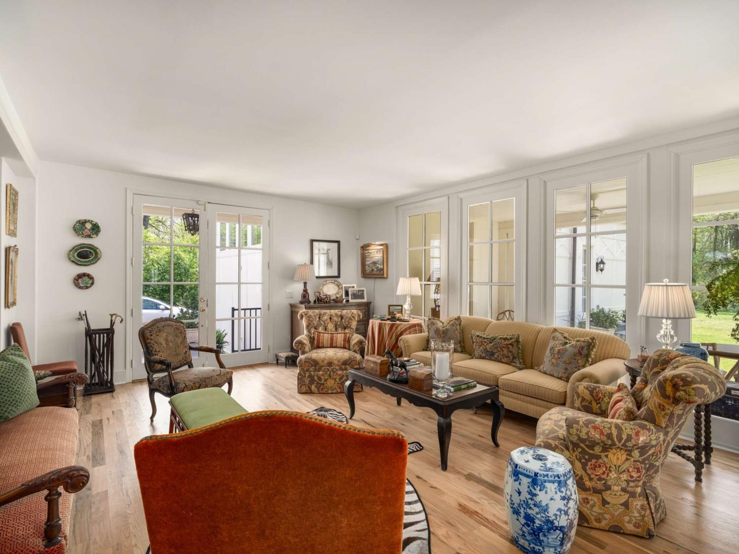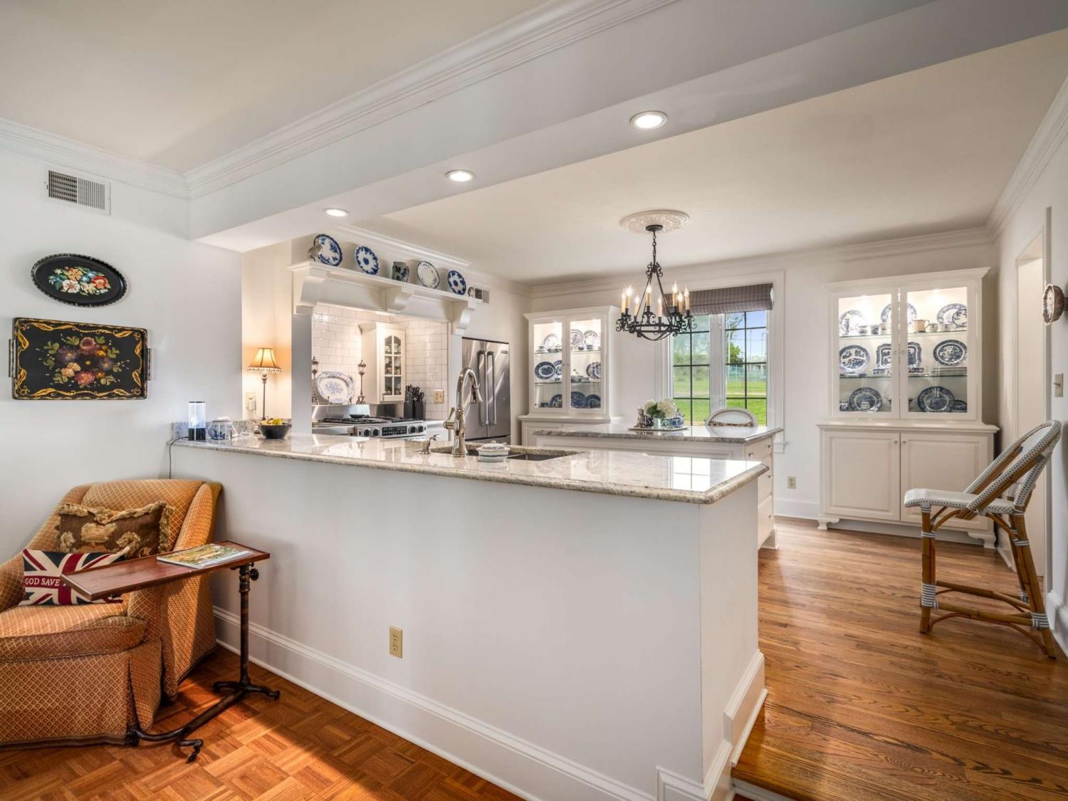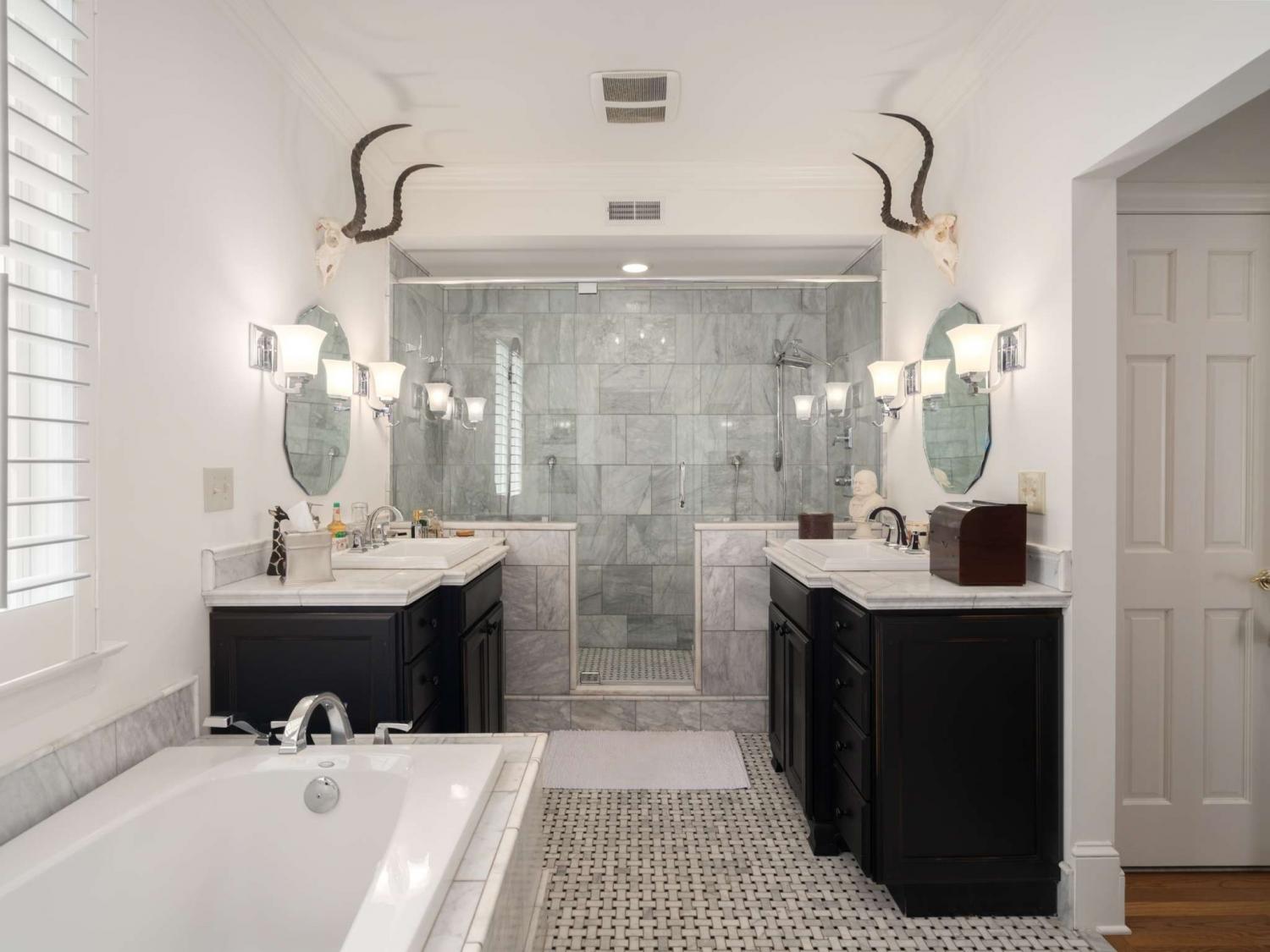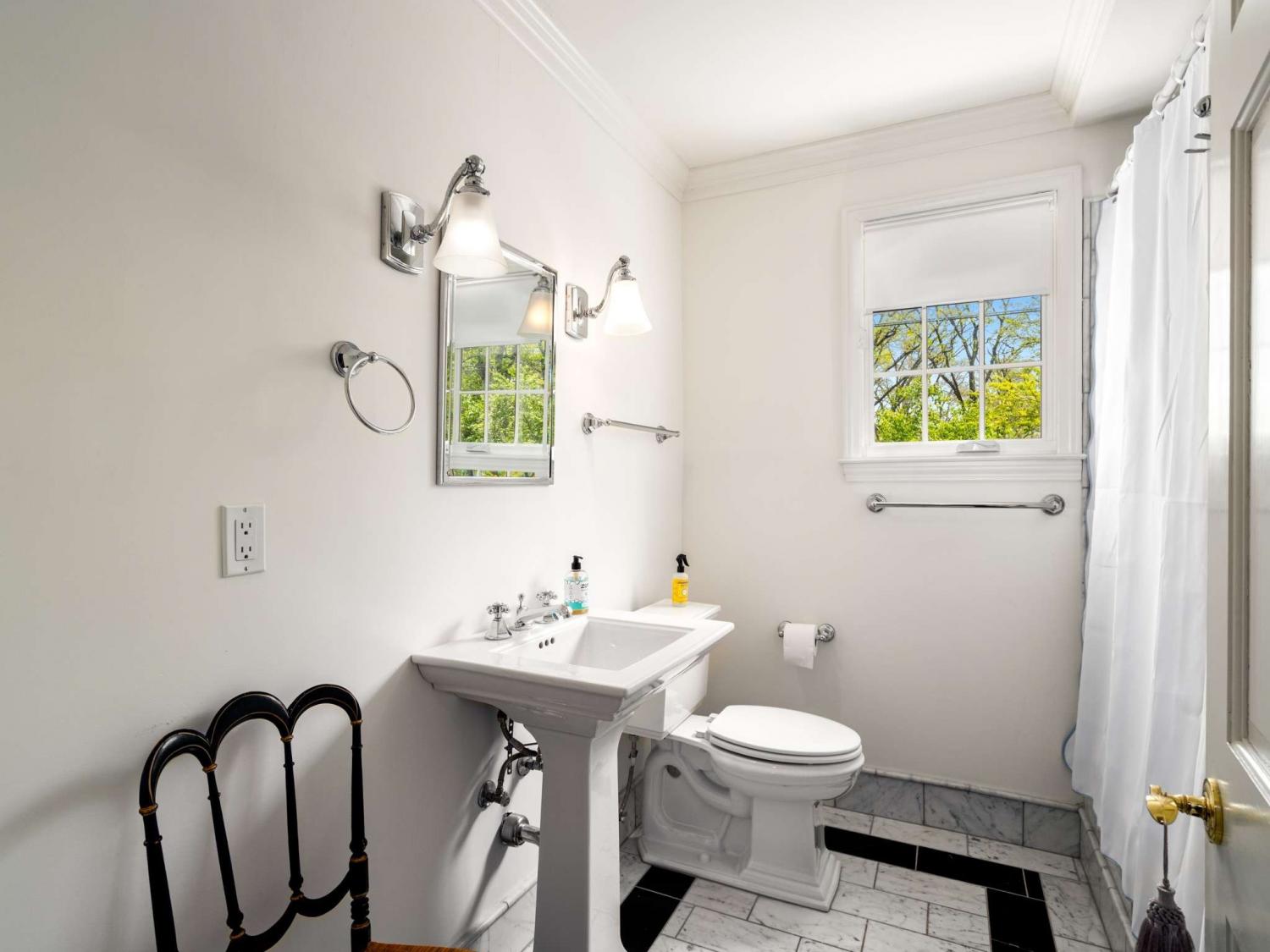 Welcome to this exquisite French Regency residence—truly one of a kind. Offering a rare blend of serene privacy and convenient city living, this home captures the essence of the Nashville dream. Step inside to an open-concept layout filled with natural light pouring through expansive windows, creating a bright and inviting atmosphere throughout. The sunken primary suite is a private retreat, featuring double French doors, direct access to a charming New Orleans-style courtyard, and a spa-like ensuite complete with double vanities, a double shower, and a luxurious jacuzzi tub. Work from home in comfort and style in the richly appointed office, showcasing paneled walls, built-in bookshelves, and a gas-burning fireplace with a custom mantel. The kitchen is a chef’s delight, equipped with stainless steel appliances, custom cabinetry, granite countertops, and a spacious island with built-in storage. Sip your morning coffee in the sunroom, where painted brick walls, classic checkered marble flooring, and sweeping views of the expansive backyard create a perfect setting. Hosting guests? The private mother-in-law suite with a separate entrance provides ideal accommodations. Creative minds will fall in love with the large, lofted custom studio workshop designed to inspire, whether for fine art, music, or other passions. The completely underground lower level, constructed with concrete and steel beams, offers the ultimate space for recreation, a home gym, or a cozy movie room. Across the courtyard, Juliet balconies connect to a three-car garage with an upstairs hobby room. And for a truly unique touch, the property includes one of the three original log cabins from the historic Belle Meade Plantation—restored with a working fireplace. Outdoors, unwind by the private koi pond and stream, surrounded by lush landscaping and timeless charm.