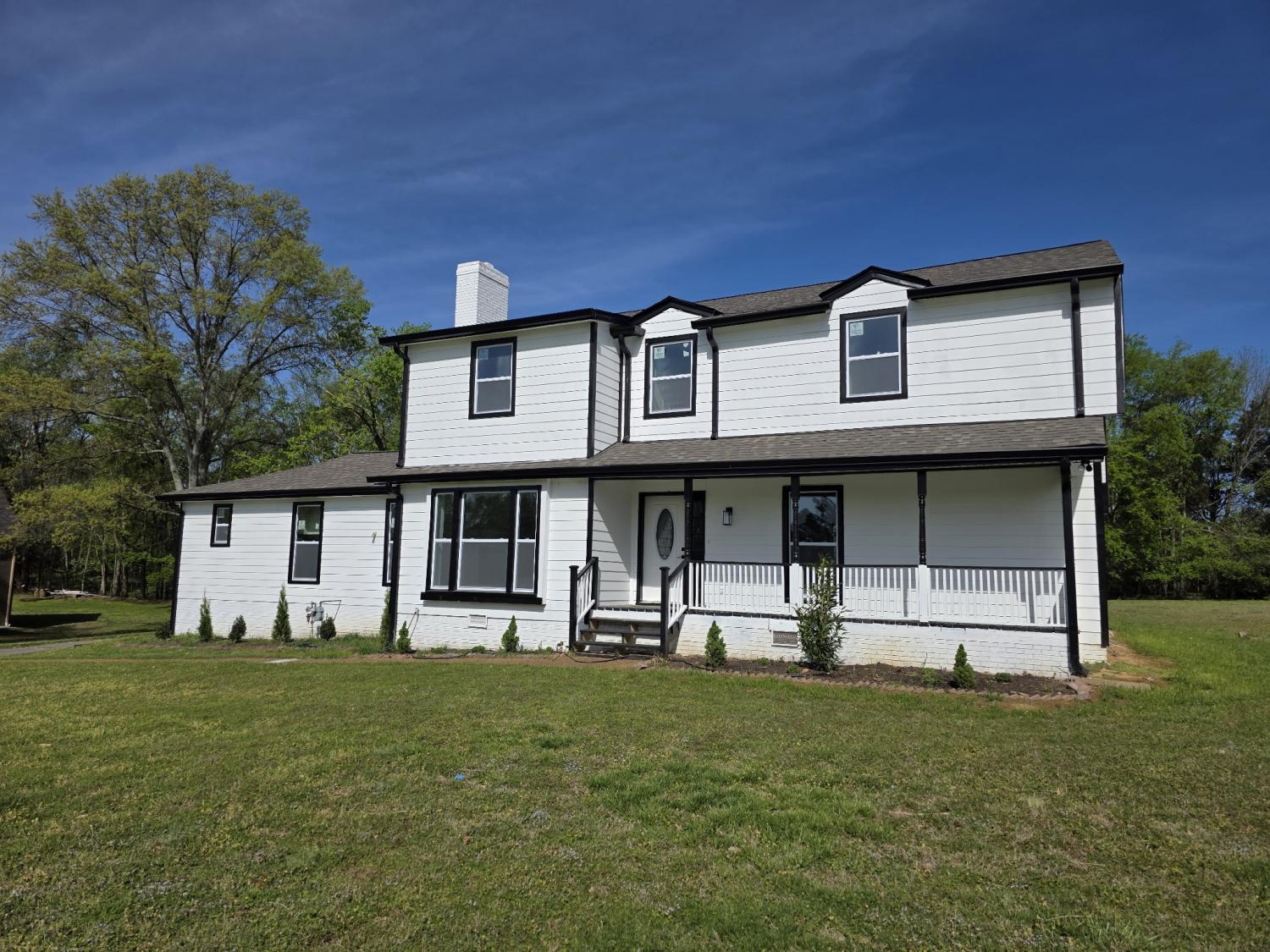 Beautiful completely renovated home in Grasslands Ranch! Double Station Camps Shools! Mid and High! Jack Anderson Elem! This good sized 4 bedroom 3.5 bath is on a gorgeous and spacious level 1 acre lot! Open Livingroom with picture window and fireplace. Downstairs also includes an entryway, office/dining room. Large eat in/breakfast nook kitchen. Fully renovated with quartz counters and white shaker cabinets and Stainless Apps. Home also has 2 primary suites. Upstairs and down. 5th bedroom could be an office (4 bedroom septic) and includes a huge garage and covered back porch. New windows, new HVAC, new Water Heater and vapor barrier in crawlspace!