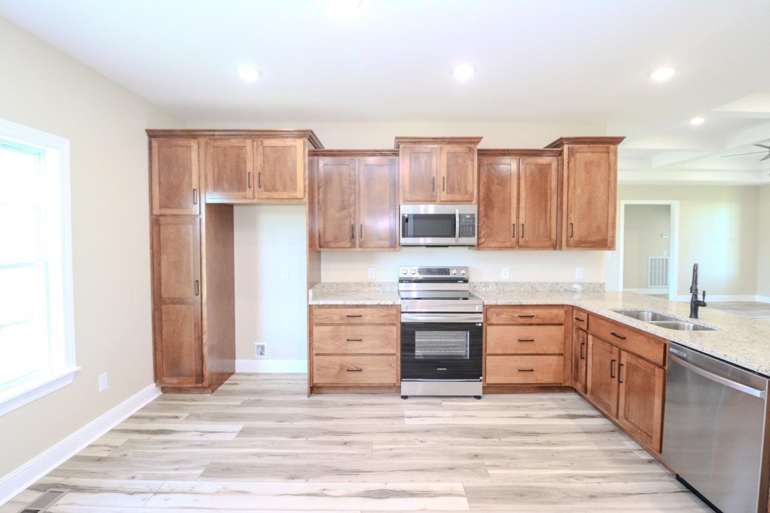 Check out this brand new construction! This beautiful smart-board and stone home sits on a choice 1.05 acre lot! Spacious and open floor plan! Take a step inside and check out the spacious living room with coffered ceiling! Take a step over to the kitchen and find lots of cabinetry, granite countertops, and brand new appliances! Peak into the primary bedroom equipped with an additional coffered ceiling, full bath with custom tile shower, double vanity with make-up tower and huge walk-in closet!! Need some fresh air? Step outside to the covered front porch or the covered back patio! Concrete driveway has been expanded for additional parking! All of this in a great location, only 30 minutes away from Gallatin and Lebanon on a large 1.05 acre lot! No HOA! High Speed Internet Available!!
