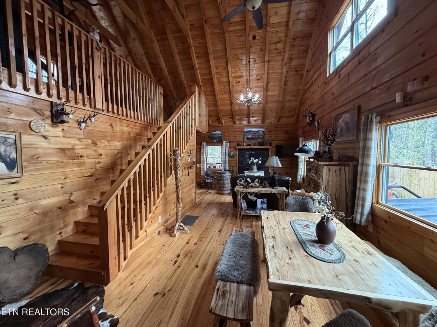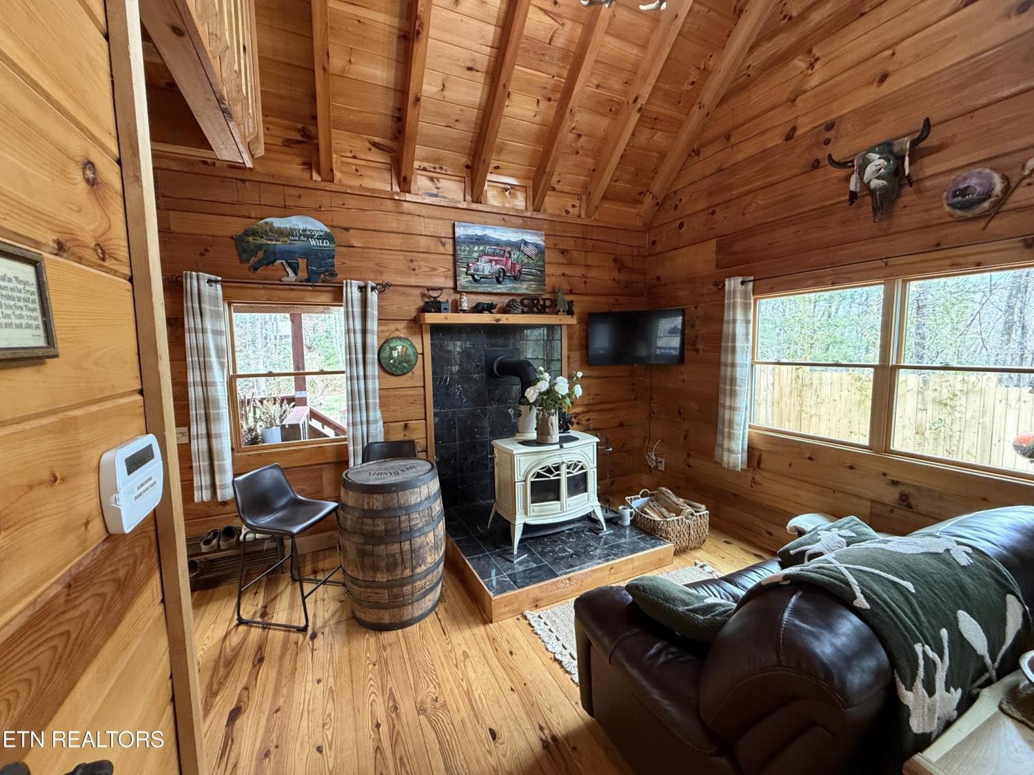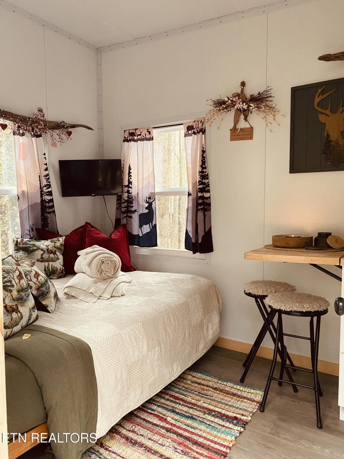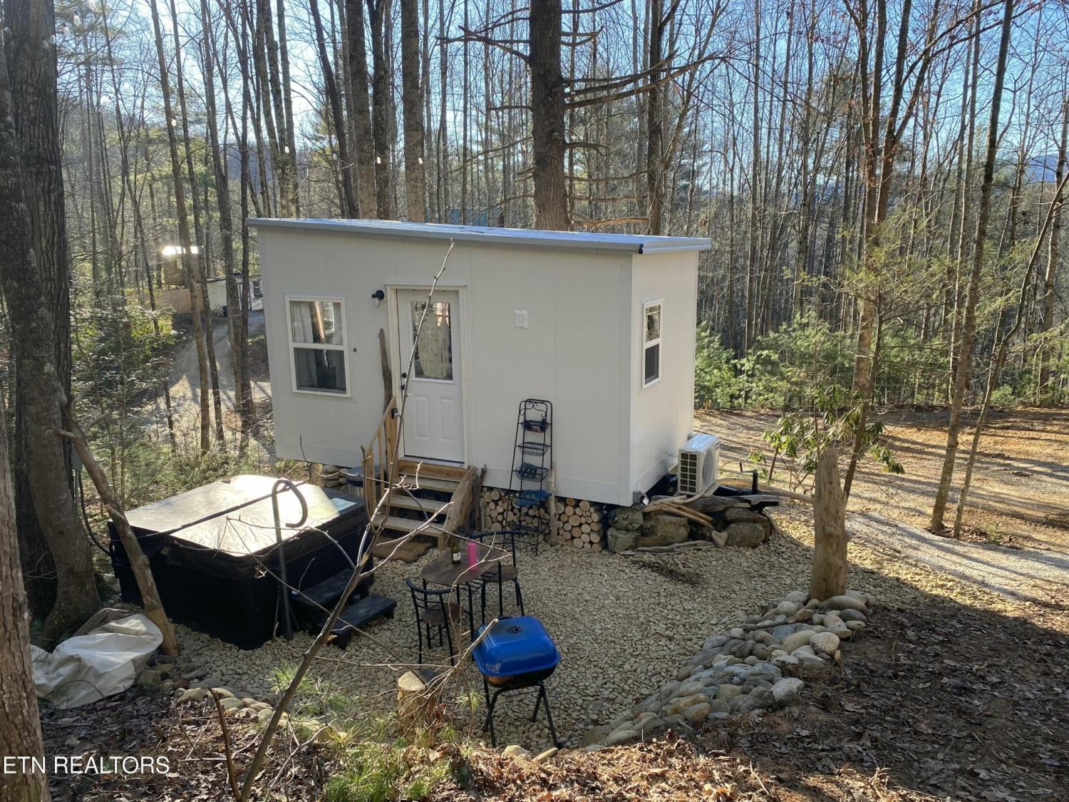 Discover your own private retreat in the small, scenic town of Beautiful Del Rio. This TRUE LOG cabin, built in 2013 well maintained recently stained and below block features lightly tinted stucco. This Cabin is nestled in the woods of the Cherokee National Forest on 3.33 unrestricted acres. The setting includes wooded privacy, established walking trails, and enough space to add another cabin or guest house. The property is currently operating as an active Airbnb, offering an immediate investment opportunity. The main cabin features 980 square feet of finished living space along with an additional 784 square feet of unfinished basement that is ready for future expansion. The interior includes one bedroom, one full bath, a large sleeping loft, hardwood floors throughout the main living areas, and a tiled walk-in shower in the full bath, which also includes a stackable washer and dryer. The living room is warmed by a wood-burning stove, and the kitchen is fully equipped with a large refrigerator, dishwasher, gas range, and microwave. Home has central heat and air using a heat pump for year-round comfort Outdoor amenities enhance the property's appeal. The main cabin includes an 8×16 heated spa pool and an outdoor sauna room, providing a relaxing retreat in any season. A jetted hot tub sits just outside the tiny home rental. Additionally, there is a small pond to sit near and enjoy the peaceful sound of the water. The land also includes a greenhouse for gardening, a carport, and a small storage shed. A separate one-room tiny home is located on the property and is on the short-term rental program rental also can be used for guest accommodations, or studio use. There is a spot for a smaller camper with a 30amp electric connection as well. Utility features include underground electric and phone service, a well producing approximately 10 gallons per minute, a one-bedroom septic system, insta-hot water, and a blue-flame gas heater located in the basement, which also has