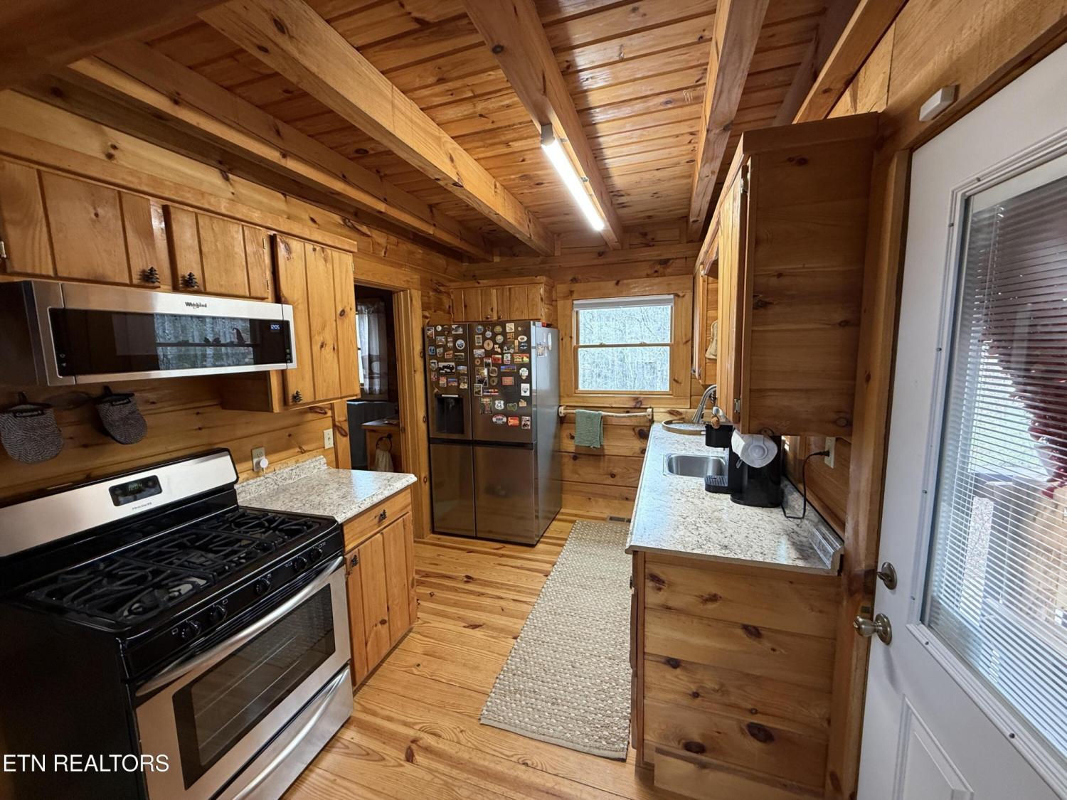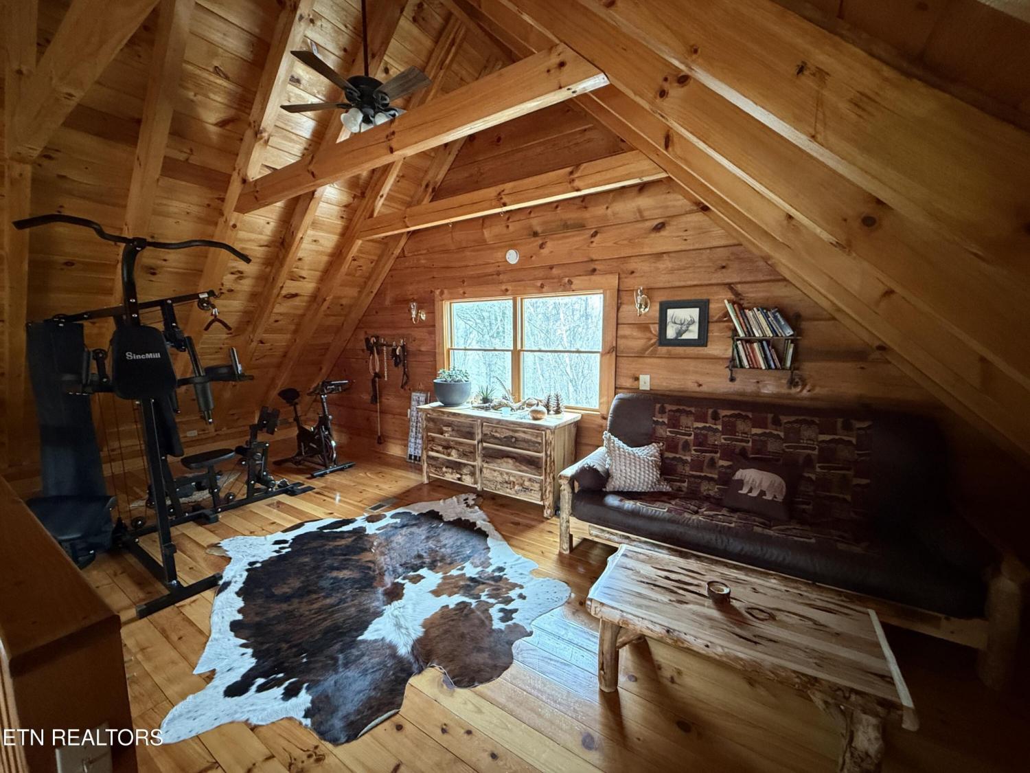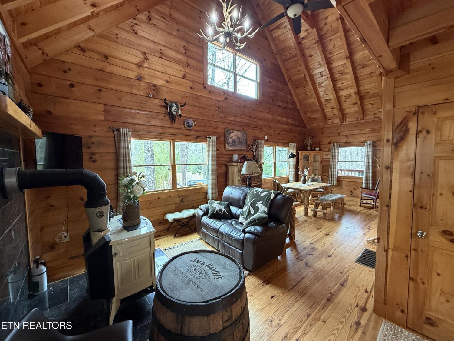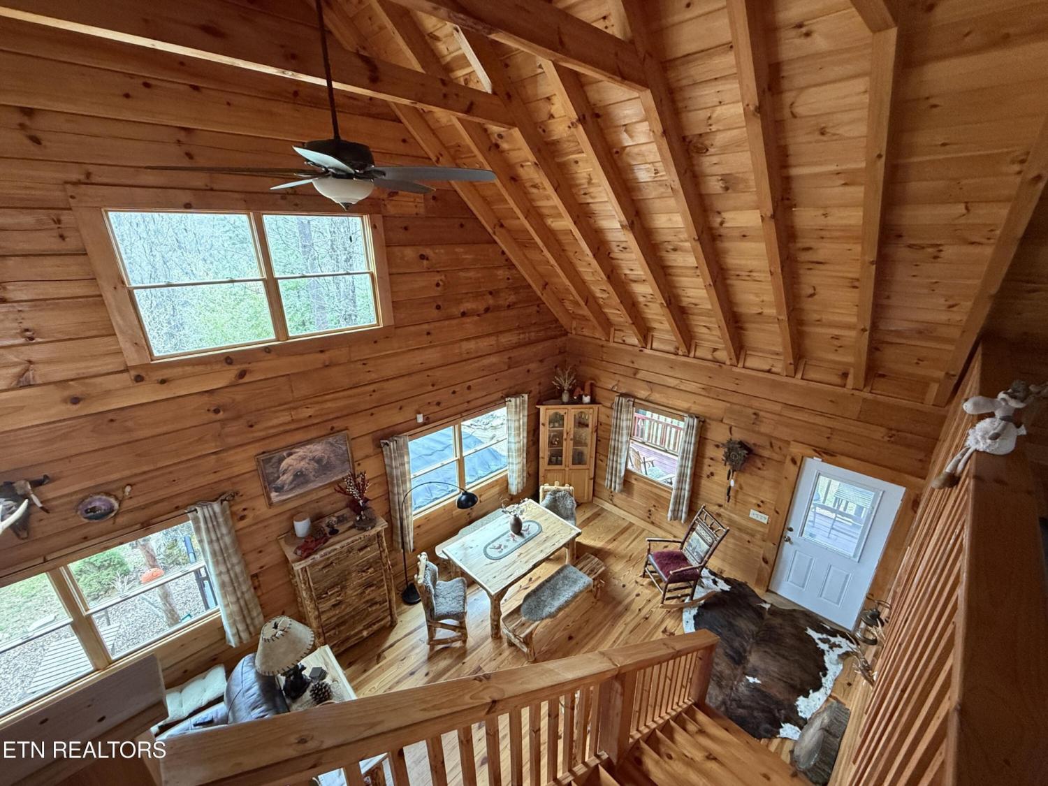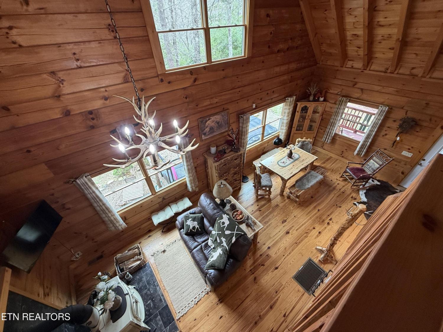 Discover your own private retreat in the small, scenic town of Beautiful Del Rio. This TRUE LOG cabin, built in 2013 well maintained recently stained and below block features lightly tinted stucco. This Cabin is nestled in the woods of the Cherokee National Forest on 3.33 unrestricted acres. The setting includes wooded privacy, established walking trails, and enough space to add another cabin or guest house. The property is currently operating as an active Airbnb, offering an immediate investment opportunity. The main cabin features 980 square feet of finished living space along with an additional 784 square feet of unfinished basement that is ready for future expansion. The interior includes one bedroom, one full bath, a large sleeping loft, hardwood floors throughout the main living areas, and a tiled walk-in shower in the full bath, which also includes a stackable washer and dryer. The living room is warmed by a wood-burning stove, and the kitchen is fully equipped with a large refrigerator, dishwasher, gas range, and microwave. Home has central heat and air using a heat pump for year-round comfort Outdoor amenities enhance the property's appeal. The main cabin includes an 8×16 heated spa pool and an outdoor sauna room, providing a relaxing retreat in any season. A jetted hot tub sits just outside the tiny home rental. Additionally, there is a small pond to sit near and enjoy the peaceful sound of the water. The land also includes a greenhouse for gardening, a carport, and a small storage shed. A separate one-room tiny home is located on the property and is on the short-term rental program rental also can be used for guest accommodations, or studio use. There is a spot for a smaller camper with a 30amp electric connection as well. Utility features include underground electric and phone service, a well producing approximately 10 gallons per minute, a one-bedroom septic system, insta-hot water, and a blue-flame gas heater located in the basement, which also has