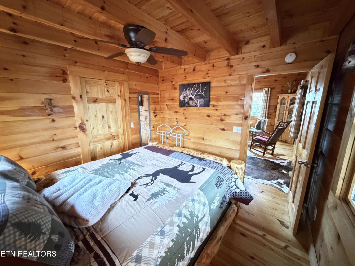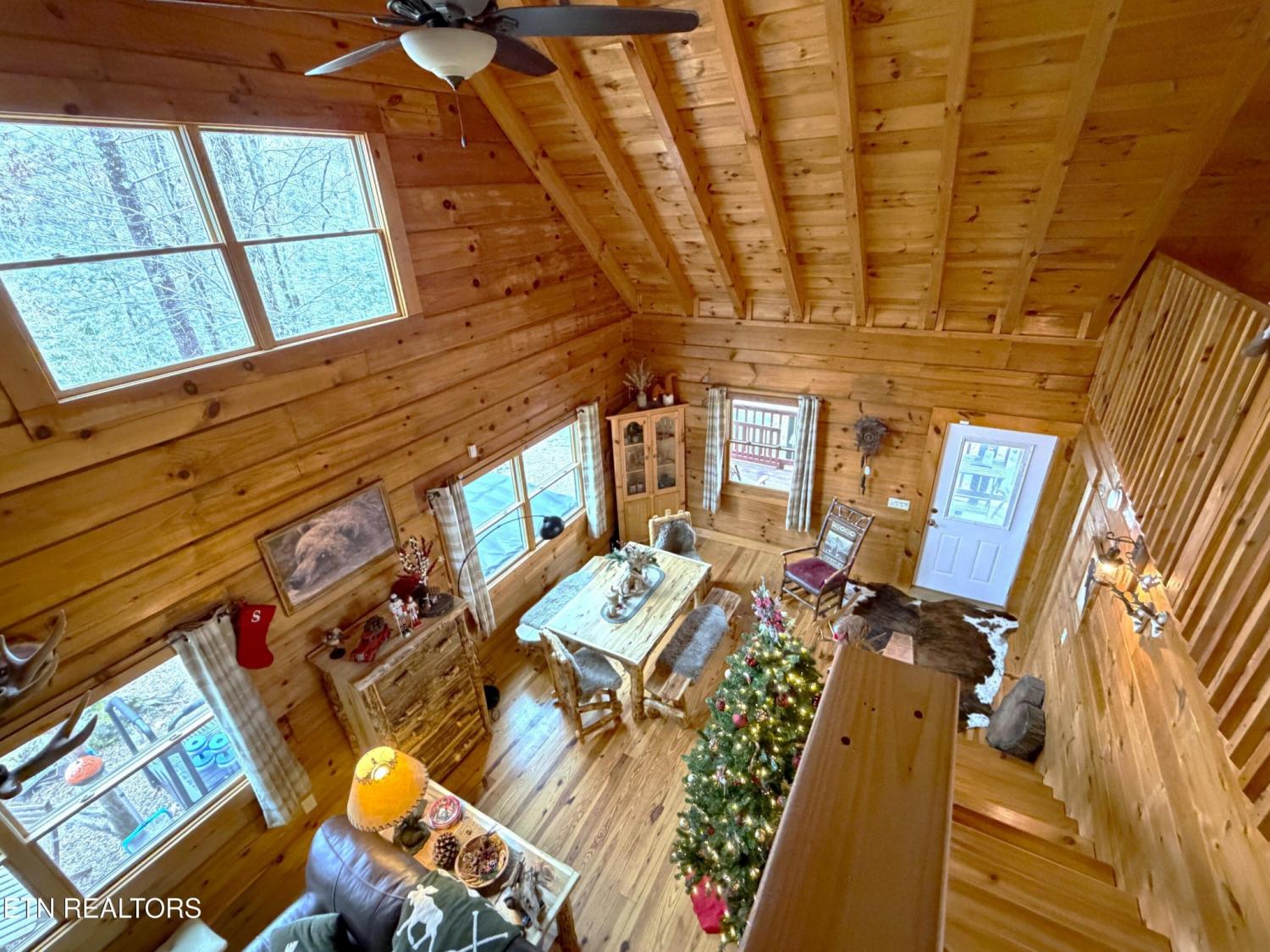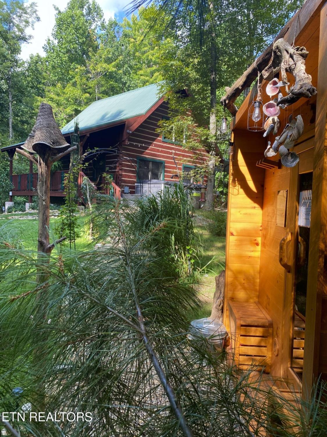 Discover your own private retreat in the small, scenic town of Beautiful Del Rio. This TRUE LOG cabin, built in 2013 well maintained recently stained and below block features lightly tinted stucco. This Cabin is nestled in the woods of the Cherokee National Forest on 3.33 unrestricted acres. The setting includes wooded privacy, established walking trails, and enough space to add another cabin or guest house. The property is currently operating as an active Airbnb, offering an immediate investment opportunity. The main cabin features 994 square feet of finished living space along with an additional 724 square feet of unfinished basement that is ready for future expansion. The interior includes one bedroom, one full bath, a large sleeping loft, hardwood floors throughout the main living areas, and a tiled walk-in shower in the full bath, which also includes a stackable washer and dryer. The living room is warmed by a wood-burning stove, and the kitchen is fully equipped with a large refrigerator, dishwasher, gas range, and microwave. Home has central heat and air using a heat pump for year-round comfort Outdoor amenities enhance the property's appeal. The main cabin includes an 8×16 heated spa pool and an outdoor sauna room, providing a relaxing retreat in any season. A jetted hot tub sits just outside the tiny home rental. The land also includes a greenhouse for gardening, a carport, and a small storage shed. A separate one-room tiny home is located on the property and is on the short term rental program rental also can be used for guest accommodations, or studio use. Utility features include underground electric and phone service, a well producing approximately 10 gallons per minute, a one-bedroom septic system, insta-hot water, and a blue-flame gas heater located in the basement, which also has three air vents. Internet options include, satellite, or Starlink RV.