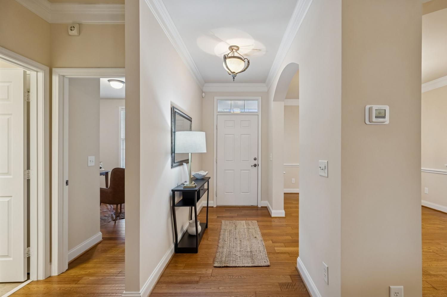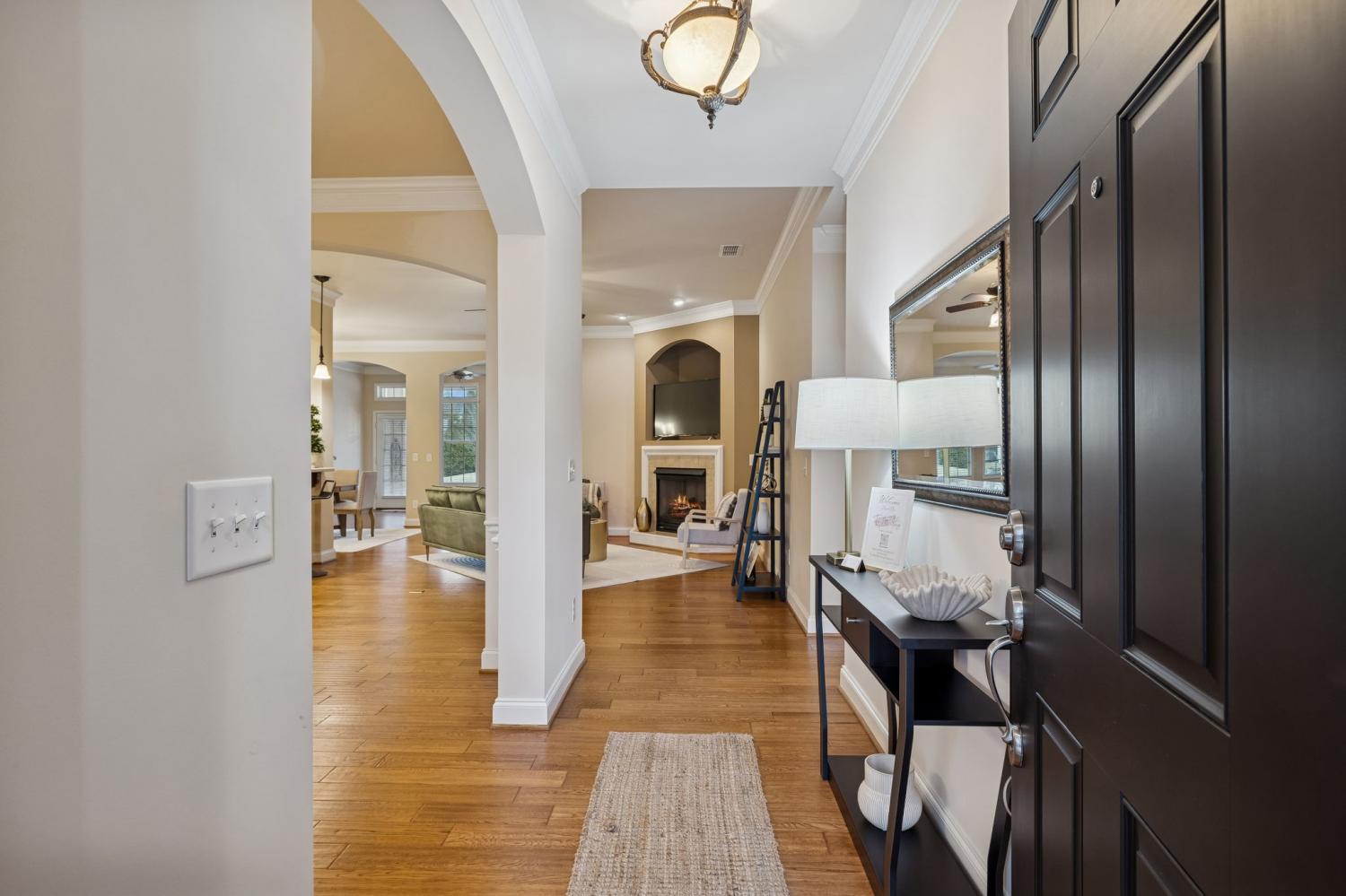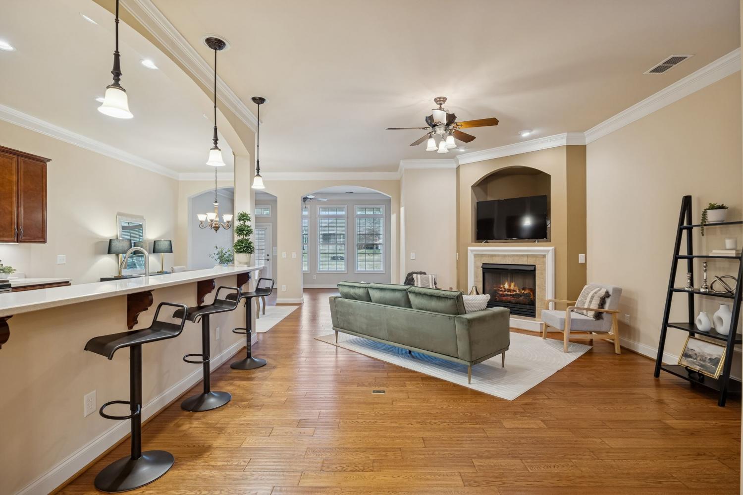 Built by renowned Frank Batson Homes, the detail, spacious rooms and living areas, and abundant storage in this all-brick beauty are extraordinary. With NO STEPS to enter this home and the Primary suite on the main floor, it is very easy to get around. Hand-scraped hardwoods and 10 foot ceilings are featured throughout the open first floor, along with an eat-in kitchen, with like-new stainless appliances and a large pantry. Just off the kitchen is a formal dining room, a living room with gas fireplace, and a family room with plenty of natural light. A short hallway leads to the fantastic Primary Suite, with tray ceilings, gorgeous natural light, and two closets. The Primary bathroom boasts two separate vanities, a large corner tub, and a walk-in shower with a seat. Then in the front of the home is a perfect guest bedroom with a full bath. Head upstairs to the expansive bonus room, which has a pre-wired walk-in media closet. The second floor also has a third bedroom with walk-in closet and a full bath, and a large walk-in storage area, crucial for keeping your home tidy! OUTSIDE, you will appreciate the buried power lines and like-new aggregate driveway and sidewalk. There are several upscale features, such as a natural gas lantern, an irrigation system, and custom concrete curbing around the flower beds. The covered back porch overlooks a common area, giving the owners plenty of space. Bridgewater is a lovely community with walking trails, a playground, and a gorgeous swimming pool! You can get to Summit Hospital in 10 minutes (4 miles,) Seven Points boat ramp and campground on Percy Priest lake in 7 minutes, Providence shopping center in Mount Juliet in 10 minutes, and downtown Nashville in just 20 minutes. This elegant condo feels just like a single family home with much LOWER PROPERTY TAXES! HOA fee includes lawn maintenance, exterior (ROOF) maintenance, and insurance.
