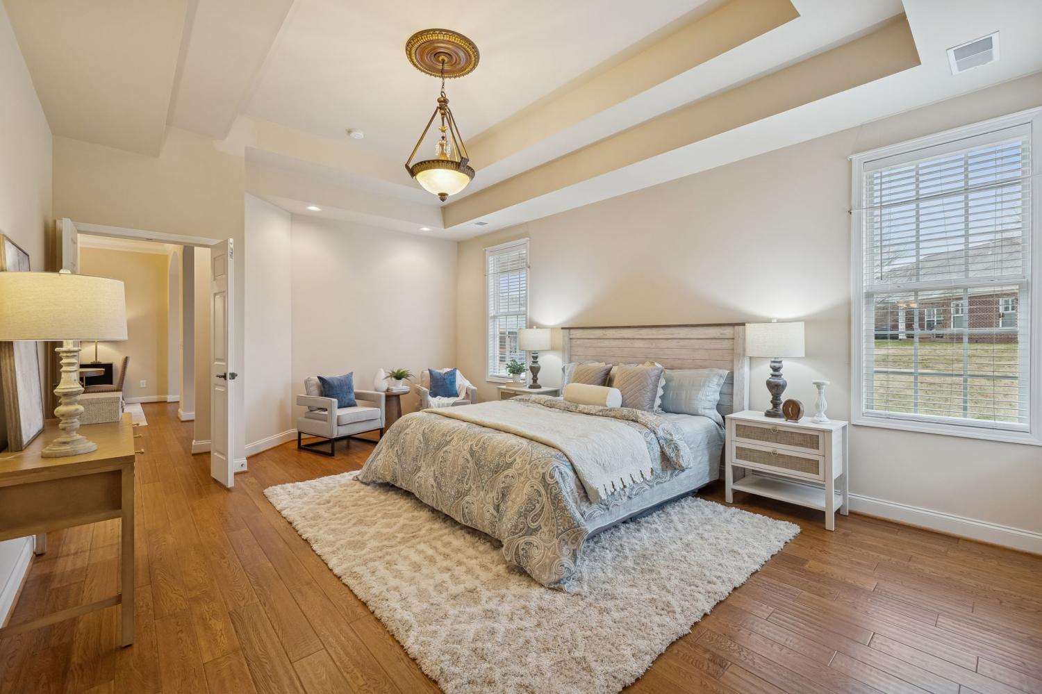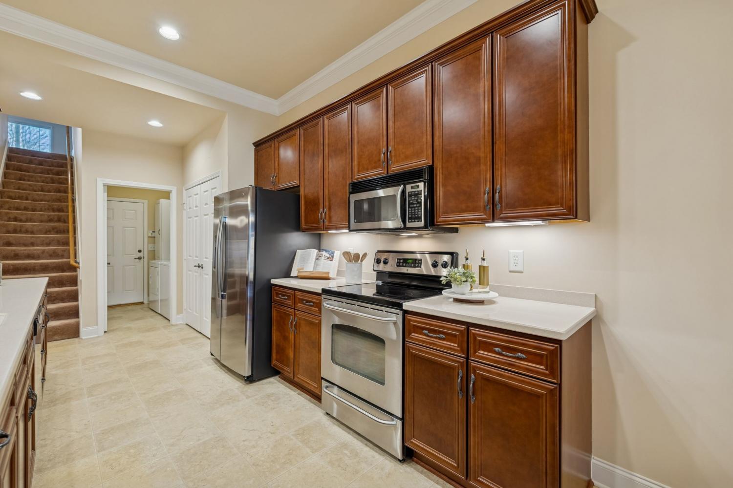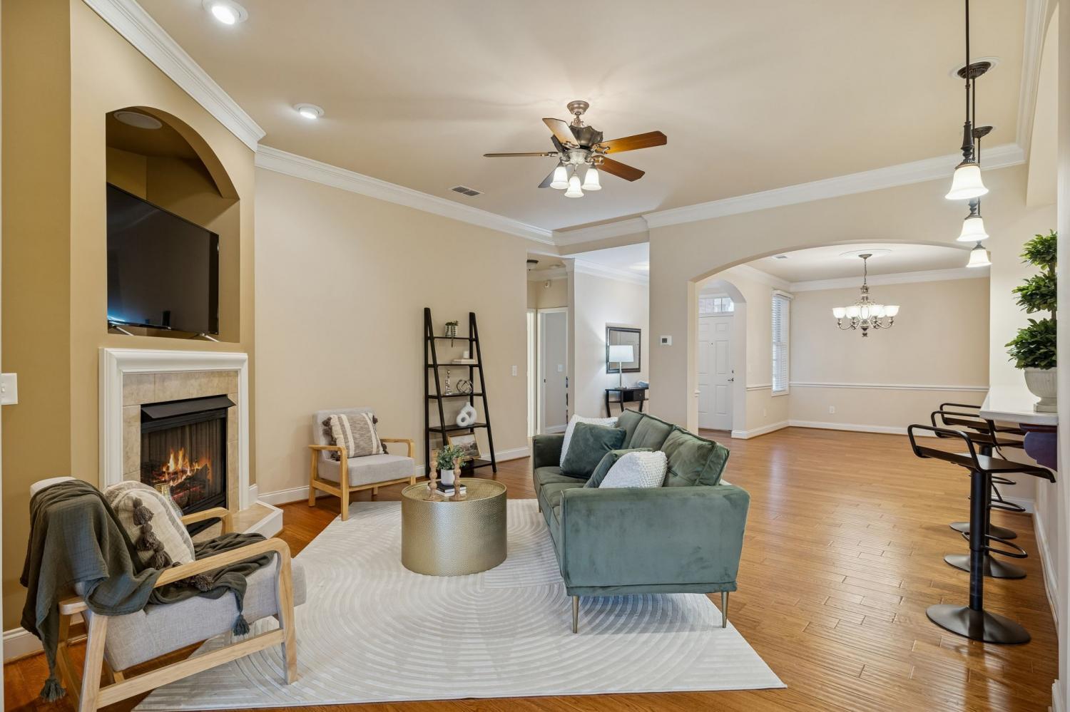 Built by renowned Frank Batson Homes, the detail, spacious rooms and living areas, and abundant storage in this all-brick beauty are extraordinary. With NO STEPS to enter this home and the Primary suite on the main floor, it is very easy to get around. Hand-scraped hardwoods and 10 foot ceilings are featured throughout the open first floor, along with an eat-in kitchen, with like-new stainless appliances and a large pantry. Just off the kitchen is a formal dining room, a living room with gas fireplace, and a family room with plenty of natural light. A short hallway leads to the fantastic Primary Suite, with tray ceilings, gorgeous natural light, and two closets. The Primary bathroom boasts two separate vanities, a large corner tub, and a walk-in shower with a seat. Then in the front of the home is a perfect guest bedroom with a full bath. Head upstairs to the expansive bonus room, which has a pre-wired walk-in media closet. The second floor also has a third bedroom with walk-in closet and a full bath, and a large walk-in storage area, crucial for keeping your home tidy! OUTSIDE, you will appreciate the buried power lines and like-new aggregate driveway and sidewalk. There are several upscale features, such as a natural gas lantern, an irrigation system, and custom concrete curbing around the flower beds. The covered back porch overlooks a common area, giving the owners plenty of space. Bridgewater is a lovely community with walking trails, a playground, and a gorgeous swimming pool! You can get to Summit Hospital in 10 minutes (4 miles,) Seven Points boat ramp and campground on Percy Priest lake in 7 minutes, Providence shopping center in Mount Juliet in 10 minutes, and downtown Nashville in just 20 minutes. This elegant condo feels just like a single family home with much LOWER PROPERTY TAXES! HOA fee includes lawn maintenance, exterior (ROOF) maintenance, and insurance.