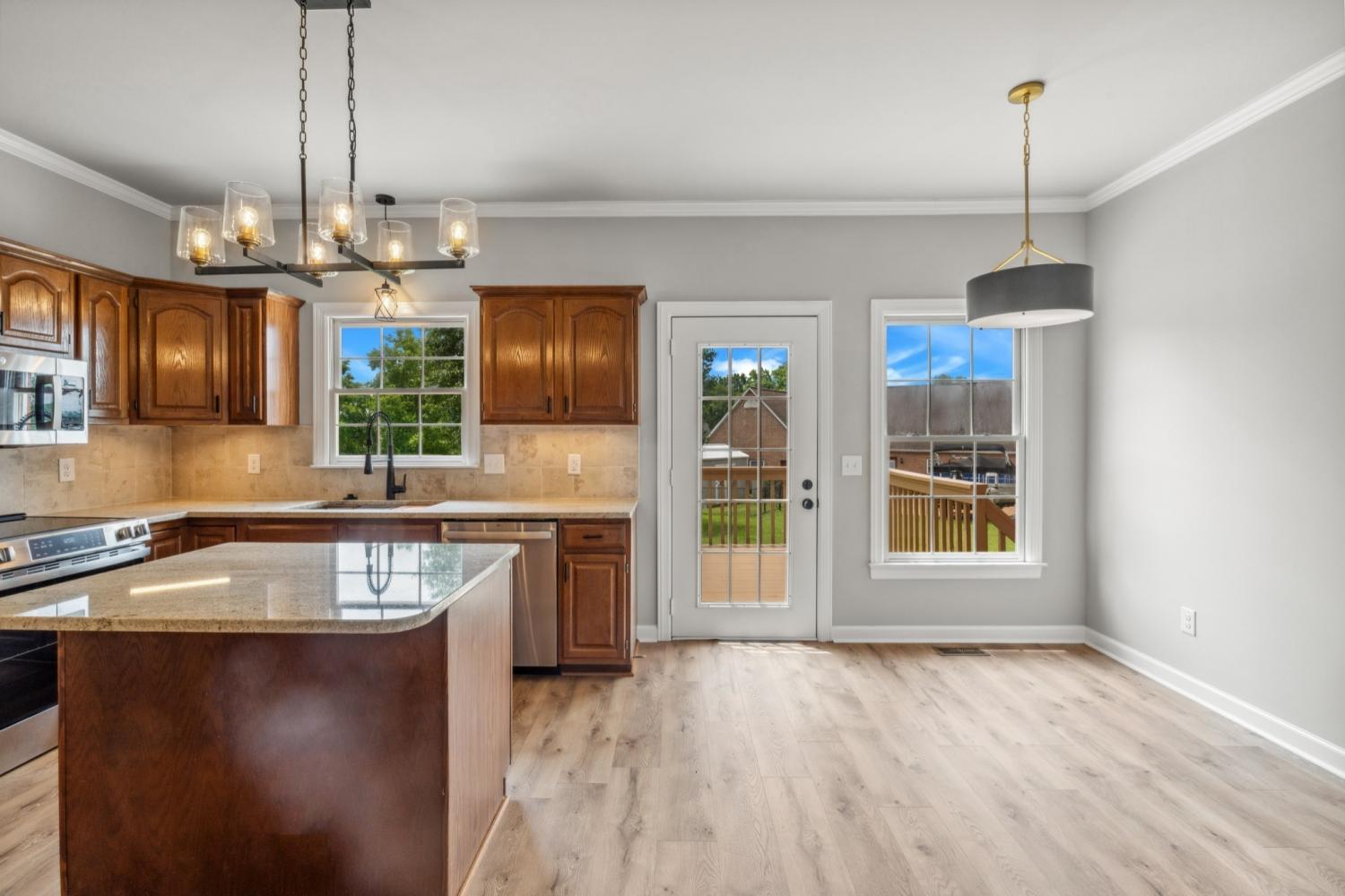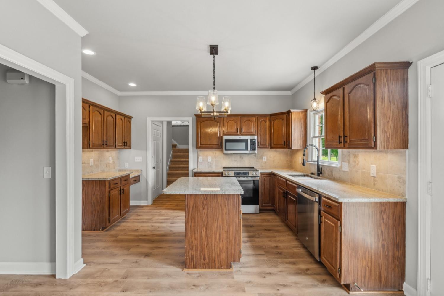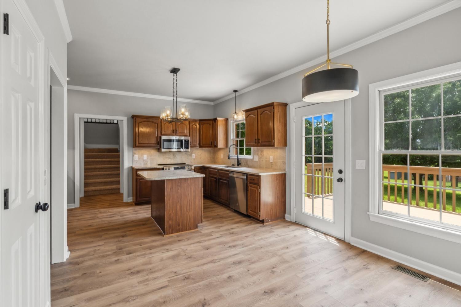 This beautifully renovated home in the highly sought-after Goodlettsville area of Sumner County is sure to impress. Featuring fresh paint, stylish new flooring, and upgraded lighting throughout, it offers a modern and inviting atmosphere. The spacious eat-in kitchen is a true highlight, boasting under-cabinet lighting, sleek granite countertops, and brand-new appliances. Nestled in a private cul-de-sac, the property sits on a level lot, offering both privacy and convenience. Enjoy outdoor gatherings on the expansive 14x12 deck and stamped concrete patio. The deep bay garage comes equipped with new openers and built-in storage for added functionality. With shopping, dining, and an easy I-65 connection just minutes away, this home perfectly blends comfort, style, and accessibility.