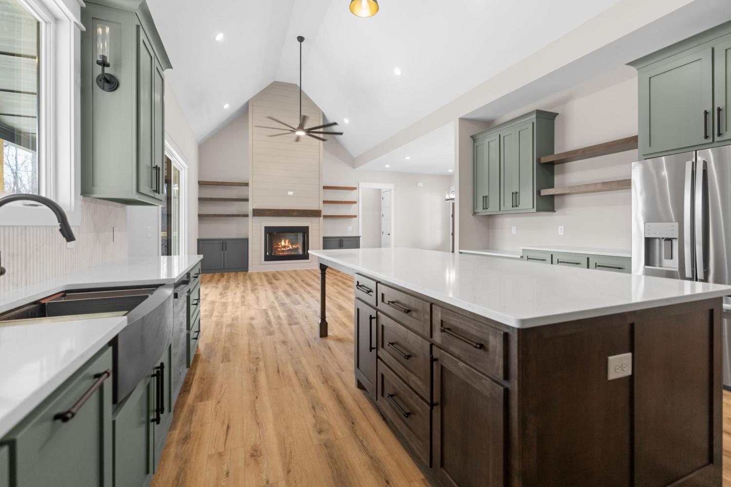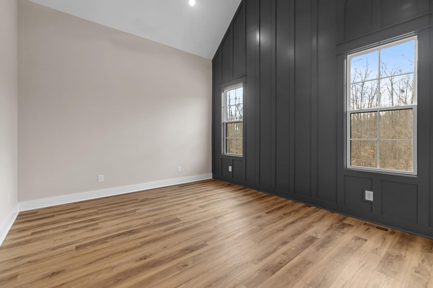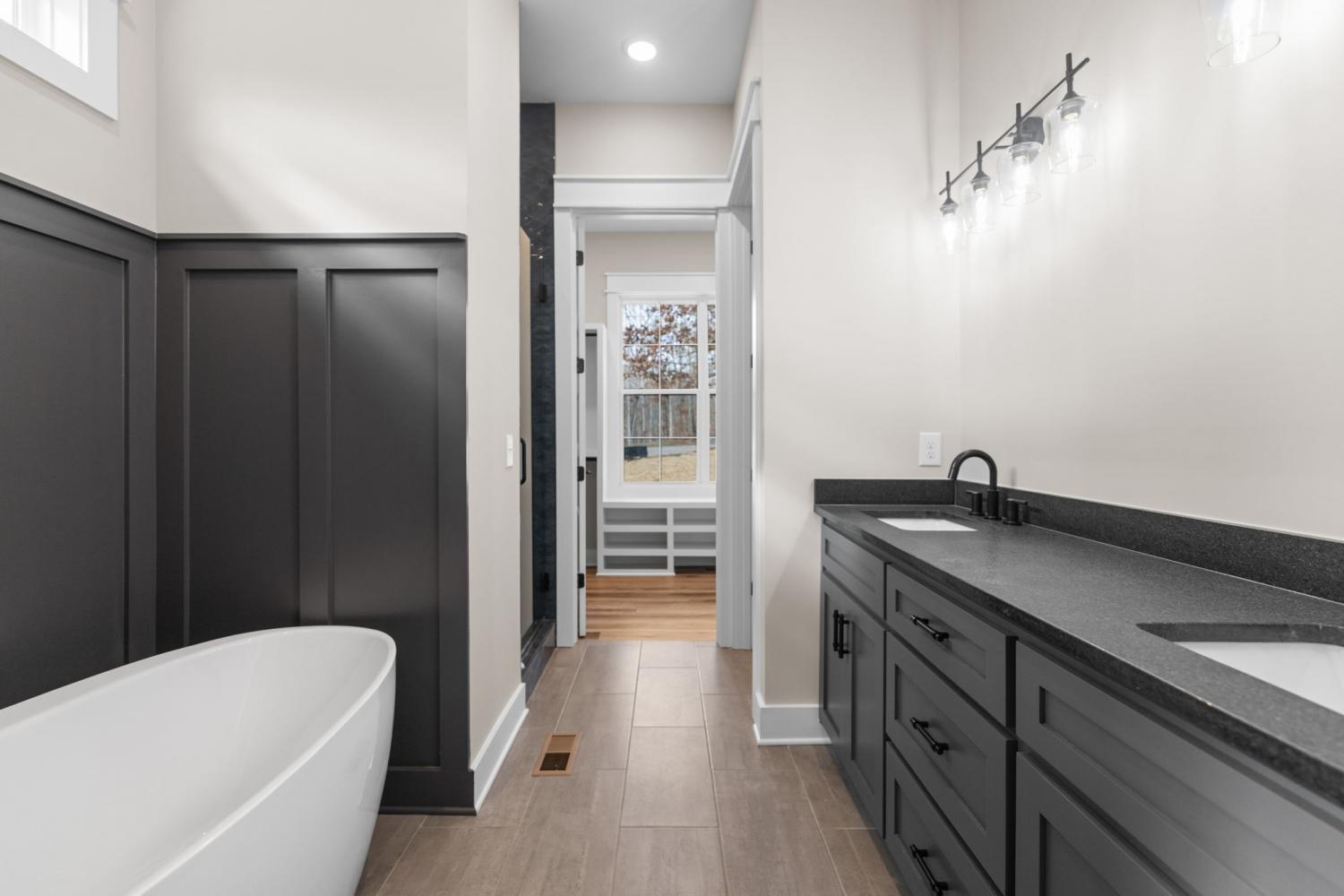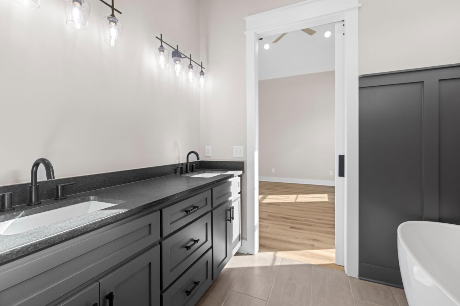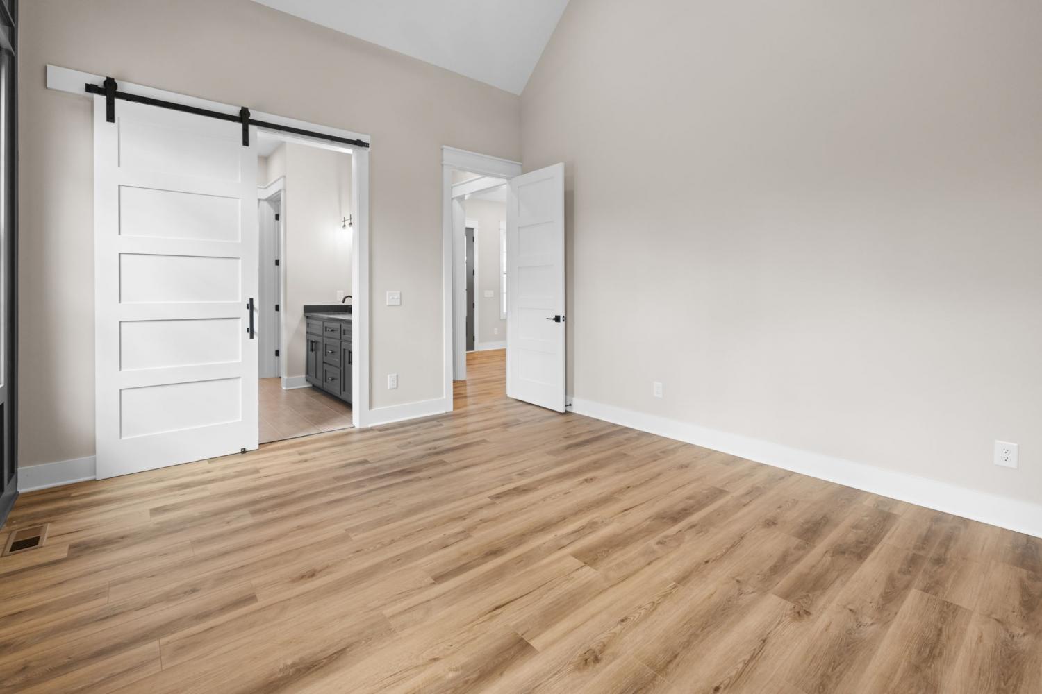 Beautiful new construction in a desirable lake community, located on a quiet cul-de-sac. This home features an abundance of kitchen cabinets with quartz countertops, an oversized island, and a walk-in pantry. The open-concept layout flows seamlessly into the great room with a cozy fireplace and leads out to a covered back porch overlooking the woods—perfect for enjoying nature and privacy. The primary bedroom offers a stylish accent wall and a spa-like bath with a soaker tub, walk-in tile shower, and a spacious walk-in closet. A concrete driveway adds durability and curb appeal. Upstairs, you’ll find two additional bedrooms and a large bonus room. Bedroom closets include built-ins, and there is ample walk-in attic storage. Taxes to be determined. Buyer or Buyer's Agent to verify all pertinent information. All measurements are approximate, if important please remeasure. Quality home built by Gregg Guinn Construction.