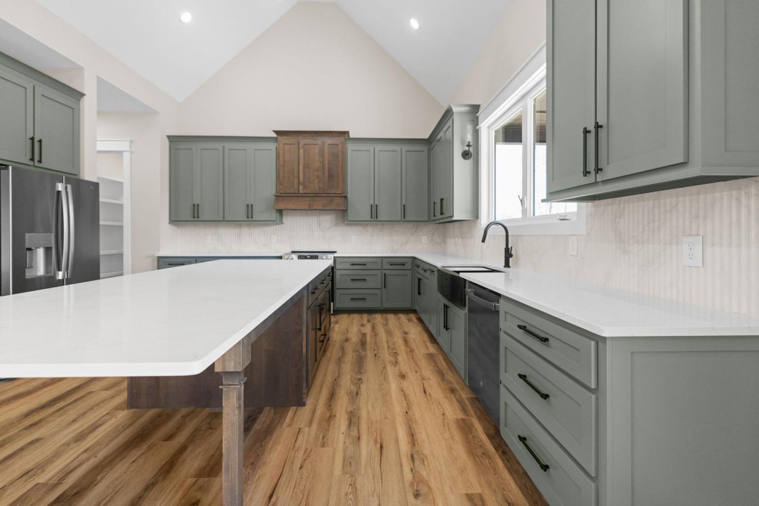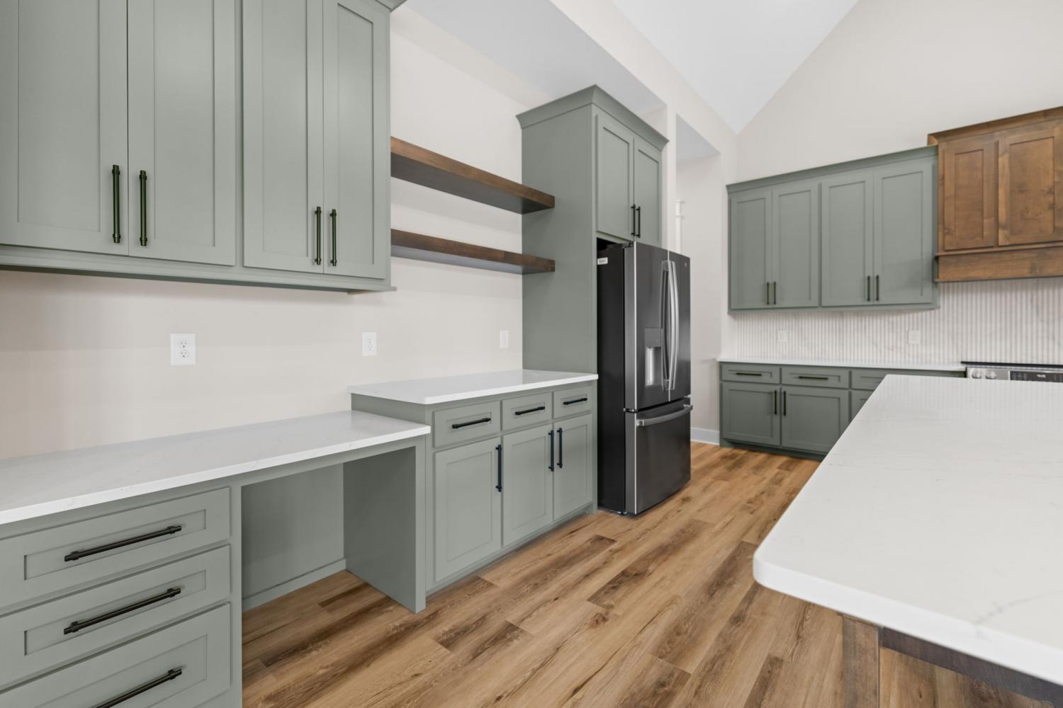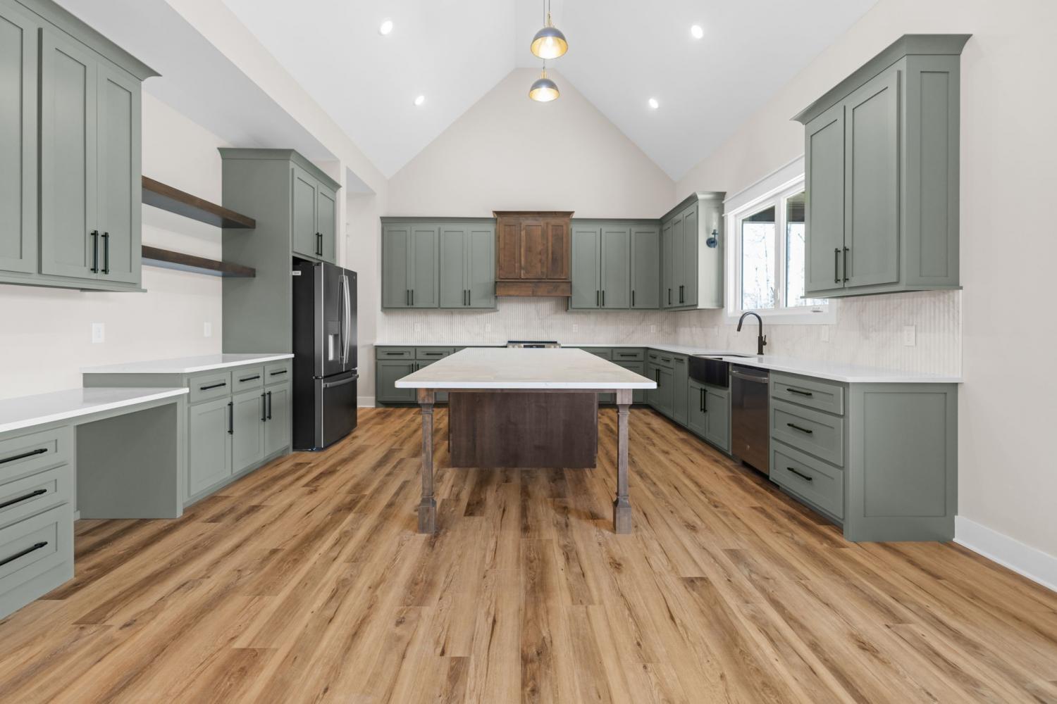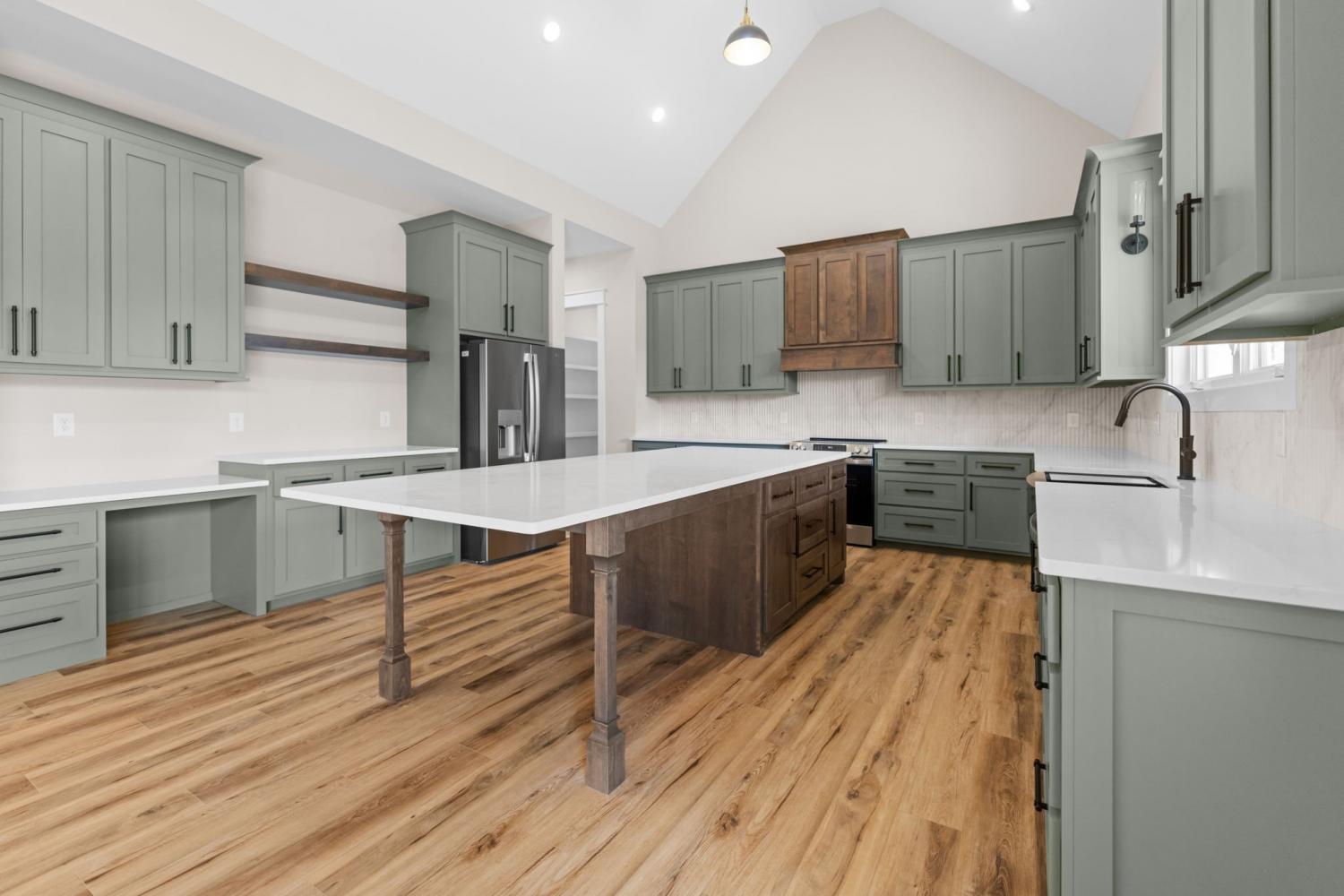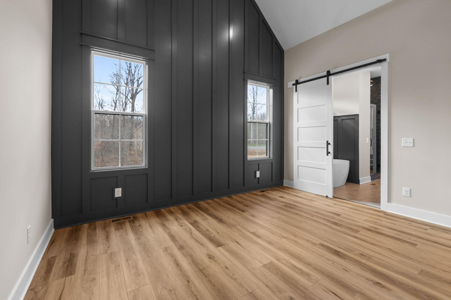 Beautiful new construction in a desirable lake community, located on a quiet cul-de-sac. This home features an abundance of kitchen cabinets with quartz countertops, an oversized island, and a walk-in pantry. The open-concept layout flows seamlessly into the great room with a cozy fireplace and leads out to a covered back porch overlooking the woods—perfect for enjoying nature and privacy. The primary bedroom offers a stylish accent wall and a spa-like bath with a soaker tub, walk-in tile shower, and a spacious walk-in closet. A concrete driveway adds durability and curb appeal. Upstairs, you’ll find two additional bedrooms and a large bonus room. Bedroom closets include built-ins, and there is ample walk-in attic storage. Taxes to be determined. Buyer or Buyer's Agent to verify all pertinent information. All measurements are approximate, if important please remeasure. Quality home built by Gregg Guinn Construction.