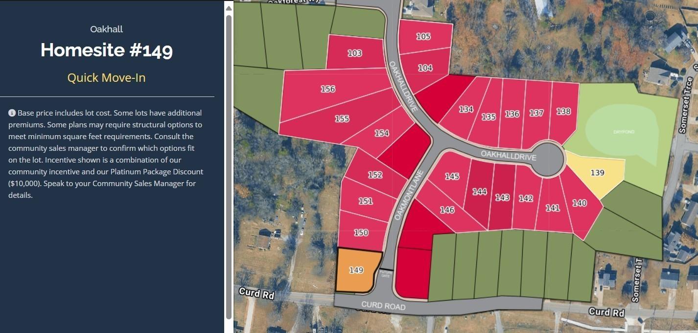 N Mount Juliet Rd to Curd Rd. Take Curd Rd back about 1 mile and turn left on to Oakmont. Homesite 149 is on the left.