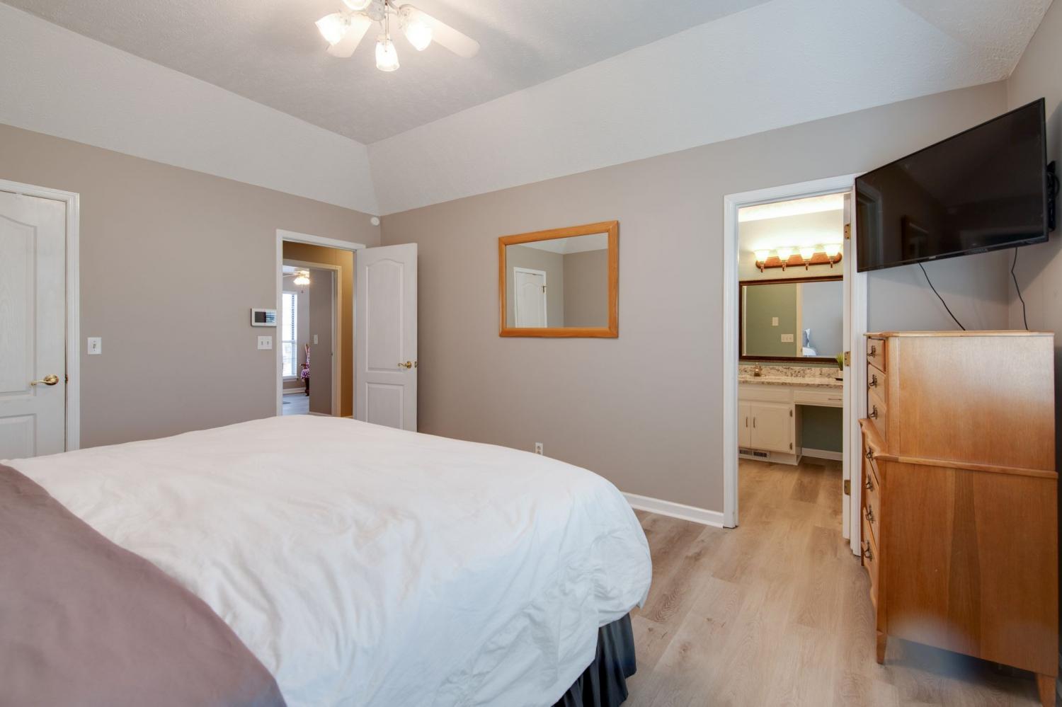 Welcome home to 644 Knollwood Drive. Nestled in the desirable Woodland Hills subdivision of LaVergne, this meticulously maintained 4-bedroom, 3-bath home offers a thoughtful and versatile floor plan. The main level features three bedrooms and two full bathrooms, while the lower level includes a fourth bedroom plus an incredible flex space currently being used as a fifth bedroom. The flex room is complete with its own full bath and kitchenette, and is ideal for an in-law suite, teen hangout, or private guest retreat. Situated on nearly a quarter-acre lot, the fully fenced backyard provides the perfect setting for relaxing and unwinding. Storage is abundant throughout the home, including an extra area in the garage, extensive walk-up attic space, and an exterior storage unit. Recent updates include luxury vinyl plank flooring, new light fixtures in the foyer, dining room, and kitchen, fresh interior paint, and a full exterior pressure wash. Please refer to the listing docs for a complete list of upgrades and amenities this home has to offer. NOTE: Although home is located on corner of Vanguard & Knollwood, please enter from Silver Birch as Vanguard is not yet a "through" street.