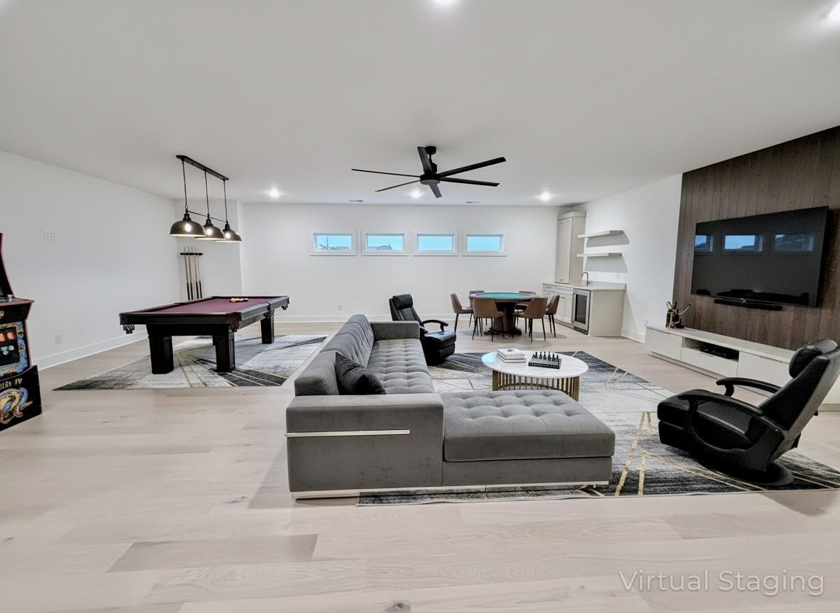 Prepare to be truly wowed by this exceptional contemporary showpiece set on a .91-acre level cul-de-sac homesite w/ room for a pool. Spanning an impressive 7,107 sq.ft., this residence blends architectural brilliance w/ effortless everyday livability—a stunning fusion of elegance, modern design & thoughtful functionality. The striking façade sets the tone, leading to a 4-car garage w/ portico & workshop area, providing abundant space for vehicles, tools & creative projects. A massive iron entry door opens into a breathtaking interior where soaring ceilings, dramatic architectural accents & an expansive open layout create a welcoming atmosphere of sophistication & warmth. Designed for ultimate entertaining, this home features game rooms on BOTH levels, a dedicated media room for cinematic nights & a home gym for wellness enthusiasts—ensuring endless enjoyment for family and guests alike. Outdoor living is equally impressive. A wrap-around covered porch overlooks the expansive backyard & includes a built-in gas grill, full pool bath & multiple gathering spaces perfect for alfresco dining, celebrations or relaxing in style. The chef’s kitchen is a true culinary masterpiece, showcasing custom-to-the-ceiling cabinetry, quartz countertops, pot filler, high-end Thermador appliances (including cabinet-paneled refrigerator/freezer) & a hidden pantry pass-through to the kitchen. A spacious island, breakfast bar & large dining nook make this the ideal space for hosting & everyday living. Even the utility room is exceptional—featuring abundant cabinetry, generous counter space, built-in sink, room for a second refrigerator, a convenient drop zone, & even a dog wash for your four-legged companions. This remarkable residence is more than a home—it’s a lifestyle, designed for living, entertaining & celebrating life’s best moments — and READY FOR MOVE IN! Primm Farm is just minutes from major interstates, Downtown Nashville, International Airport & Top Rated Williamson Co Schools!