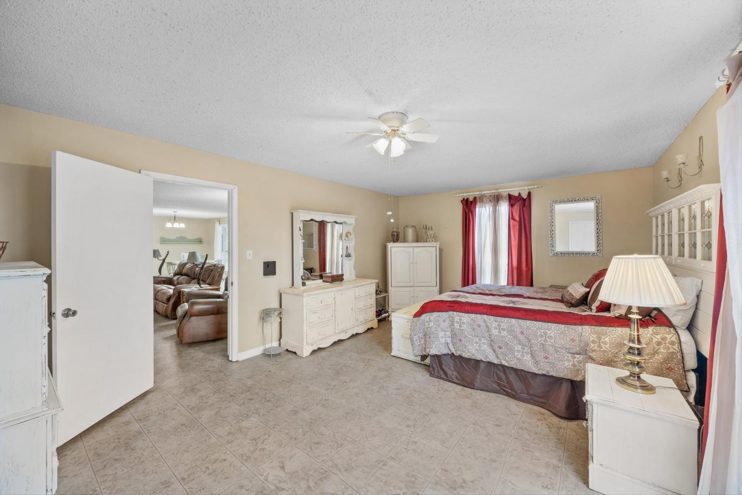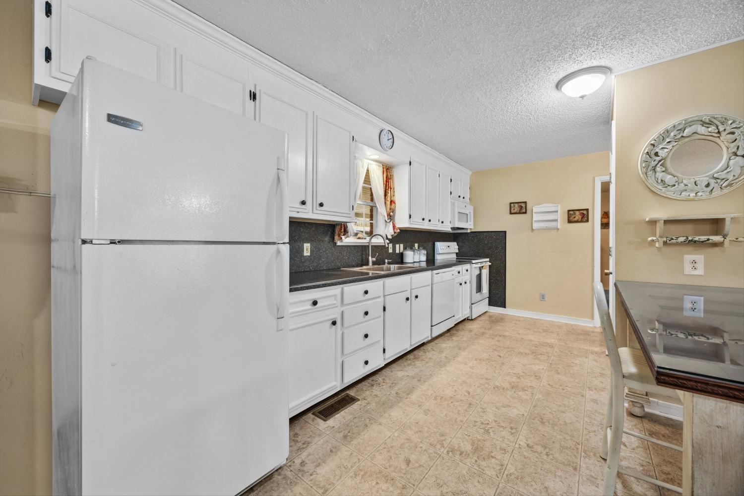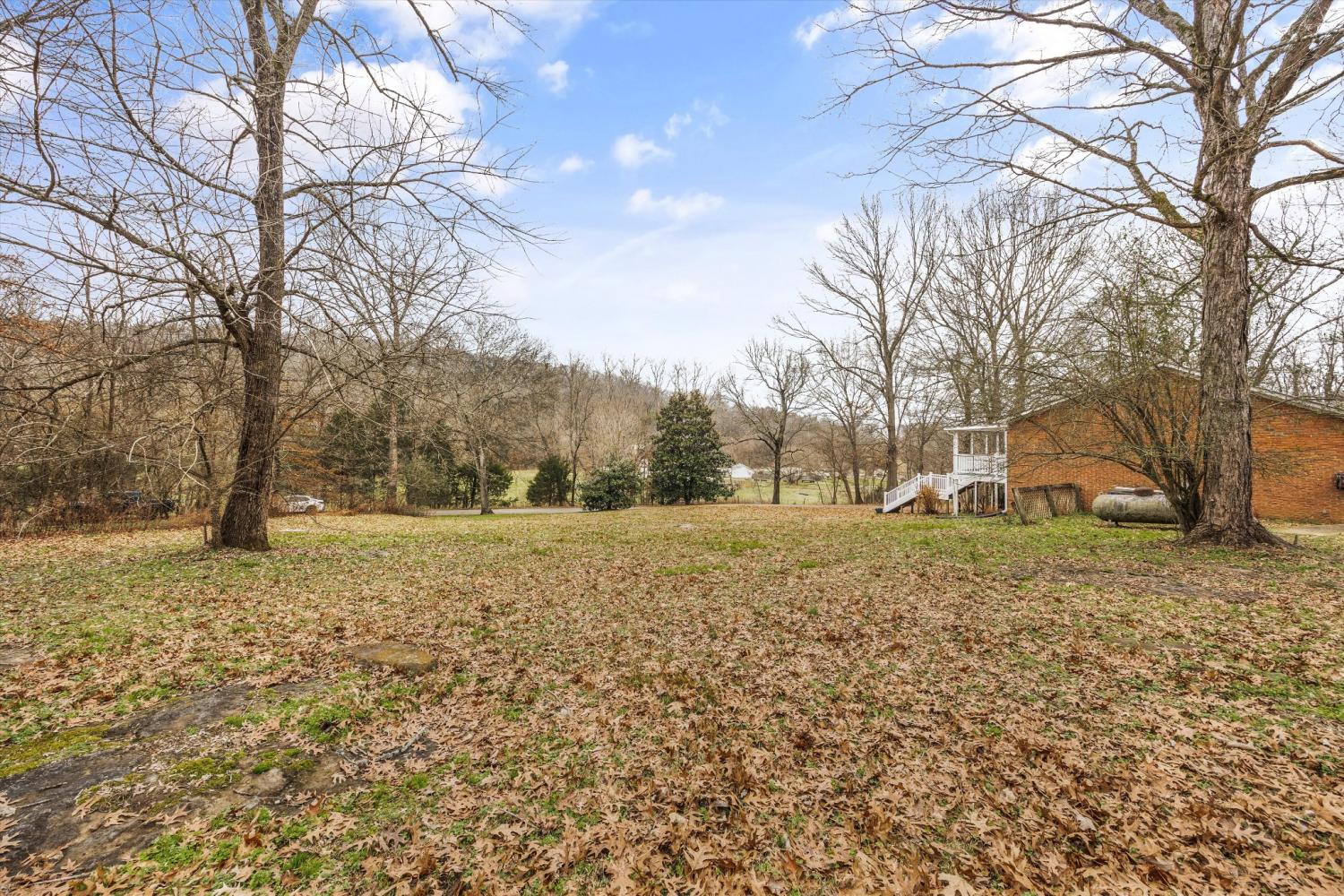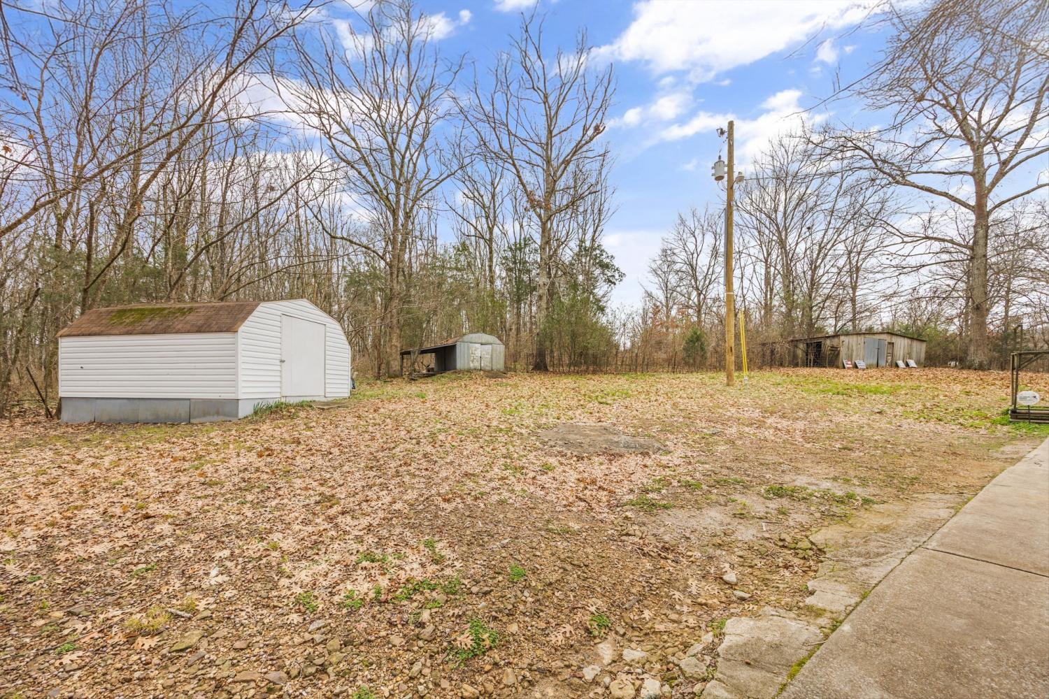 Beautifully maintained brick home on 2.26 acres in a prime Tennessee location—just 5 minutes to I-65, 10 minutes to Ardmore, and 35 minutes to Huntsville. This spacious 3-bedroom, 2-bath home offers 2,105 sq ft and an open floor plan perfect for entertaining or family gatherings. The kitchen features updated cabinetry, new countertops, a large stainless sink, and new fixtures. The oversized primary suite includes a ceiling fan and an en-suite bath with a sunken whirlpool tub and separate shower. Cozy up in the living room with gas logs and a mantle, or relax in the sunroom with laminate flooring, double ceiling fans, and two sets of French doors leading to the patio. Additional features include a 2-car attached carport, single-car side-entry garage, barn, two storage sheds, mature landscaping, concrete driveway, and a large covered front porch—perfect for enjoying peaceful views and local wildlife