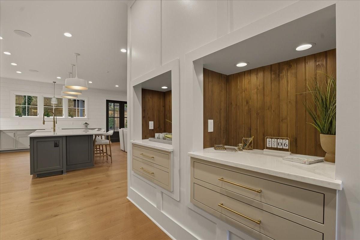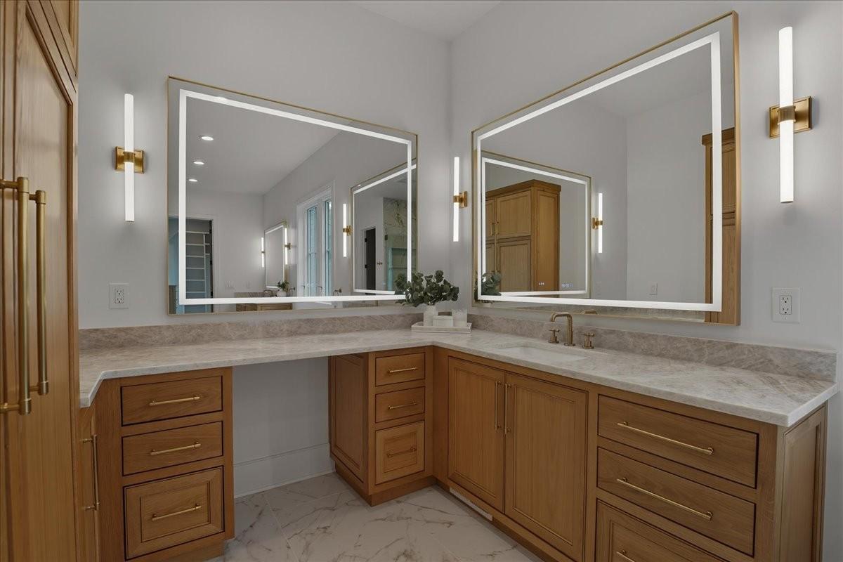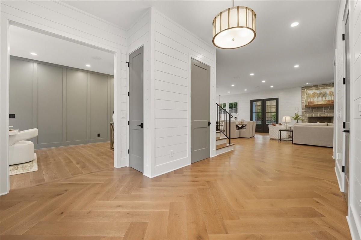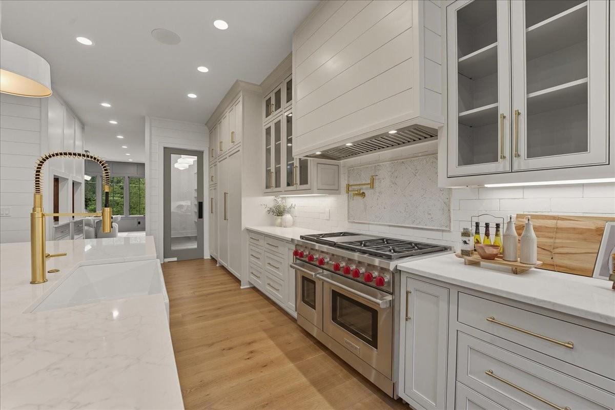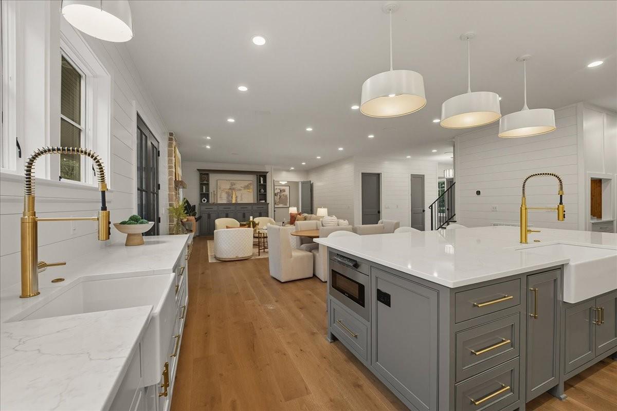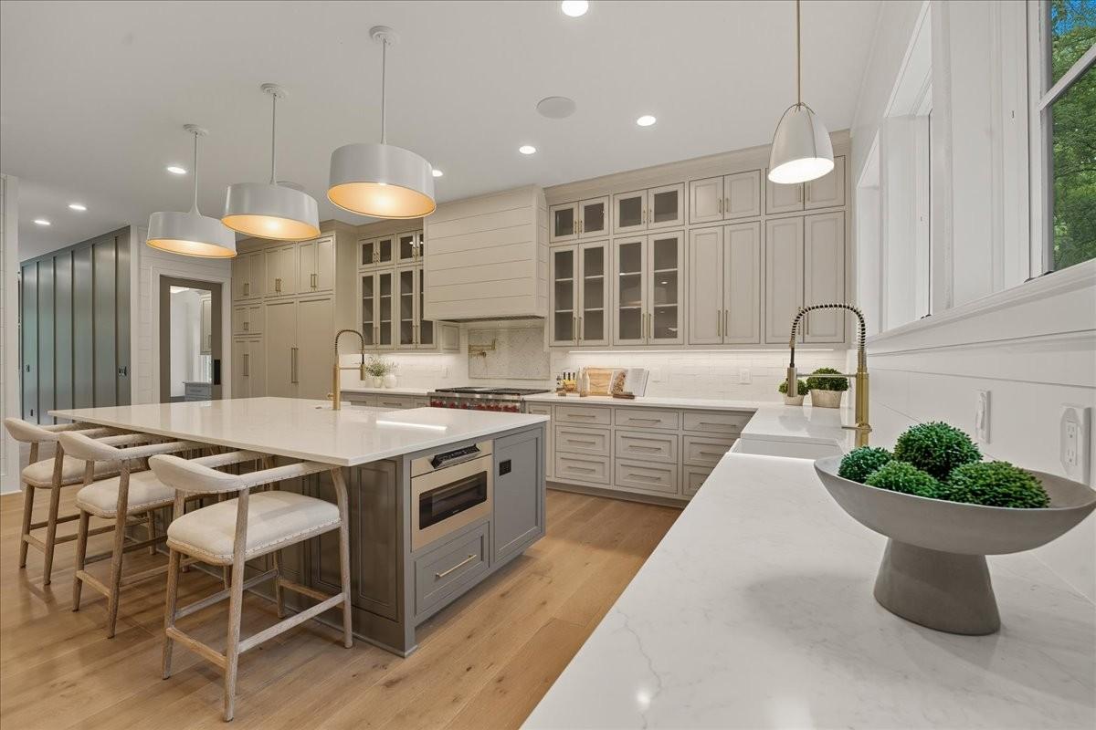 Every inch of this remarkable home reflects a deep commitment to quality, craftsmanship &timeless design. Built on a steel-reinforced poured concrete foundation w/brick construction, this residence combines unwavering strength w/exquisite architectural details. Classic bead board ceilings on front&back porches along w/Coppersmith gas lanterns set the tone for a home that’s as beautiful as it is enduring. Upon entering, you are greeted by the soothing sounds of your personal Sonos amp system w/18 ceiling speakers &individual fader controls smartly placed throughout common living areas. Kitchen is a chef’s dream w/Calacatta Miraggio Cove Quartz countertops, 48” Wolf gas range w/double ovens, Sub-Zero refrigerator &freezer columns,Bosch Benchmark dishwasher&Scotsman nugget ice machine. A large walk-in pantry w/ prep space completes the culinary experience. Great room centers on a dramatic wood-burning stone fireplace complemented by a custom TV console w/shelving&white oak accents. Separate spacious dining room is complete w/bar area serving as both a visual centerpiece&an entertainer’s dream. It features black honed countertops,custom built-ins for glass&bottle storage,wine frig&ice maker&brass rail/glass shelving set against antiqued smoked mirrors. Inviting Primary suite is a retreat to behold w/a vaulted wood plank ceiling, Taj Mahal quartz surfaces, Brizo Litze luxe gold fixtures, double vanities&a graciously-sized soaking tub. Walk-in closet offers an expansive 20-drawer center island&specialty shelving like angled shoe racks. Main-level laundry offers extensive cabinetry w/over 160 cubic feet of storage—ideal for linens, luggage, and seasonal needs. Upper floor boasts a central gathering room from which 4 bedrooms rest, each w/ their own private bathrooms&walk-in closets.Another full laundry room is found here w/front-facing window that allows sunlight to wash across the patterned floor tile. See attached for complete list.
