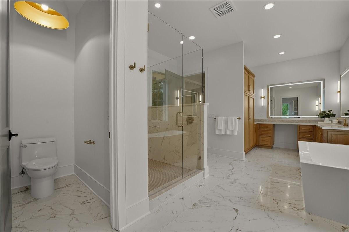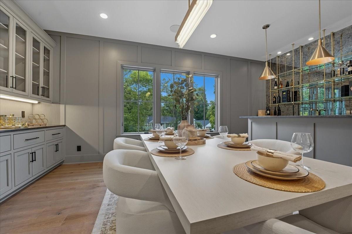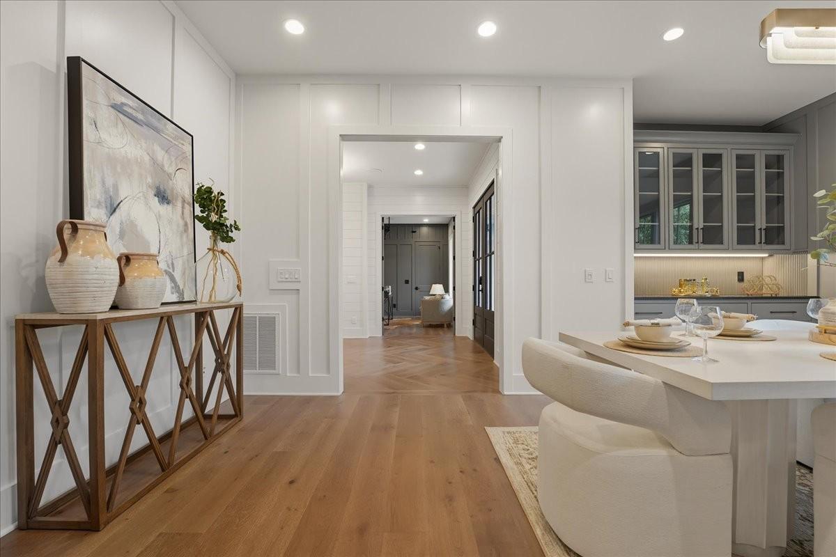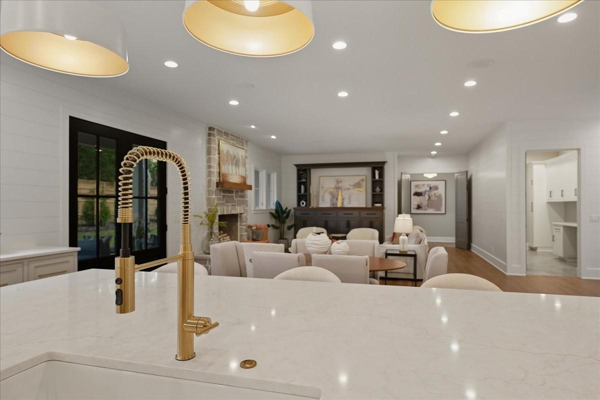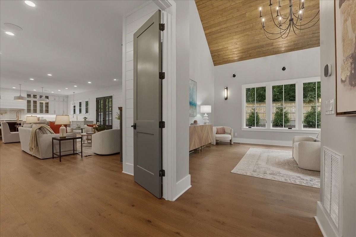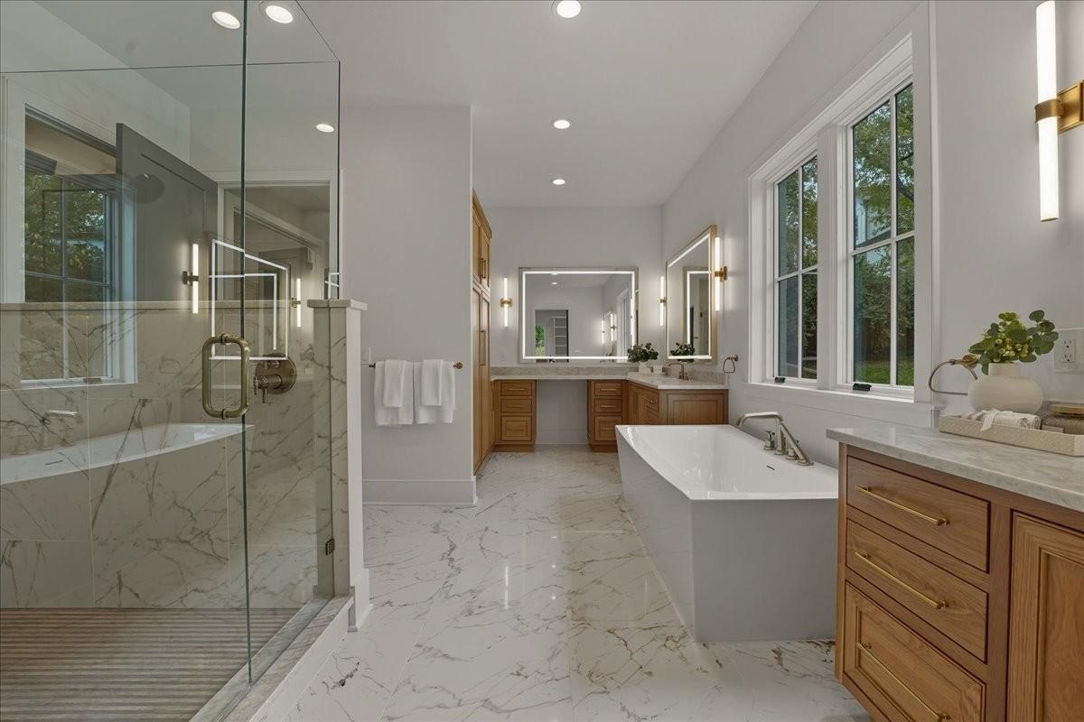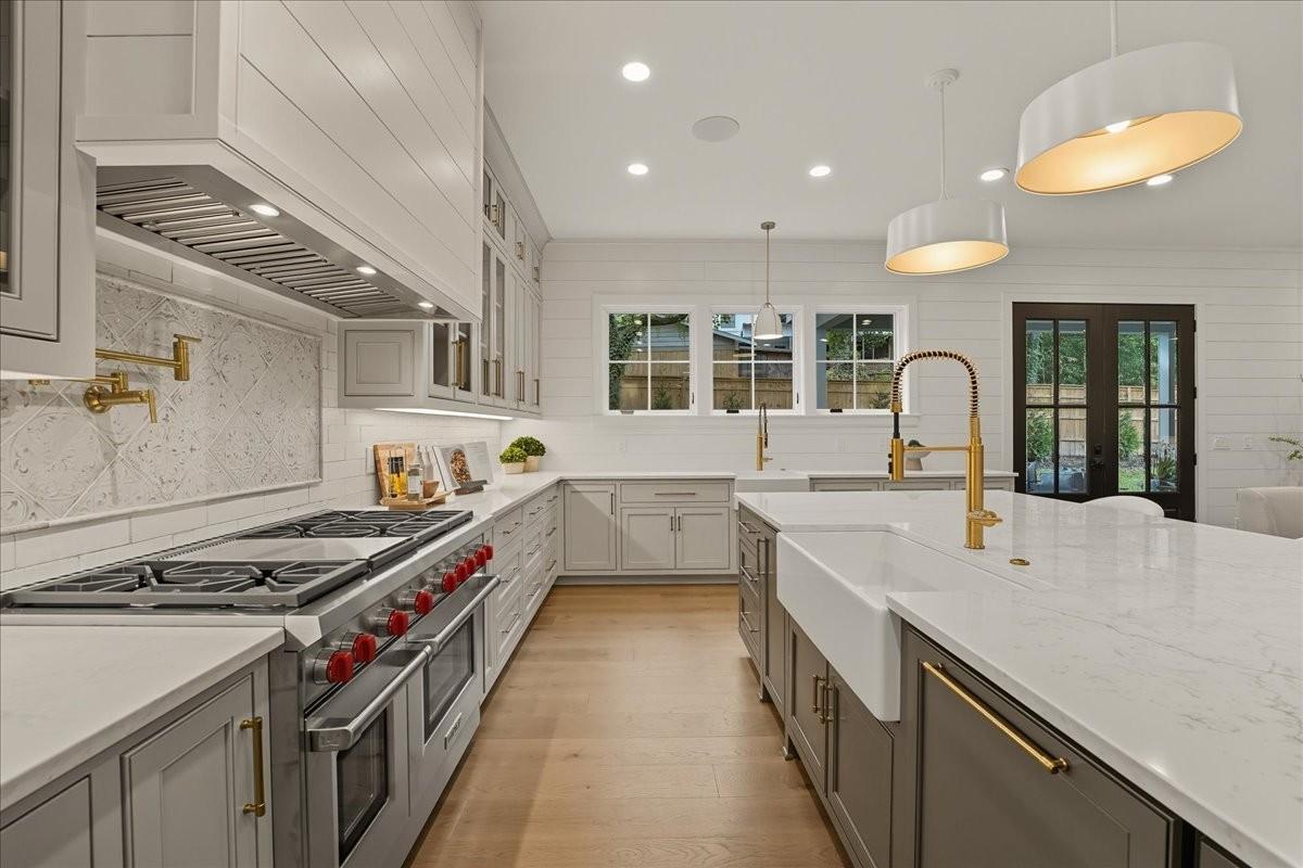 Every inch of this remarkable home reflects a deep commitment to quality, craftsmanship &timeless design. Built on a steel-reinforced poured concrete foundation w/brick construction, this residence combines unwavering strength w/exquisite architectural details. Classic bead board ceilings on front&back porches along w/Coppersmith gas lanterns set the tone for a home that’s as beautiful as it is enduring. Upon entering, you are greeted by the soothing sounds of your personal Sonos amp system w/18 ceiling speakers &individual fader controls smartly placed throughout common living areas. Kitchen is a chef’s dream w/Calacatta Miraggio Cove Quartz countertops, 48” Wolf gas range w/double ovens, Sub-Zero refrigerator &freezer columns,Bosch Benchmark dishwasher&Scotsman nugget ice machine. A large walk-in pantry w/ prep space completes the culinary experience. Great room centers on a dramatic wood-burning stone fireplace complemented by a custom TV console w/shelving&white oak accents. Separate spacious dining room is complete w/bar area serving as both a visual centerpiece&an entertainer’s dream. It features black honed countertops,custom built-ins for glass&bottle storage,wine frig&ice maker&brass rail/glass shelving set against antiqued smoked mirrors. Inviting Primary suite is a retreat to behold w/a vaulted wood plank ceiling, Taj Mahal quartz surfaces, Brizo Litze luxe gold fixtures, double vanities&a graciously-sized soaking tub. Walk-in closet offers an expansive 20-drawer center island&specialty shelving like angled shoe racks. Main-level laundry offers extensive cabinetry w/over 160 cubic feet of storage—ideal for linens, luggage, and seasonal needs. Upper floor boasts a central gathering room from which 4 bedrooms rest, each w/ their own private bathrooms&walk-in closets.Another full laundry room is found here w/front-facing window that allows sunlight to wash across the patterned floor tile. See attached for complete list.