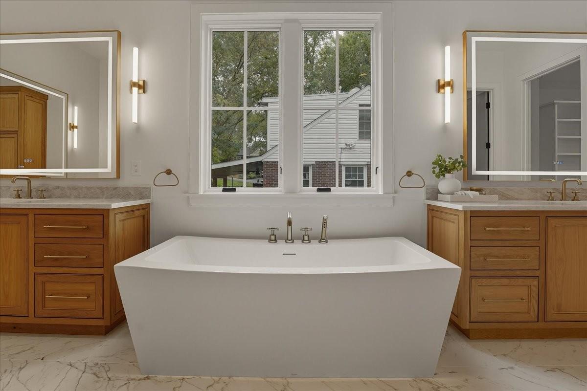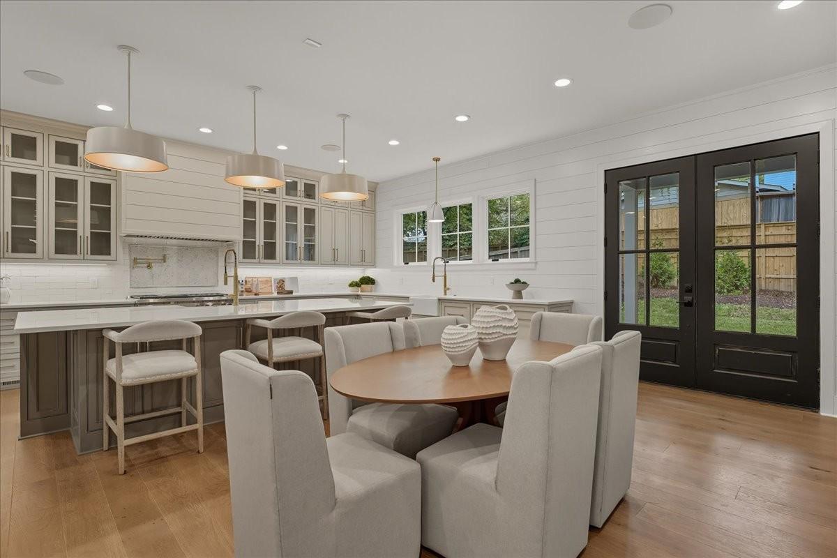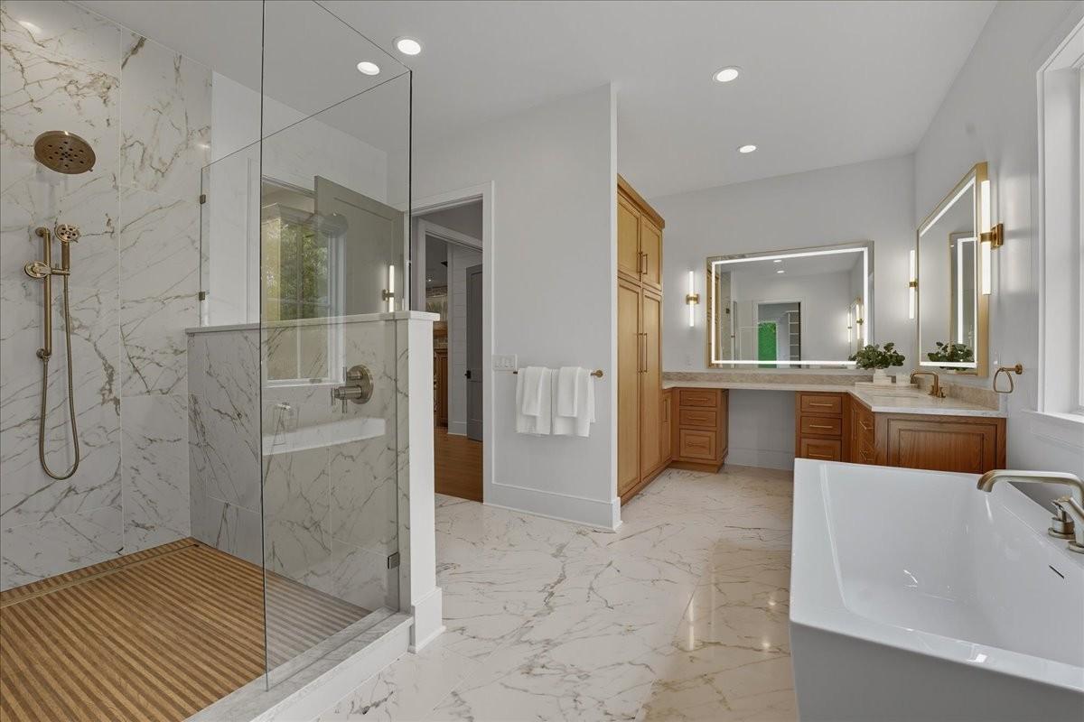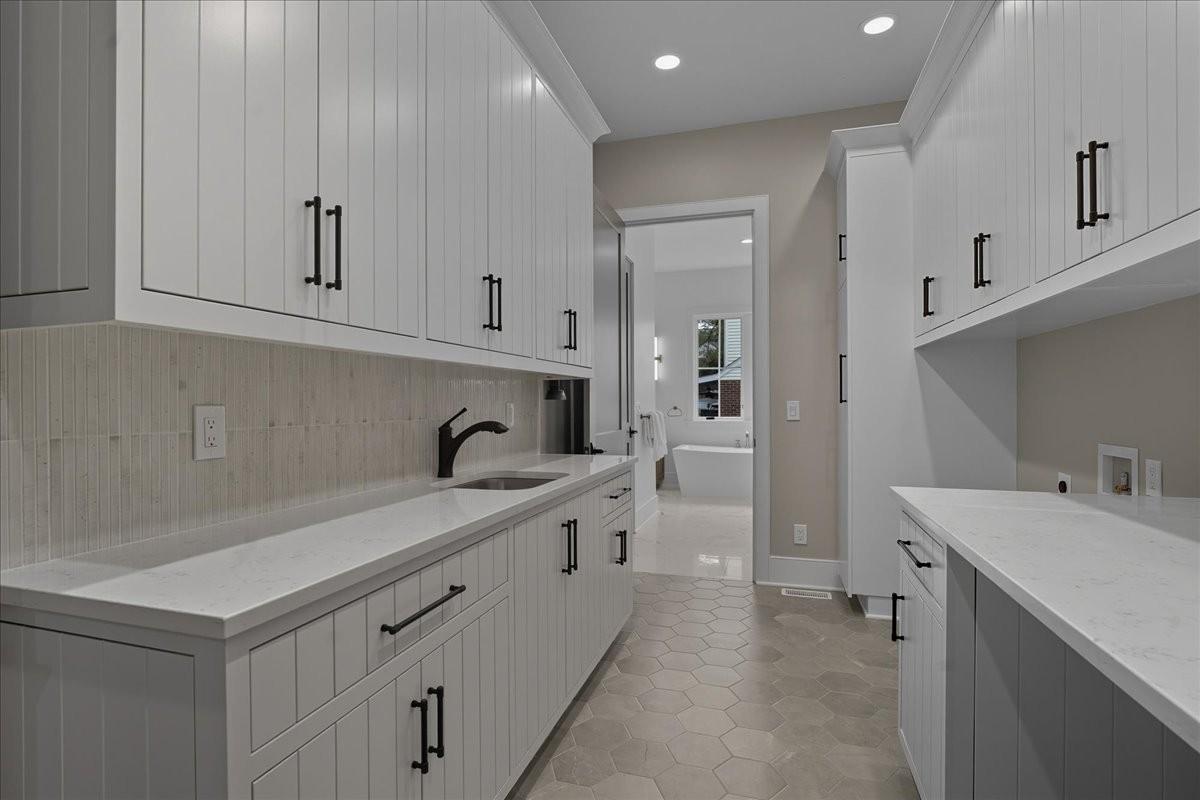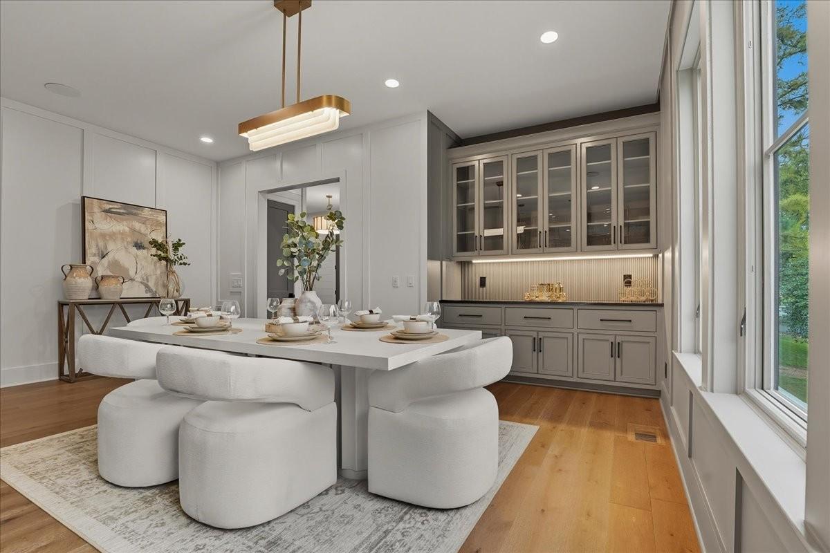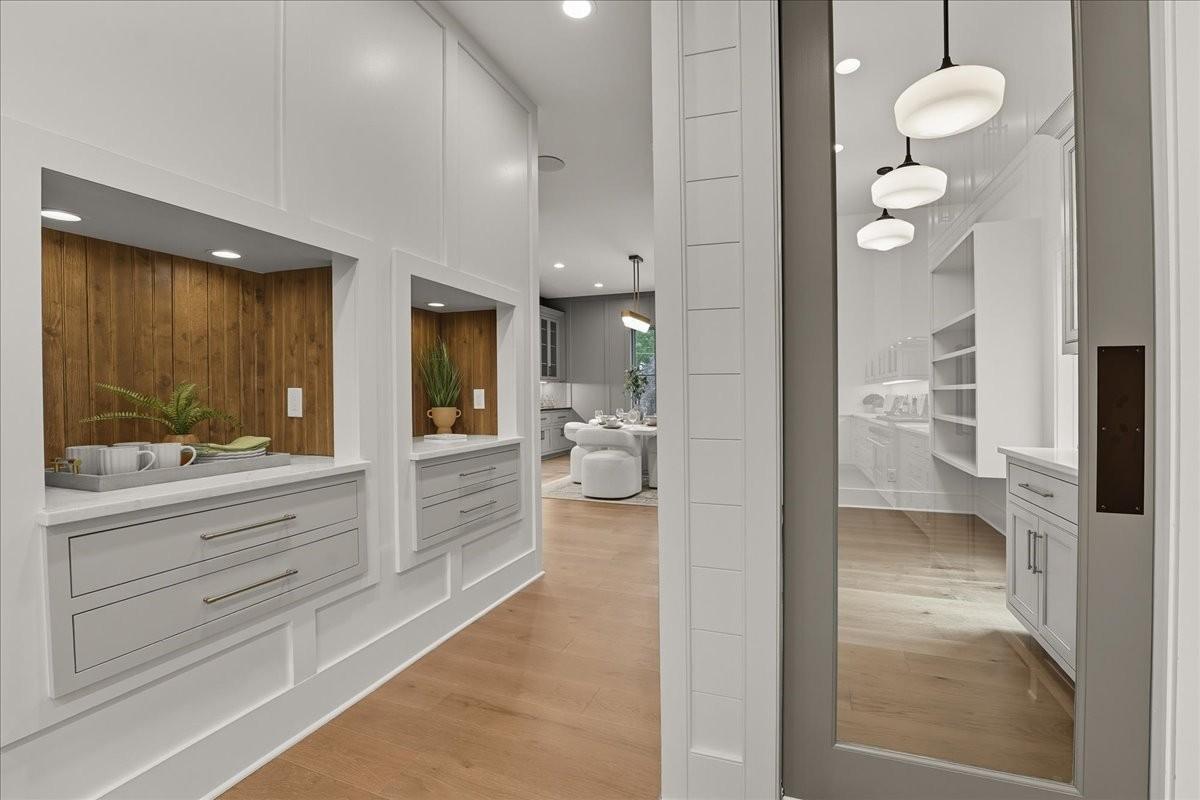 Every inch of this remarkable home reflects a deep commitment to quality, craftsmanship &timeless design. Built on a steel-reinforced poured concrete foundation w/brick construction, this residence combines unwavering strength w/exquisite architectural details. Classic bead board ceilings on front&back porches along w/Coppersmith gas lanterns set the tone for a home that’s as beautiful as it is enduring. Upon entering, you are greeted by the soothing sounds of your personal Sonos amp system w/18 ceiling speakers &individual fader controls smartly placed throughout common living areas. Kitchen is a chef’s dream w/Calacatta Miraggio Cove Quartz countertops, 48” Wolf gas range w/double ovens, Sub-Zero refrigerator &freezer columns,Bosch Benchmark dishwasher&Scotsman nugget ice machine. A large walk-in pantry w/ prep space completes the culinary experience. Great room centers on a dramatic wood-burning stone fireplace complemented by a custom TV console w/shelving&white oak accents. Separate spacious dining room is complete w/bar area serving as both a visual centerpiece&an entertainer’s dream. It features black honed countertops,custom built-ins for glass&bottle storage,wine frig&ice maker&brass rail/glass shelving set against antiqued smoked mirrors. Inviting Primary suite is a retreat to behold w/a vaulted wood plank ceiling, Taj Mahal quartz surfaces, Brizo Litze luxe gold fixtures, double vanities&a graciously-sized soaking tub. Walk-in closet offers an expansive 20-drawer center island&specialty shelving like angled shoe racks. Main-level laundry offers extensive cabinetry w/over 160 cubic feet of storage—ideal for linens, luggage, and seasonal needs. Upper floor boasts a central gathering room from which 4 bedrooms rest, each w/ their own private bathrooms&walk-in closets.Another full laundry room is found here w/front-facing window that allows sunlight to wash across the patterned floor tile. See attached for complete list.