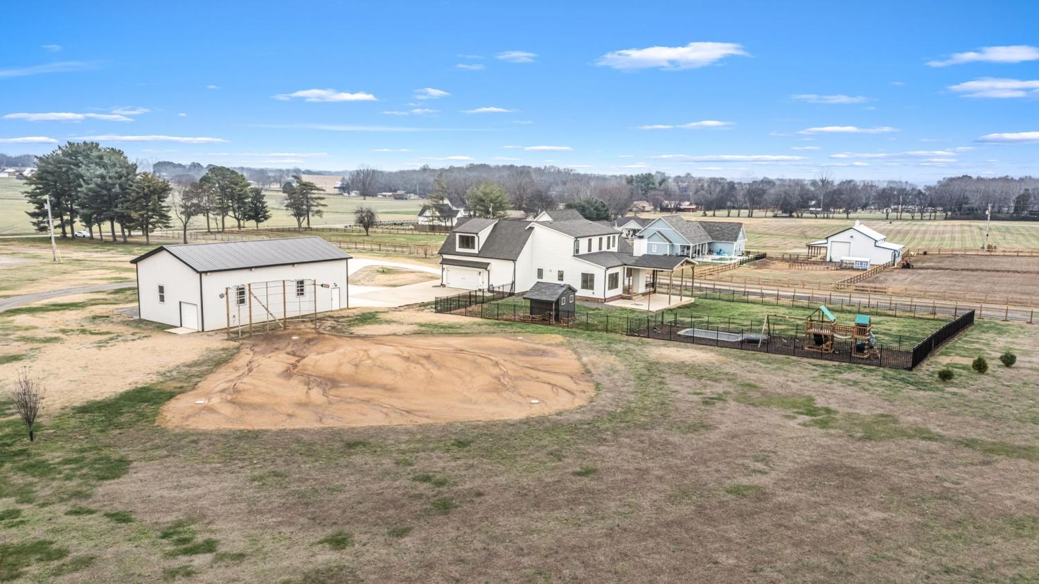 Discover the perfect blend of country living and everyday convenience with this beautifully crafted home on 5 level acres with no HOA! Just minutes from shopping, dining, & amenities, this property offers the peace and space of rural living while being only 35 minutes to Downtown Nashville. Be impressed with the light-filled main level featuring custom finishes. The kitchen showcases handcrafted cabinetry, upgraded countertops, stainless appliances, a copper farmhouse sink, secret pantry, and stylish designer details that create a warm, upscale feel. The bathrooms mirror this quality with elegant tilework, high-end fixtures, and thoughtfully designed layouts. Superb functionality with multiple laundry rooms, custom drop zone, and pet bath in the garage! The fully finished basement provides incredible versatility—ideal for a media room, home gym, an additional guest suite which can count as Bedroom 5, office, storage galore, and living space. Outdoors, the property offers exceptional appeal with sprawling acreage, a covered patio with fireplace, playset, inground trampoline, baseball/softball field with lighting and, as a standout bonus, the detached 30x50 RV garage, perfect for storing large vehicles, equipment, or creating a workshop. RV garage also comes complete with an additional RV pad and hook-ups for guests. Amazing upgrades that aren't necessarily obvious include Superior Wall System, spray foam insulation, whole house dehumidifier, 80 gal hot water tank, and 2 Train hvacs with heat pumps. This is the rare opportunity to have acreage, craftsmanship, and convenience all in one—a country retreat with access to everything you need. NEW CARPET upstairs & FRESH PAINT on main level & in upstairs bedrooms/bathrooms. $5,000 INCENTIVE to be used towards landscaping or closing costs! Other Special Financing Incentives available on this property from Sirva Mortgage!