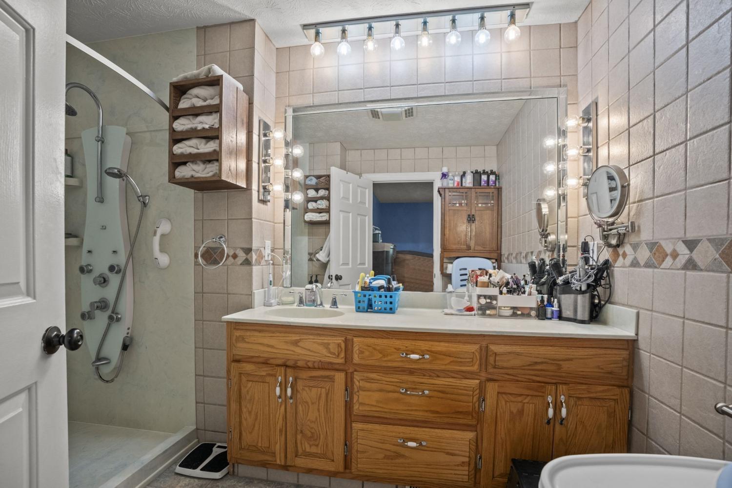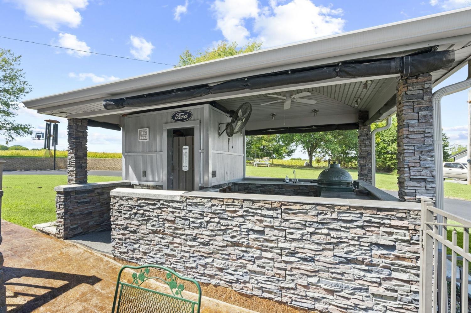 Beautiful 1 owner home on 5.31 acres/stocked pond. Features a heated/cooled basement w/bdrm, shop, and storage. The 2 car garage has a handicap lift. Updated custom cedar shutters, hardwood floors, & primary bath w/walk-in shower. The 2nd bathroom is remodeled. Home has a Mitsubishi Ductless heat & air system throughout home & central vacuum, with vac port toe kicks. Updated kitchen w/granite countertops, tiled backsplash, painted cabinets, gas stove & stainless appliances. Front porch has brick flooring & iron railing. Covered back deck w/composite decking, iron railings, ceiling fan, & LED lighting. Includes 24x60 barn w/water/electricity, 32x18 inground pool w/handicap lift and gas heated & a pool house w/an outdoor kitchen, storage room, & partial bathroom. The property has a blacktop driveway, basketball goal, firepit w/swing, & picnic table. An outdoor paradise! Must see to appreciate.