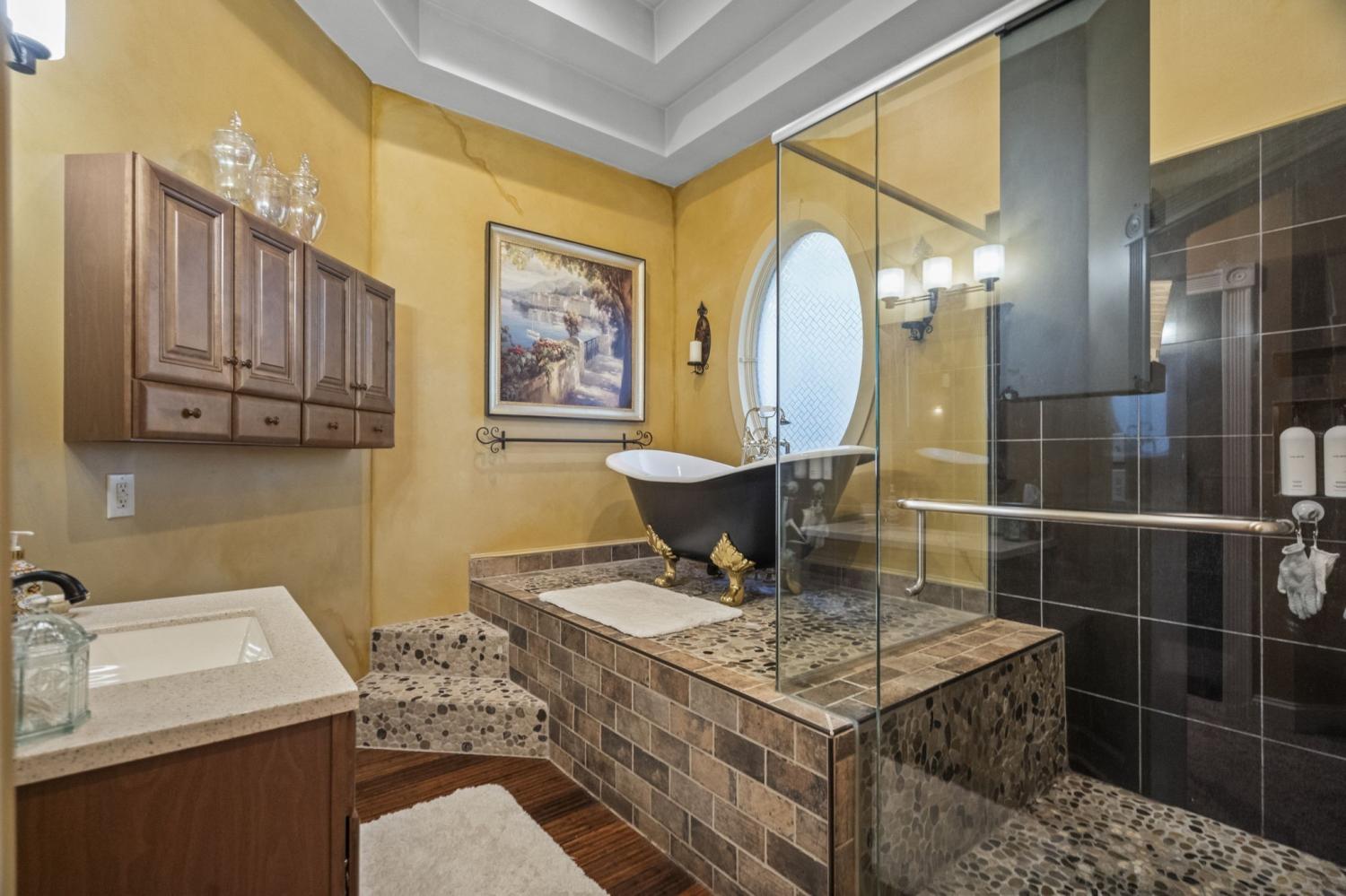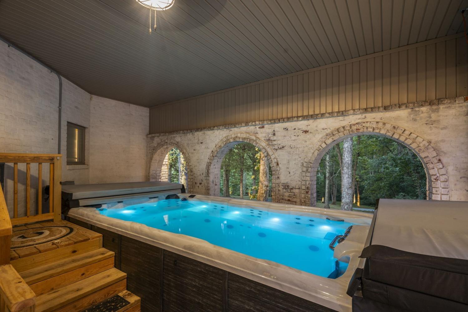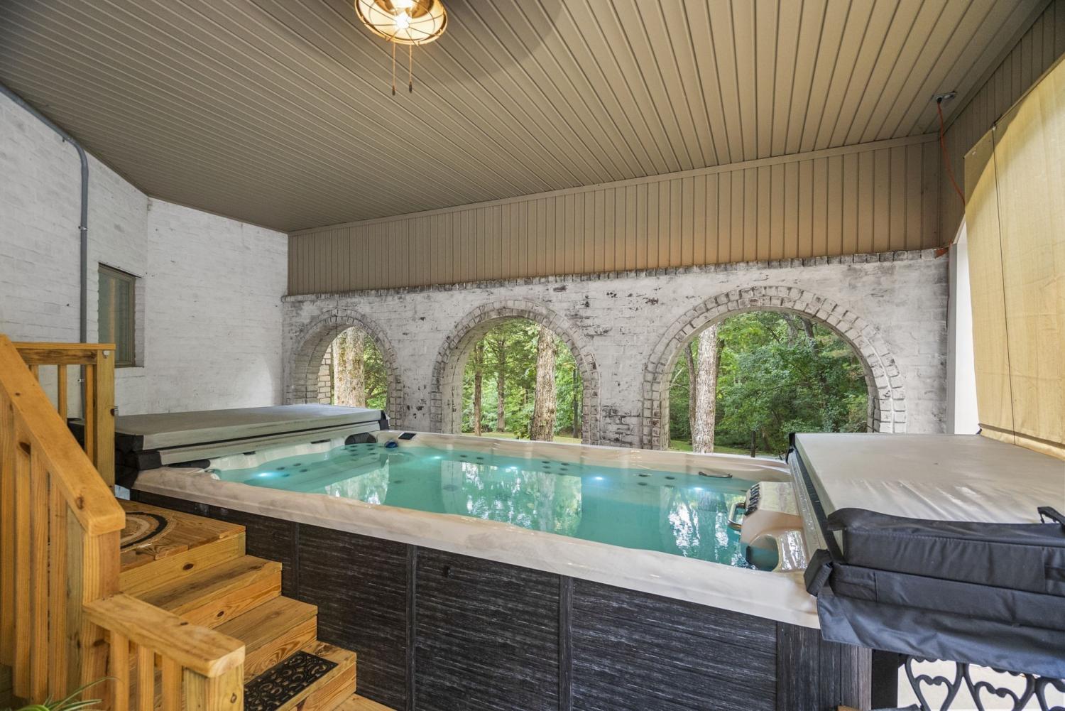 Welcome to 144A Dogwood Springs Drive – your private Mediterranean retreat just beyond the edge of town. Rarely does a home like this become available in this community, making it a truly unique opportunity. Surrounded by prestigious residences set on generous acreage, this area has long been admired for the quality and character of its homes. Over the years, it has even drawn iconic names from Music City, with this very home more recently belonging to a well-known country music artist. As you approach, ponds, rolling fields, and mature trees set the scene before the concrete drive leads to your private estate. The all-brick main residence offers 3,290 square feet while the private guest house adds 834 square feet, together providing four bedrooms and three baths on over four and a half acres with a picturesque creek along the back. The main home features a welcoming covered porch, a great room with fireplace, office, and a custom kitchen with granite countertops, gas range, double ovens, and a large island with bar seating. Two private suites include walk-in closets, with the primary offering its own fireplace, clawfoot tub, frameless glass shower, and French doors with powered drapery opening to a private back porch entrance. Outdoor living includes both front and back porches, a sauna and swim spa, and an oversized patio with stonework and a wood-burning fire place — perfect for summer afternoons or crisp fall evenings. A greenhouse with raised beds and a detached storage shed with power and lighting add further utility. The guest house is fully equipped with a covered porch and pergola, entertaining deck, living room with abundant windows, full kitchen with granite and appliances, its own laundry, a spacious suite, and a full bath — providing comfort and privacy for extended family or long-term guests. Updates include newer Anderson windows, hardwood floors, HVAC in both homes, new roofs, tankless water heaters, and leaf guard gutters.
