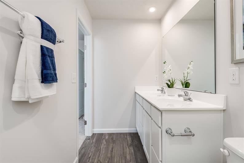 The Birch single-family home offers space and style. Enter through the 2-car garage or foyer and find a light-filled, airy floor plan. The great room flows into the dinette and kitchen area so you never miss a moment with friends or family around the island. Upstairs, the generous space continues, with a broad stairway that leads to an open landing, 3 bedrooms with ample closet space and a full bath. The luxurious owner’s suite, with its walk-in closet and dual vanity bath, keeps you connected to the rest of the home while providing peaceful privacy. Special lender incentives available with use of NVR Mortgage. *Disclaimer* The "Birch" is buildable floor plan offered by Ryan Homes in the Hammons Farm community. Photos in this listing only show potential selections and are not a representation of an exact structure built in the Hammons Farm community.