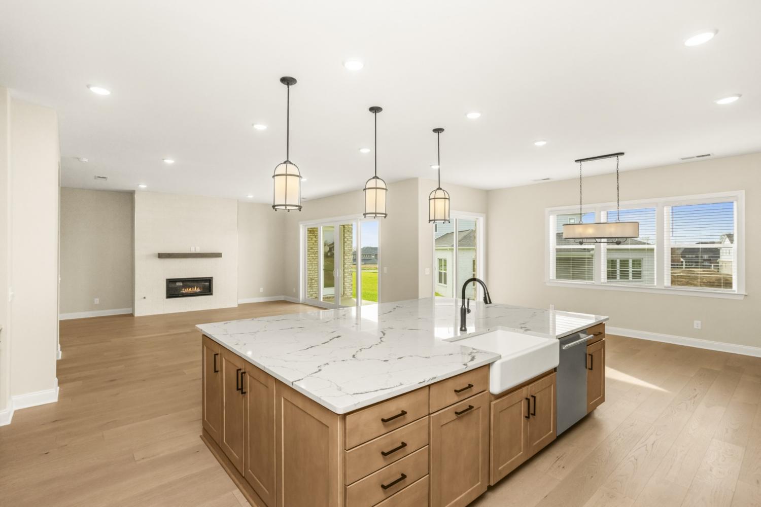 Holiday Luxury: The Henley Plan at August Park (Lot 246) Celebrate the season in this estate-style Henley plan, offering nearly all one-level living with cozy privacy backed by a mature tree line. The main level features soaring ceilings, hardwood floors, and a grand dining room—perfect for holiday gatherings. Two guest suites with a Jack and Jill bath welcome visitors, while the private primary suite offers a spa-like retreat. The gourmet kitchen, with oversized island and Monogram appliances, is ideal for festive meals. A dramatic slide-away glass door opens to the covered porch for seamless entertaining. Upstairs, enjoy a spacious movie/game room and private guest suite, plus abundant storage for seasonal décor. This home blends elegance, comfort, and holiday-ready design—perfect for making memories all year long.