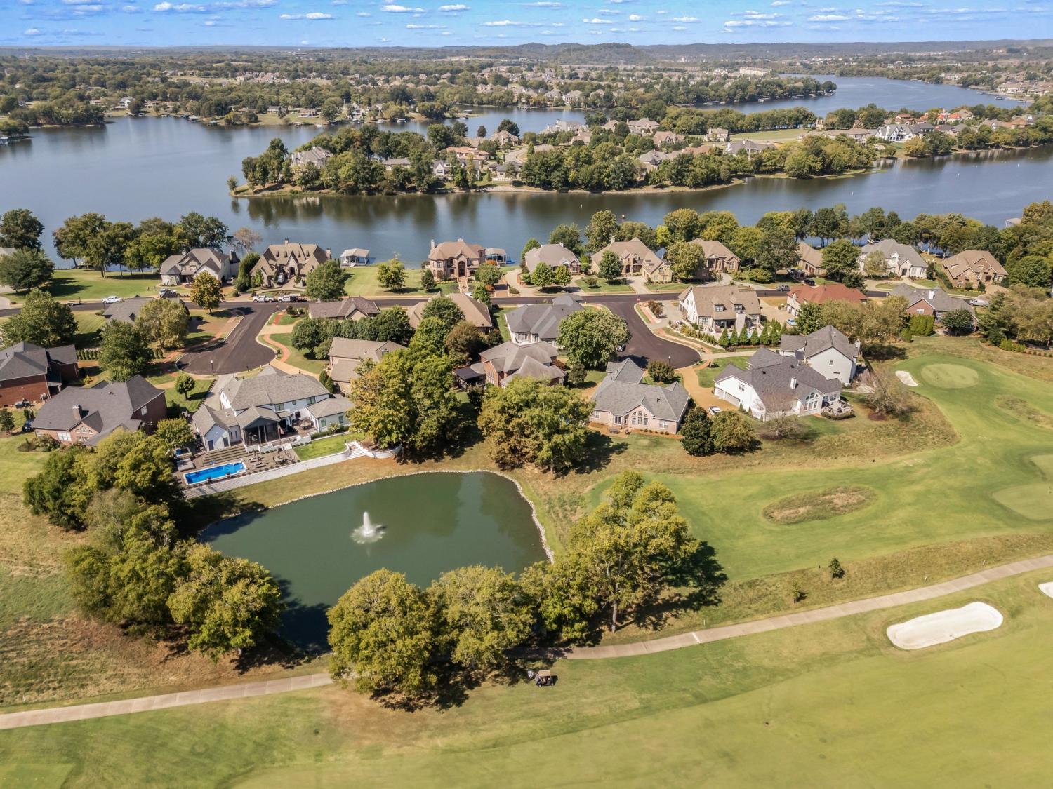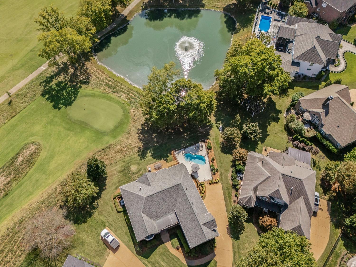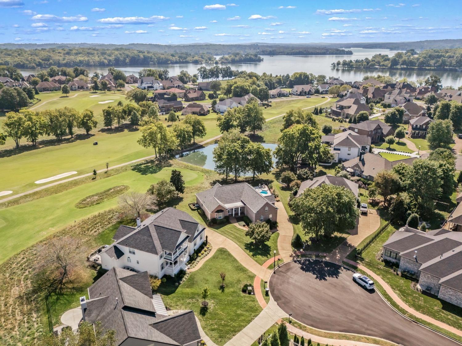 This rare combination of pristine condition, premier golf course location, and a private pool creates a lifestyle opportunity that truly stands apart. Located just minutes from shopping, dining, TN-386, and only 40 minutes to Downtown Nashville. Immaculately maintained and beautifully positioned on a cul-de-sac across from Old Hickory Lake, this exceptional home offers light-filled living spaces, quality finishes, and a desirable floor plan. An inviting foyer opens to the dining room with ample room for an expansive table making it ideal for hosting gatherings. Thoughtful architectural details, an open layout, and picturesque windows create an inviting atmosphere. A large sitting room with a beautiful bay window offers the perfect opportunity to double as a home office. The chef’s kitchen showcases granite countertops, custom cabinetry, an island, bar seating, and a breakfast nook. The spacious primary suite offers a spa-inspired bath with upgraded tile, dual sink vanity, soaking tub, and a walk-in shower. Secondary bedrooms are well-appointed and conveniently located on the main level, while a versatile bonus or guest space upstairs provides added flexibility. Step outside to your private saltwater pool and tranquil views of the pond and manicured fairways—perfect for relaxing afternoons or entertaining guests. Convenient parking pad for guests beyond the 3-car garage! Fairvue is Gallatin's most premier community! TN Grassland Club, Golf and Pool Memberships are optional/separate from HOA dues. Priced at recent appraisal!
