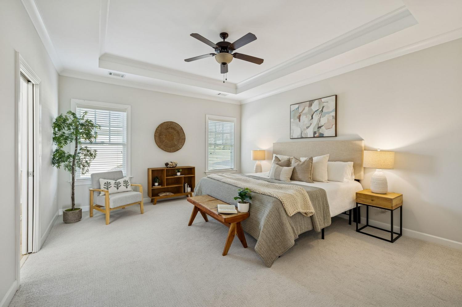 Nestled in the highly sought-after Taramore subdivision.. Step inside to discover an open-concept layout that flows seamlessly from the spacious living areas into a gourmet kitchen, making it perfect for hosting gatherings. The home features beautiful, elegant crown molding throughout, adding a touch of refined charm to every room. The main level offers a seamless open living space bathed in natural light. The second floor boasts a primary suite and two additional bedrooms, one with a connecting loft which is perfect for an office or playroom. Also this home offers either a separate bonus room or a mother-in law suite with its own private staircase. The top floor has an additional bedroom, bath and a circular loft with scenic views of Brentwood - ideal for a teen retreat or home office. The home backs up to a green belt. Neighborhood amenities include a clubhouse, gym, pool, Tennis, and pickle ball courts. Also lots of greenspace and walking trails. Don’t miss the chance to make this exceptional, functional, and elegant property your new home!