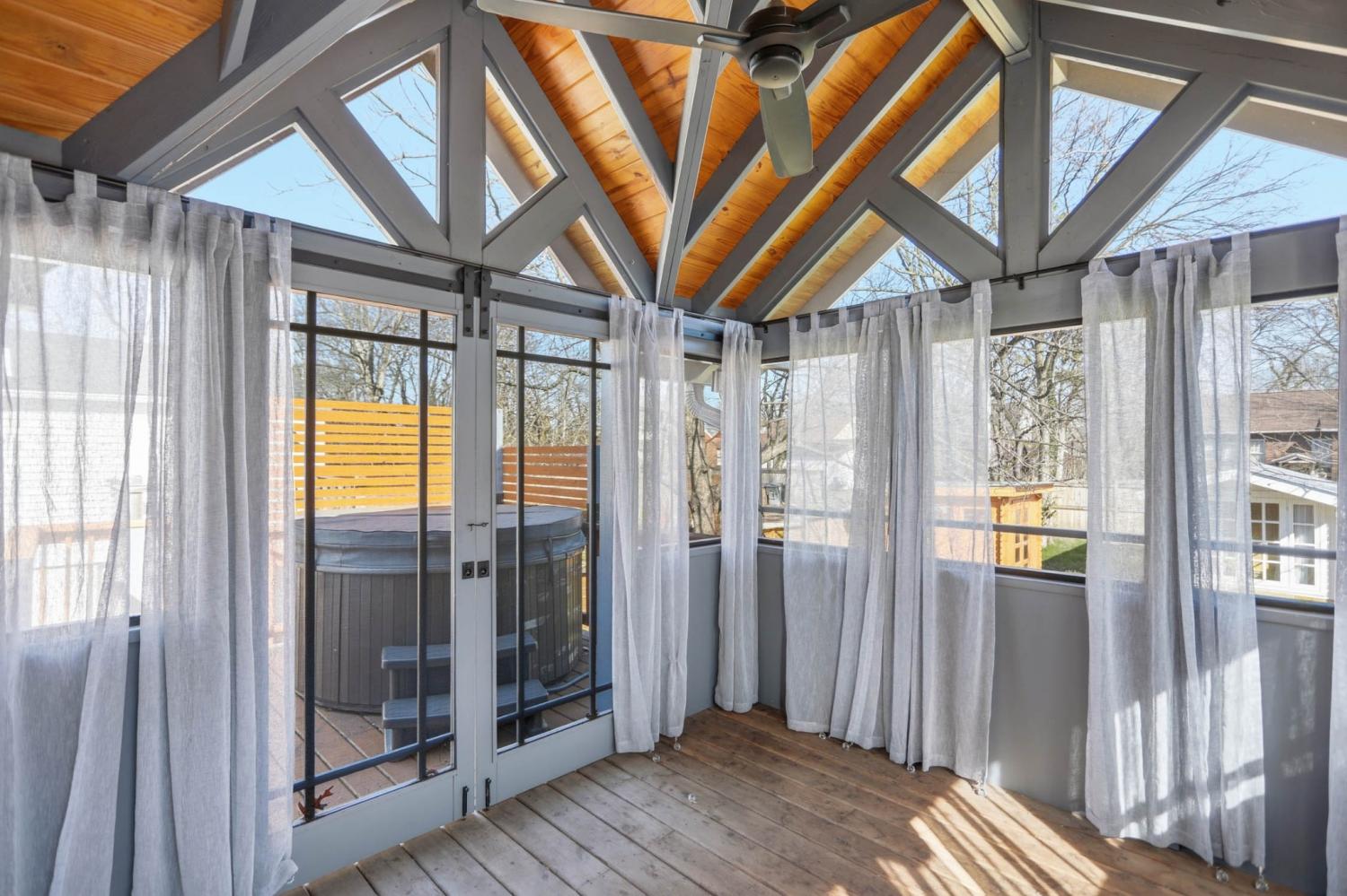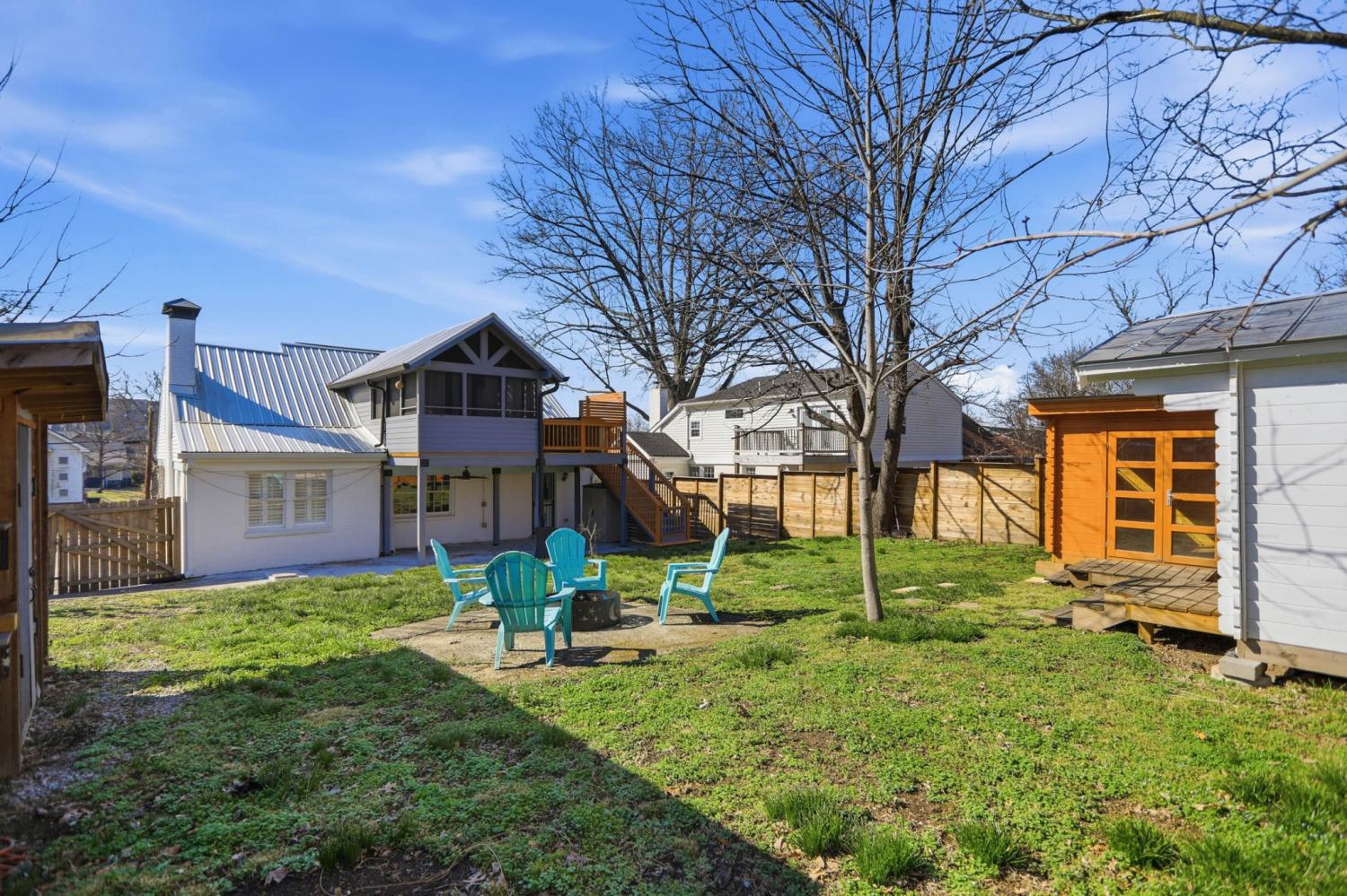 Charming historic East Nashville home centrally located 3 miles from Downtown. Enjoy a walkable lifestyle with access to countless restaurants, shops, music venues, grocery stores, pharmacies, schools and more. Take a 15 minute stroll to Five Points for its famous Tomato Art Fest, or walk just a few blocks and reach The Pharmacy, Mas Tacos, or Peninsula. Filled with thoughtful renovations and upgrades with additional potential to easily expand. Living room features fireplace with wood stove conversion, built-ins, and plantation shutters. Primary suite includes second-story screened porch retreat leading out to a hot tub with incredible seasonal views of Downtown Nashville. Kitchen features stainless steel appliances and shaker-style cabinets. Enjoy electric bill savings with solar panels and inverter system. Wood and tile floors throughout the home. See complete list of recent updates, all appliances remain. Large covered back patio is perfect for entertaining. Alley and driveway access to back yard. Two site-built insulated sheds could be WFH offices, garden workshops, or playhouses. Ample additional storage in basement. Primary suite rails around stairs are removable, allowing floors to be divided into separate dwellings. Located within Detached Accessory Dwelling Unit (DADU) Overlay District.